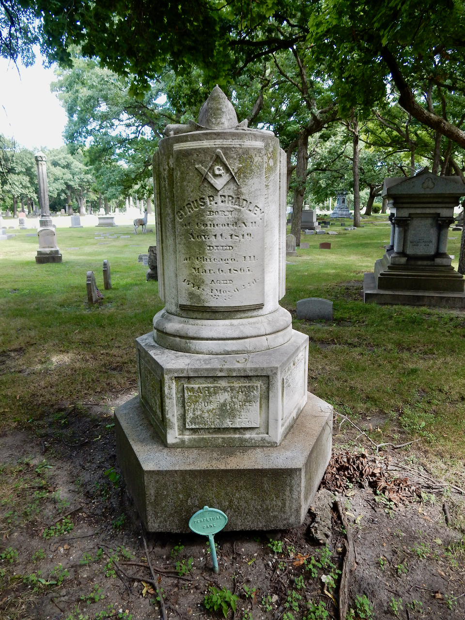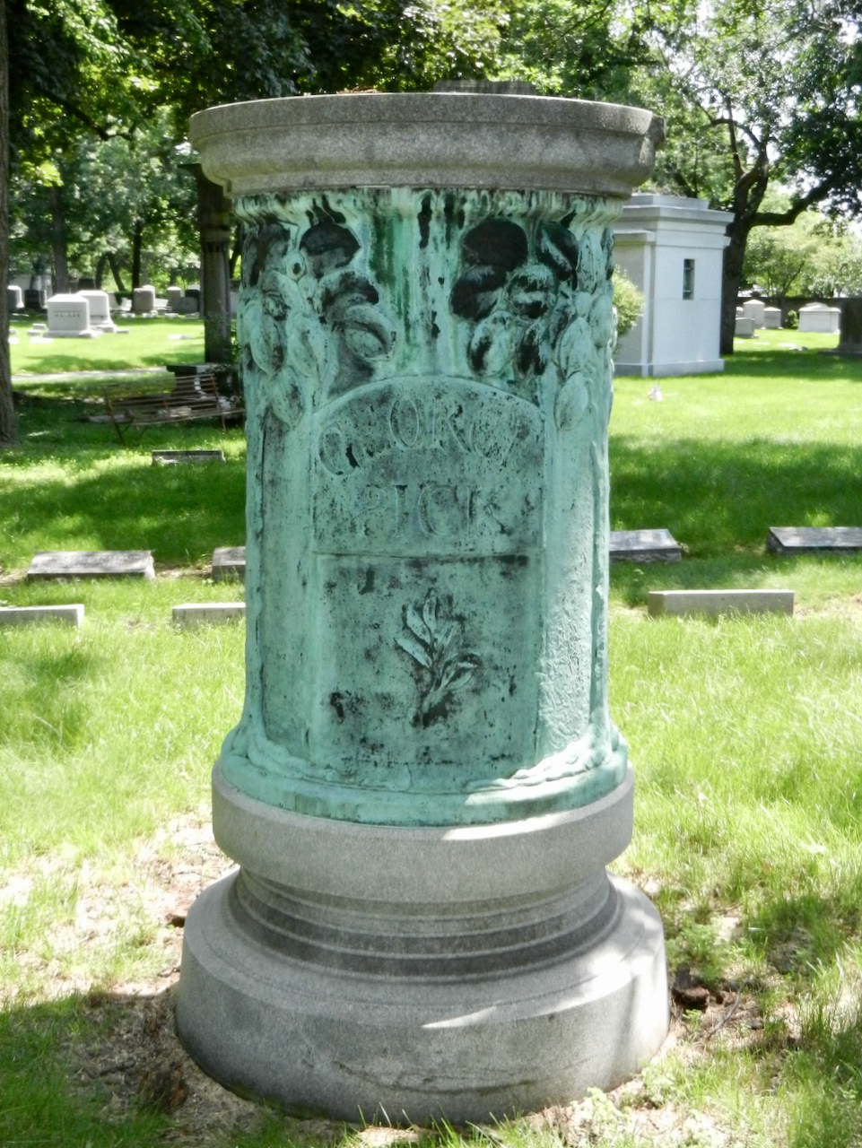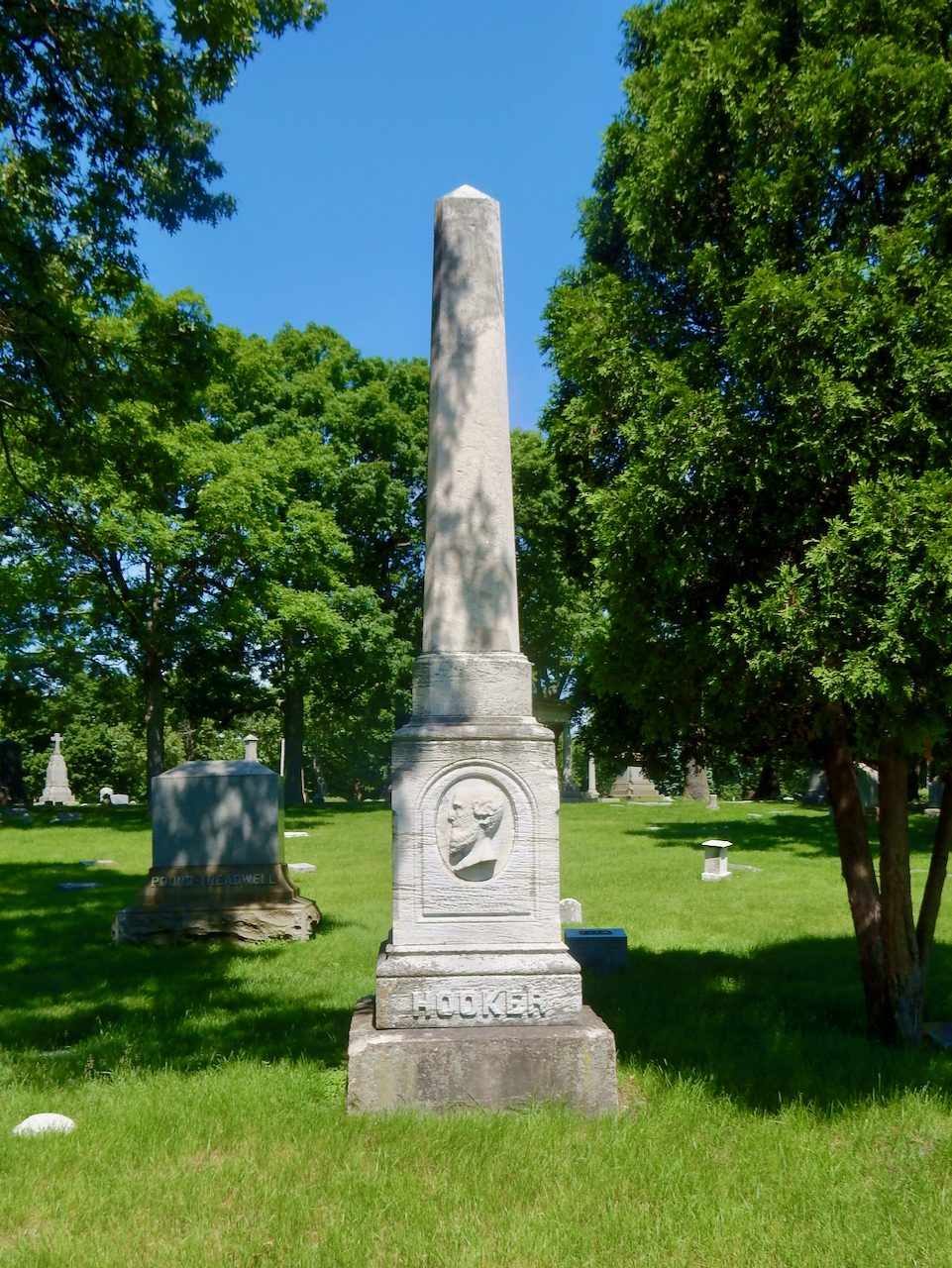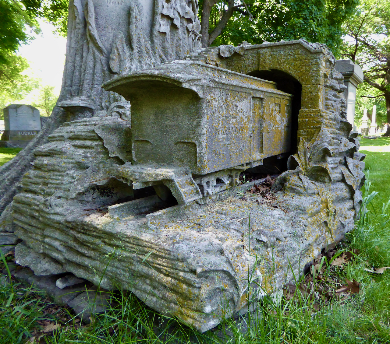 Professional identity is another theme that characterizes some of Rosehill’s best memorials. The most famous of these honors George Bangs — “His crowning effort The Fast Mail.” But there are other good ones.