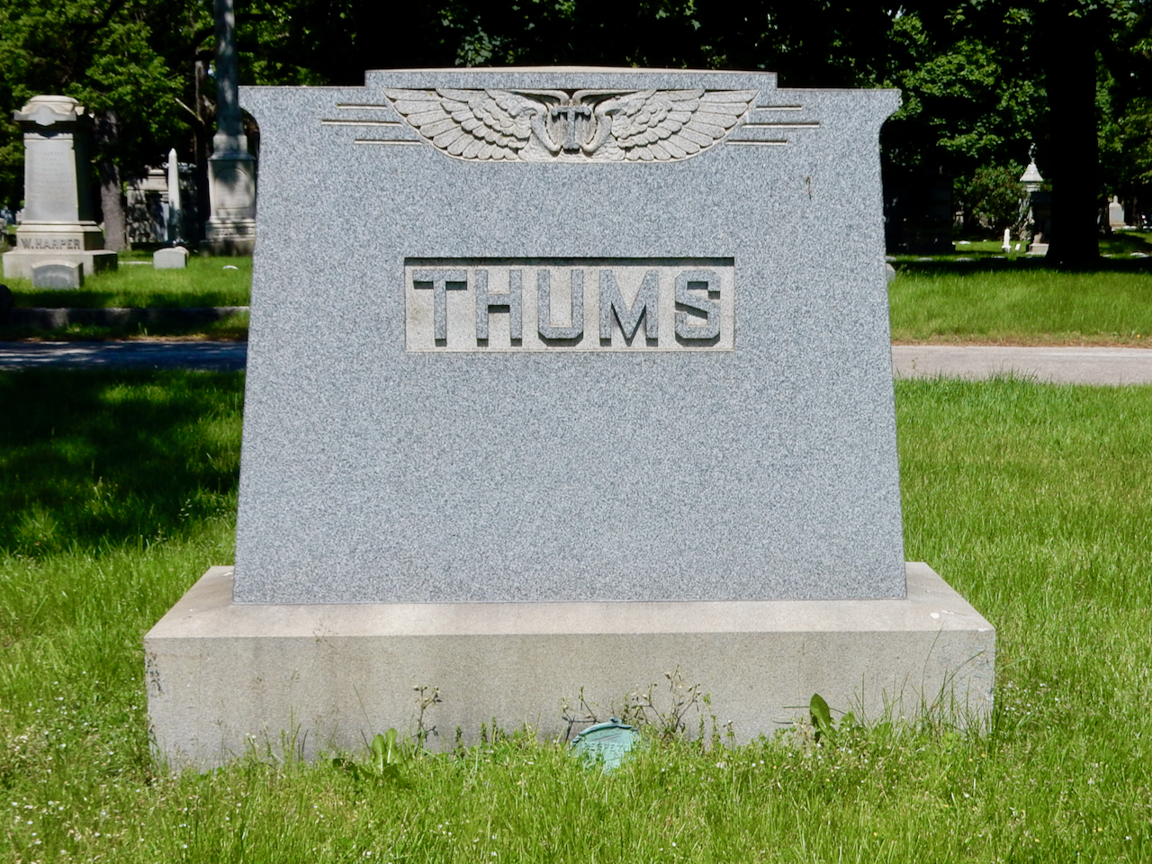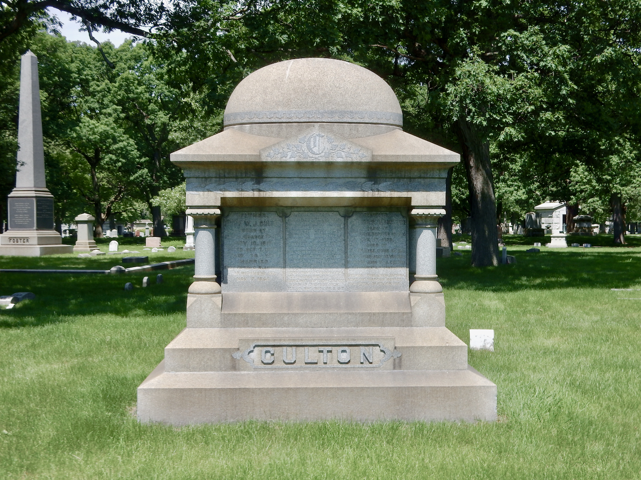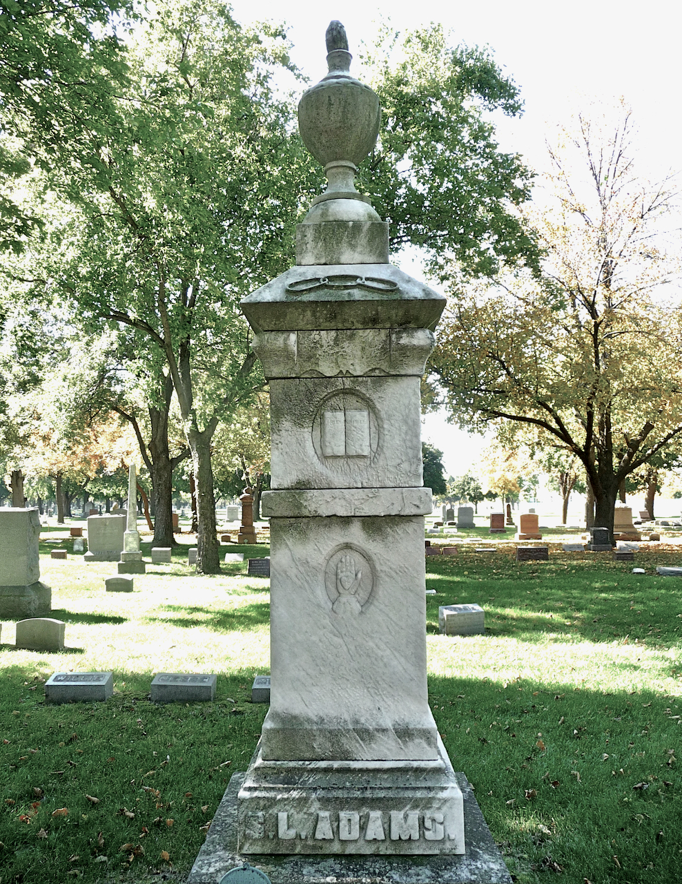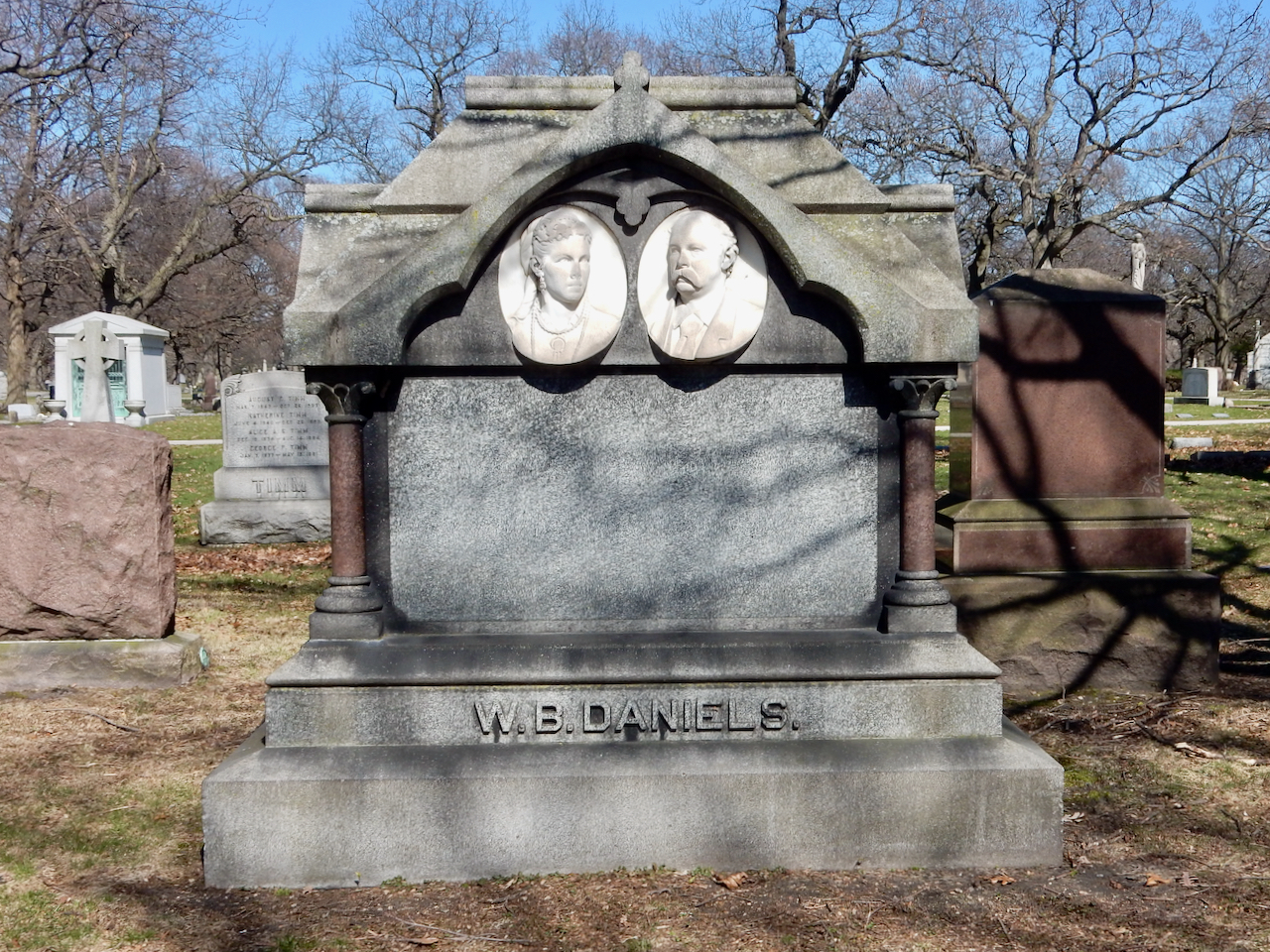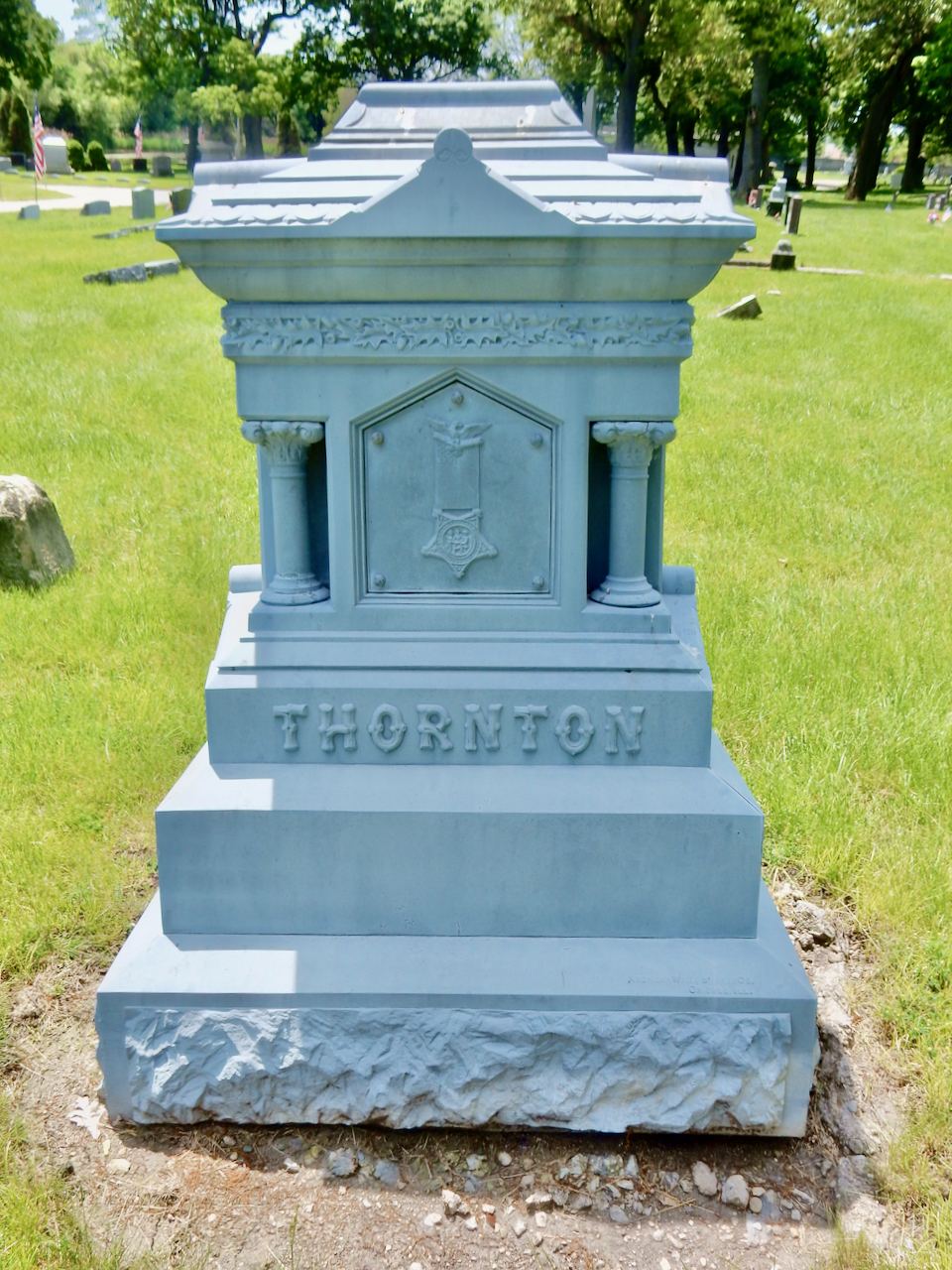 Professional identity is another theme that characterizes some of Rosehill’s best memorials. The most famous of these honors George Bangs — “His crowning effort The Fast Mail.” But there are other good ones.