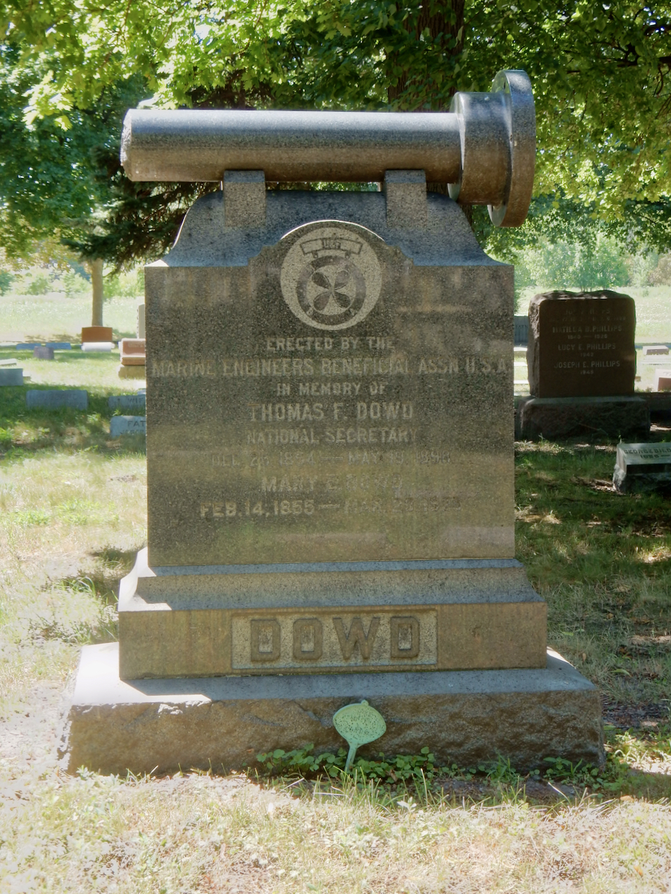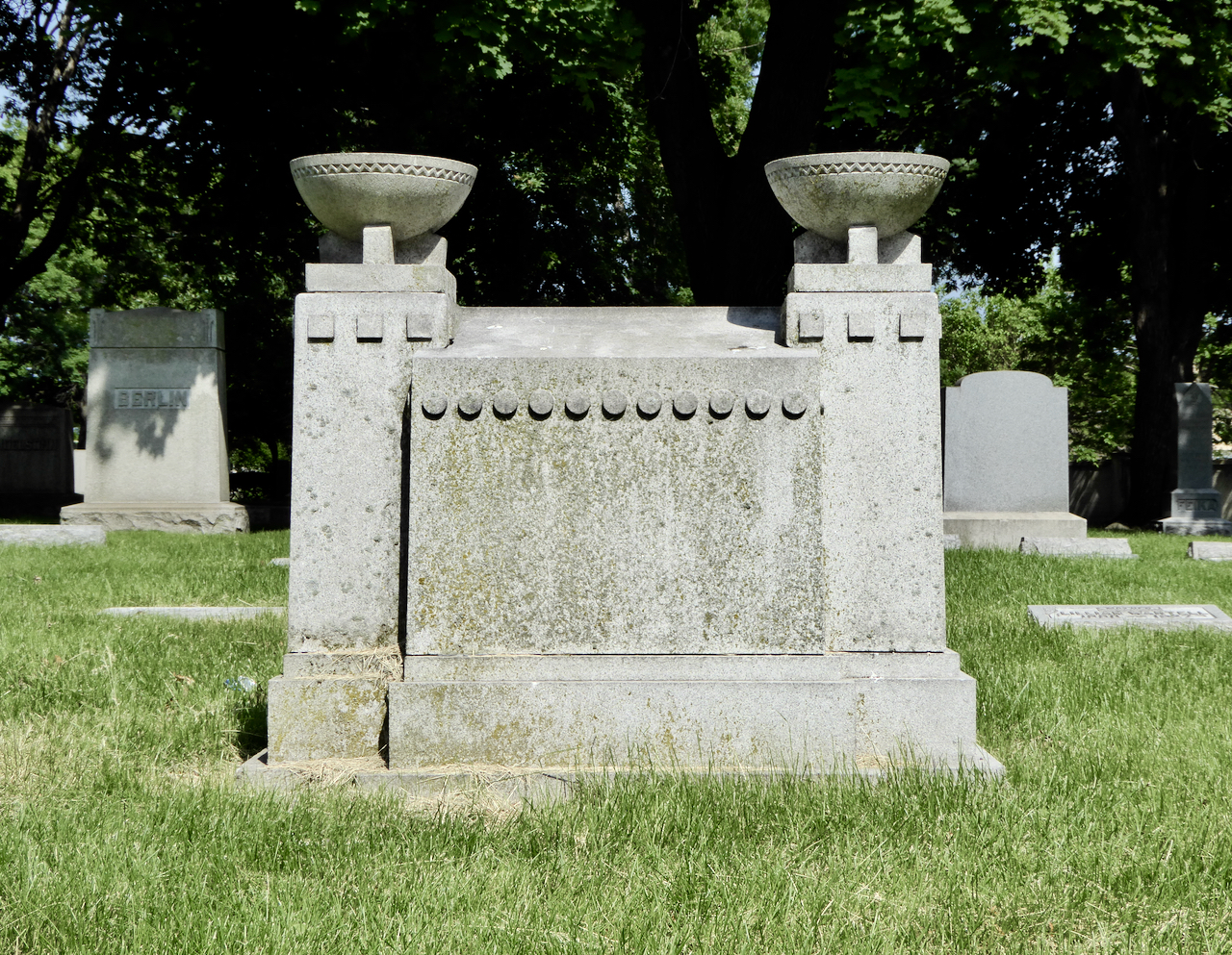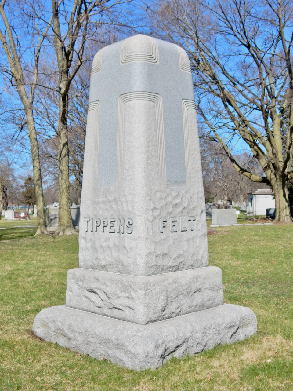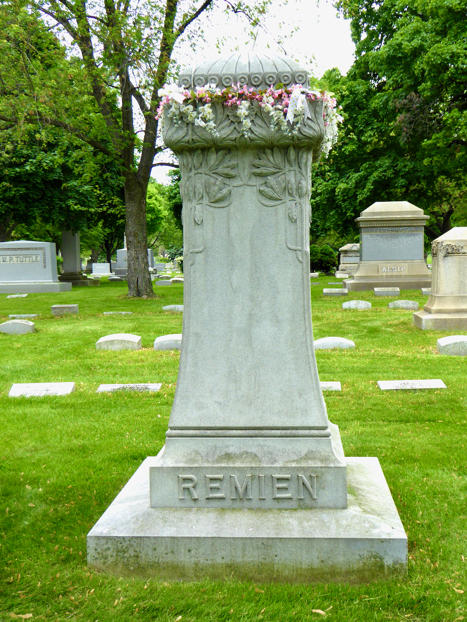 Professional identity is another theme that characterizes some of Rosehill’s best memorials. The most famous of these honors George Bangs — “His crowning effort The Fast Mail.” But there are other good ones.