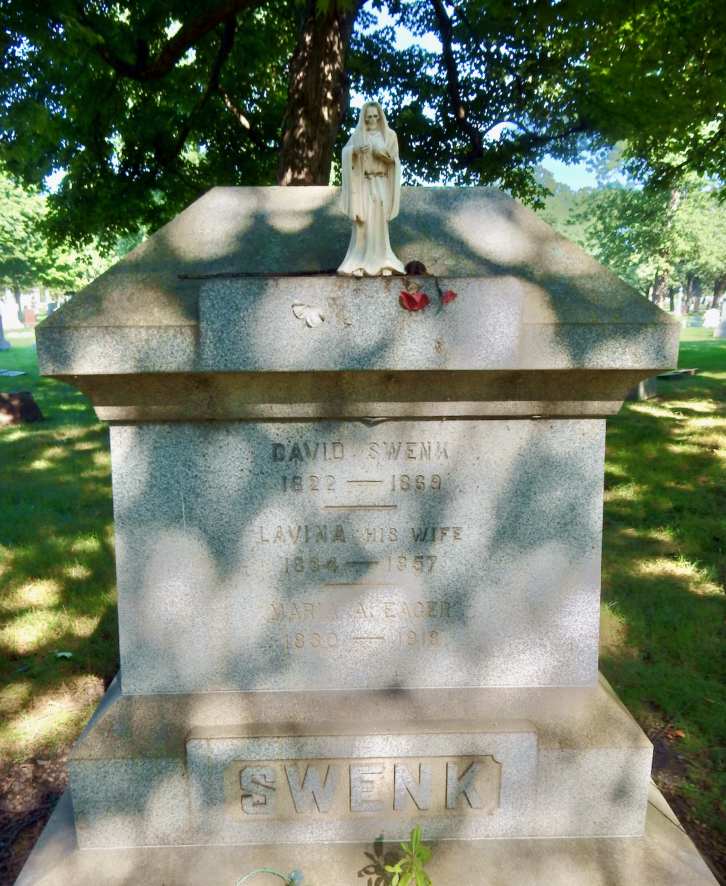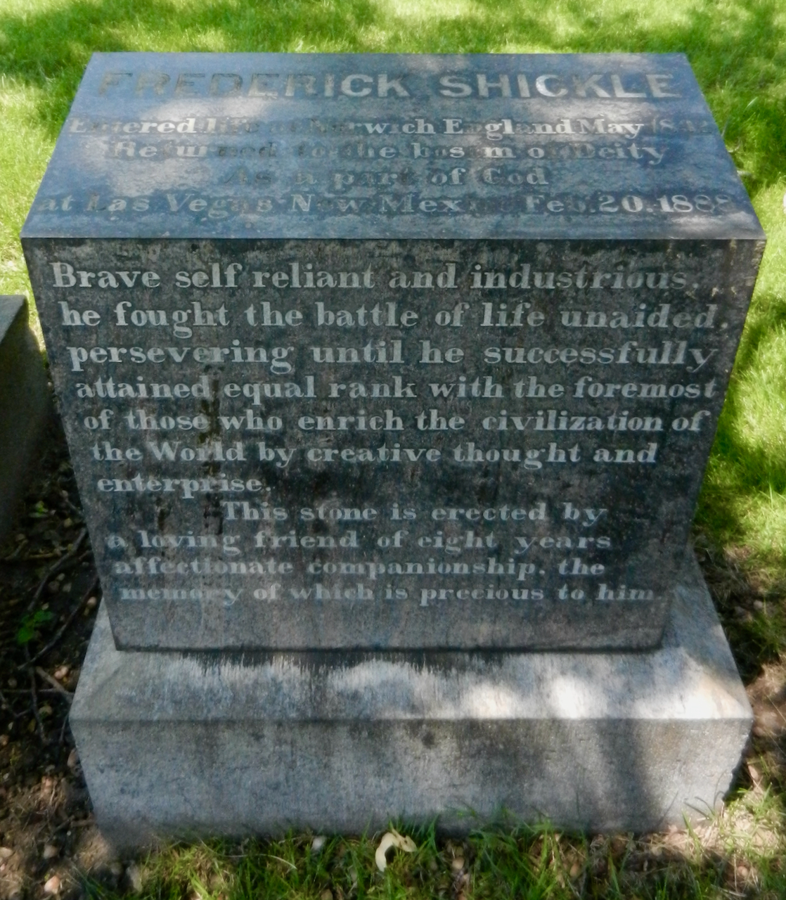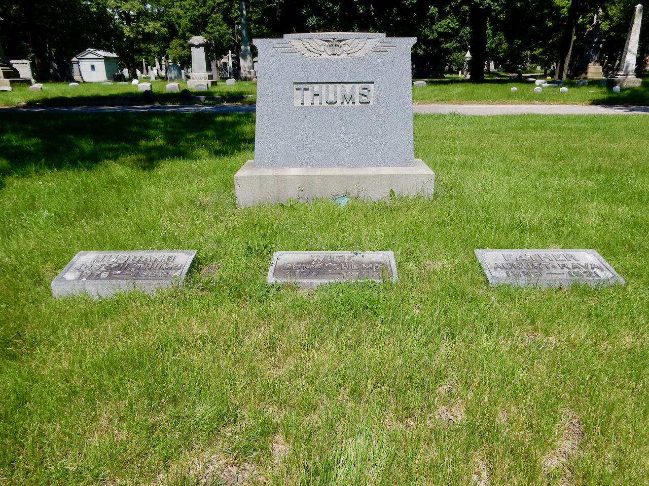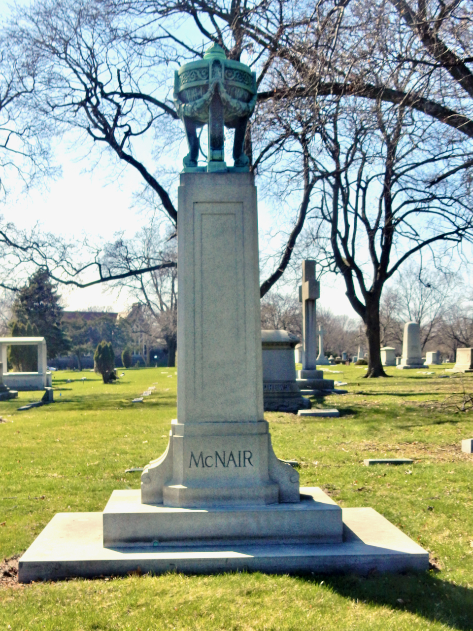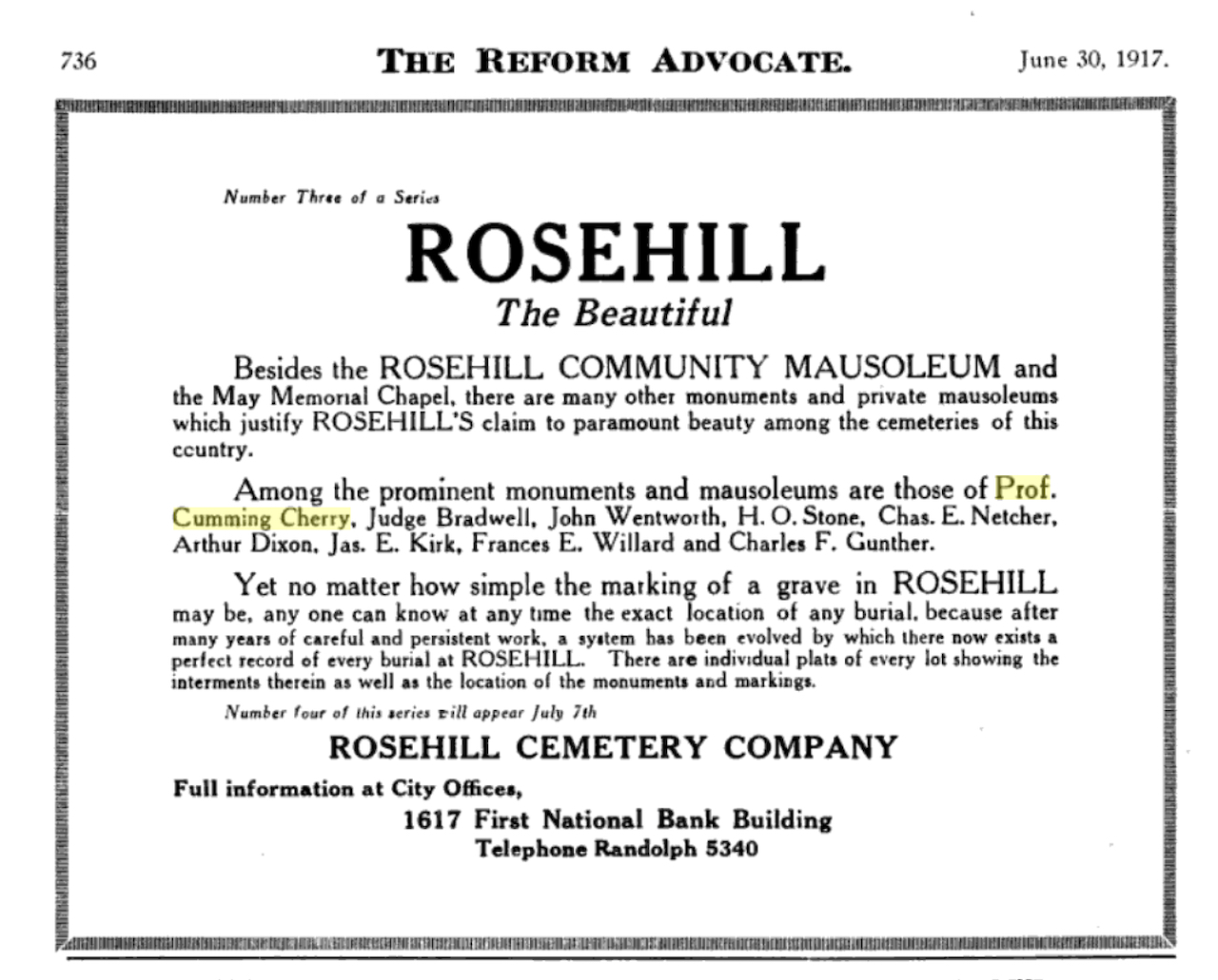 Professional identity is another theme that characterizes some of Rosehill’s best memorials. The most famous of these honors George Bangs — “His crowning effort The Fast Mail.” But there are other good ones.