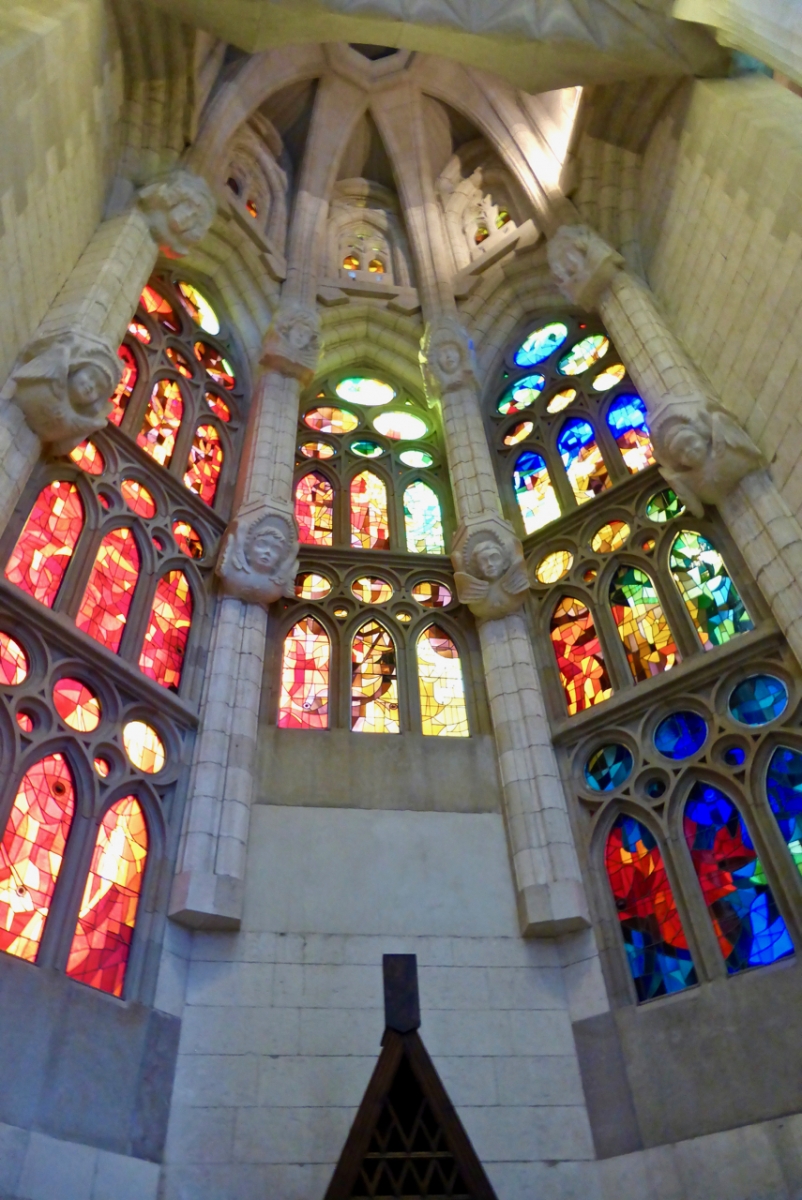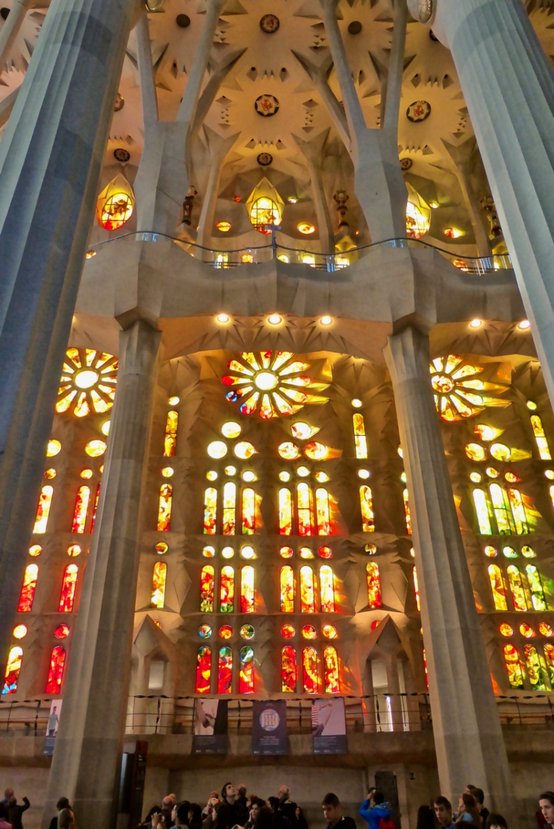 Stained glass and columns, Antoni Gaudí's Sagrada Família, Barcelona