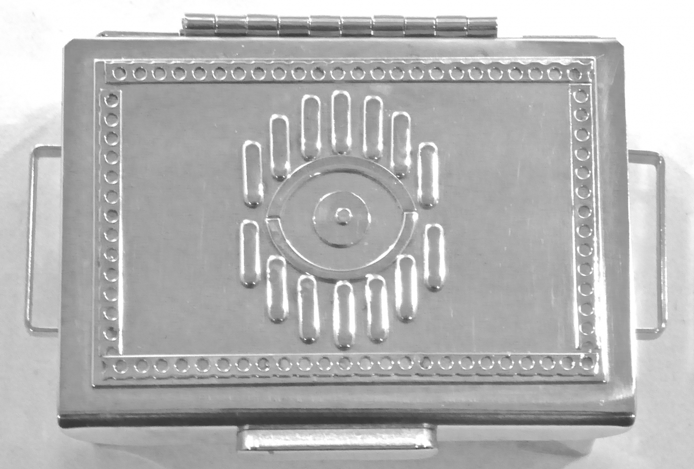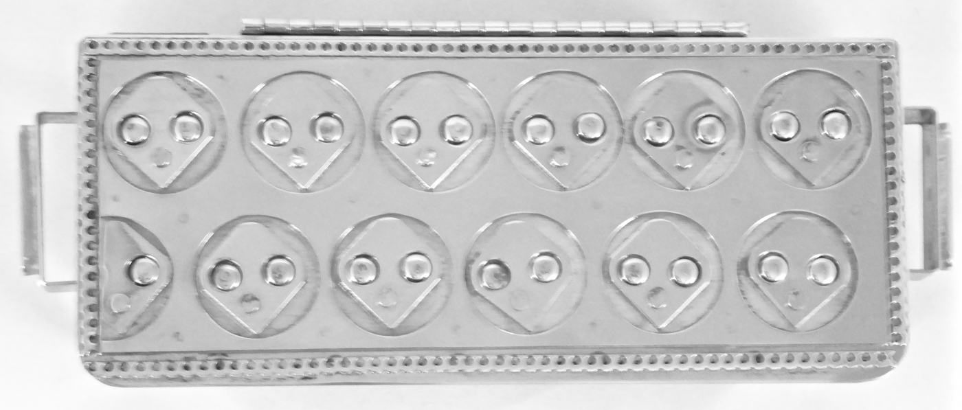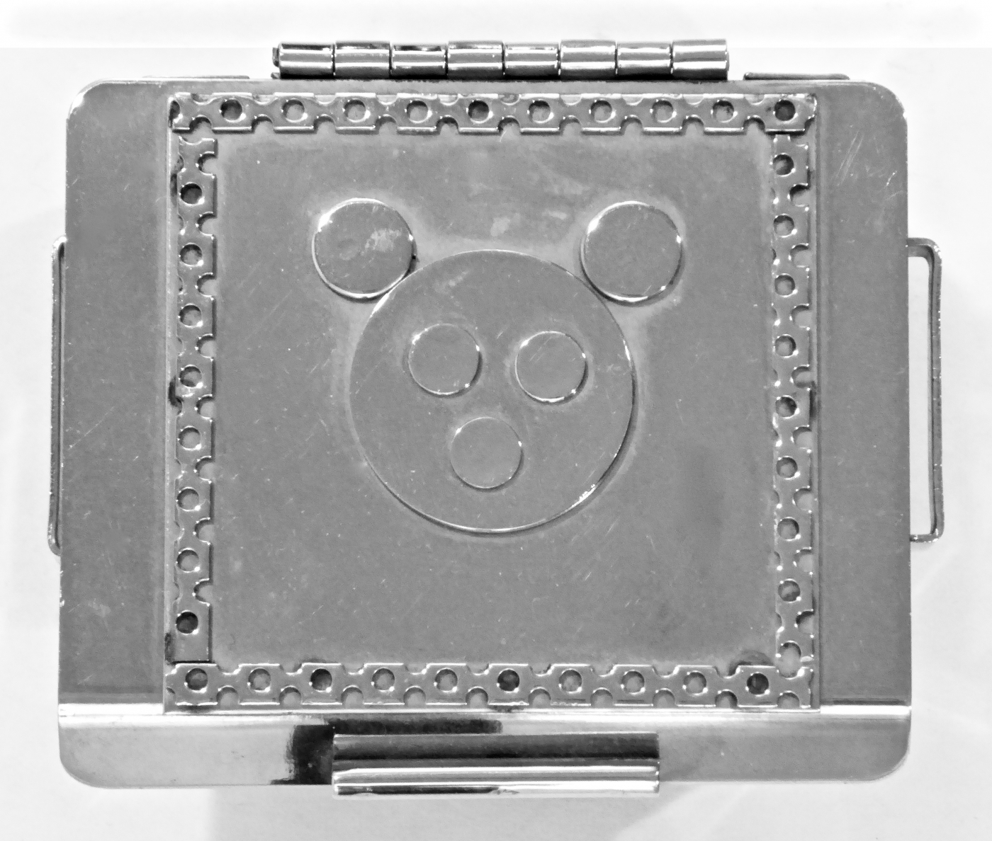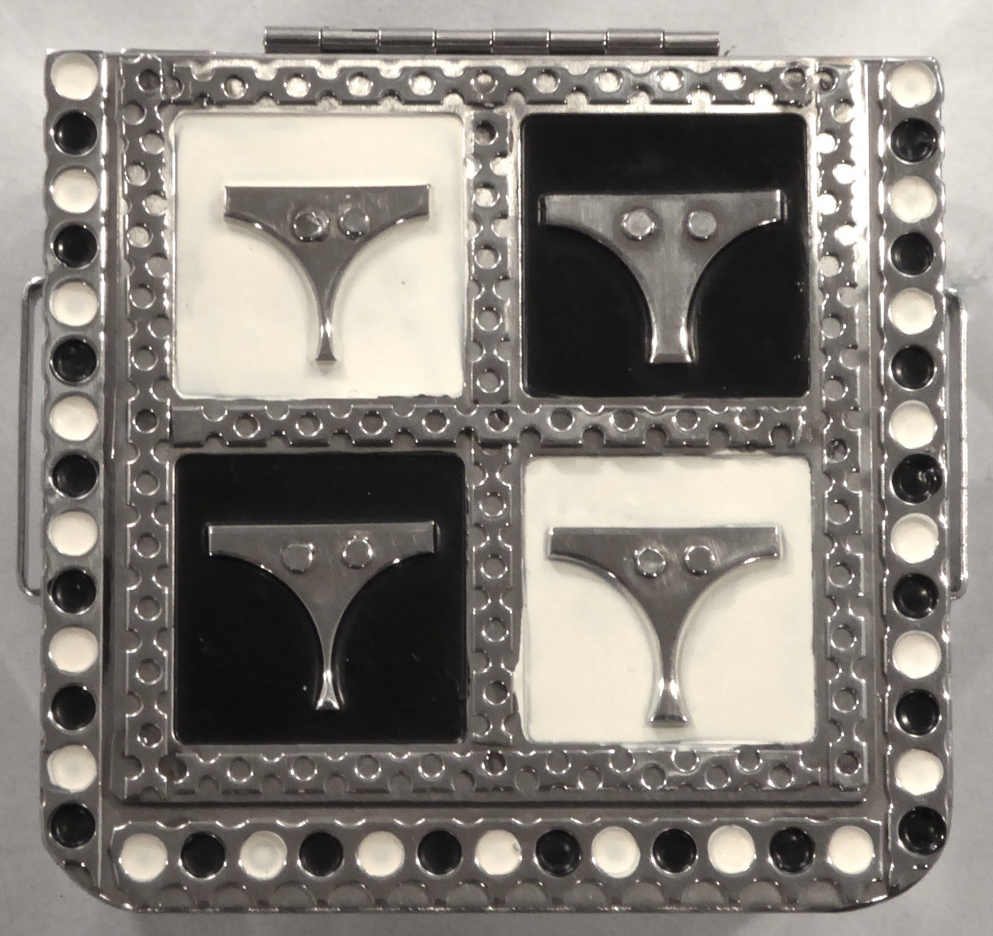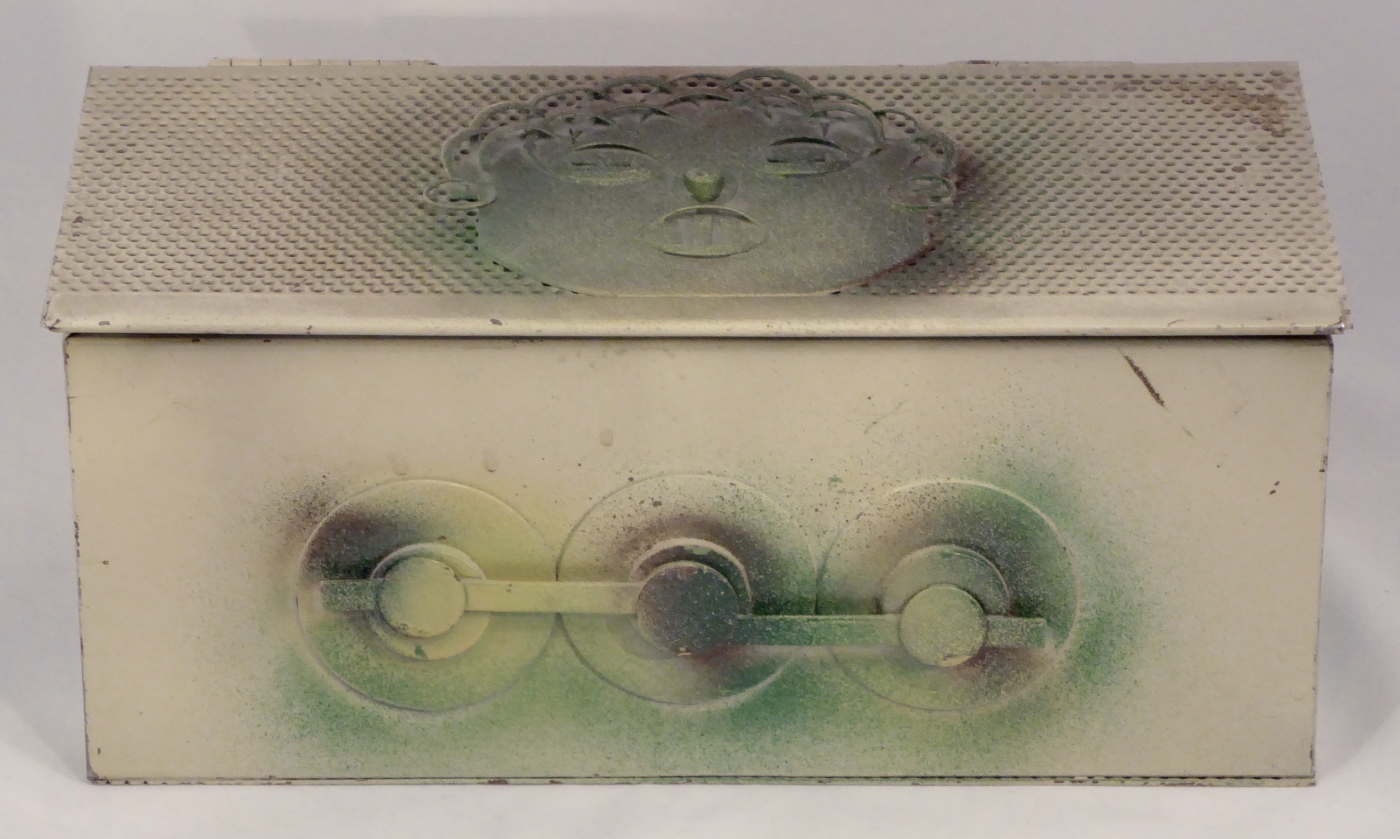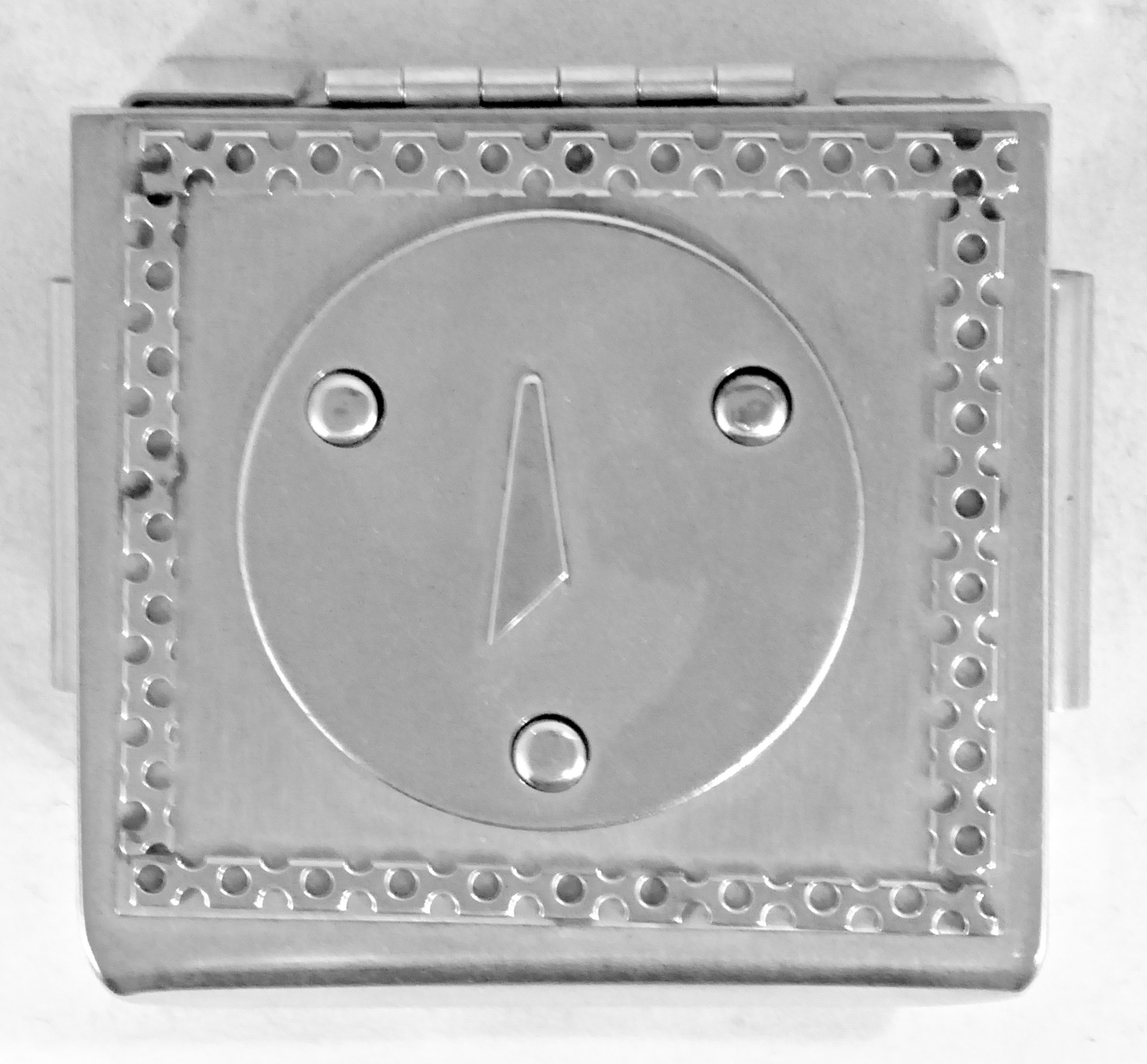 Stanley Szwarc’s most typical creations are marvels of decoration, stainless steel boxes lathered in abstract ornamentation. But he also applied his geometric talent to creating faces, some ominous, some cartoony, some robotic, and some quite dressy. When the book keeper turned metal worker took up representational imagery, his imagination was stunning.