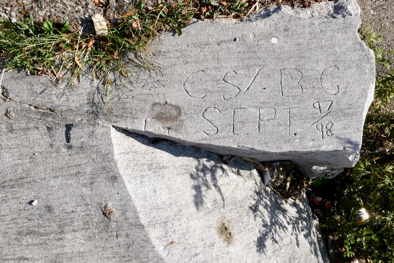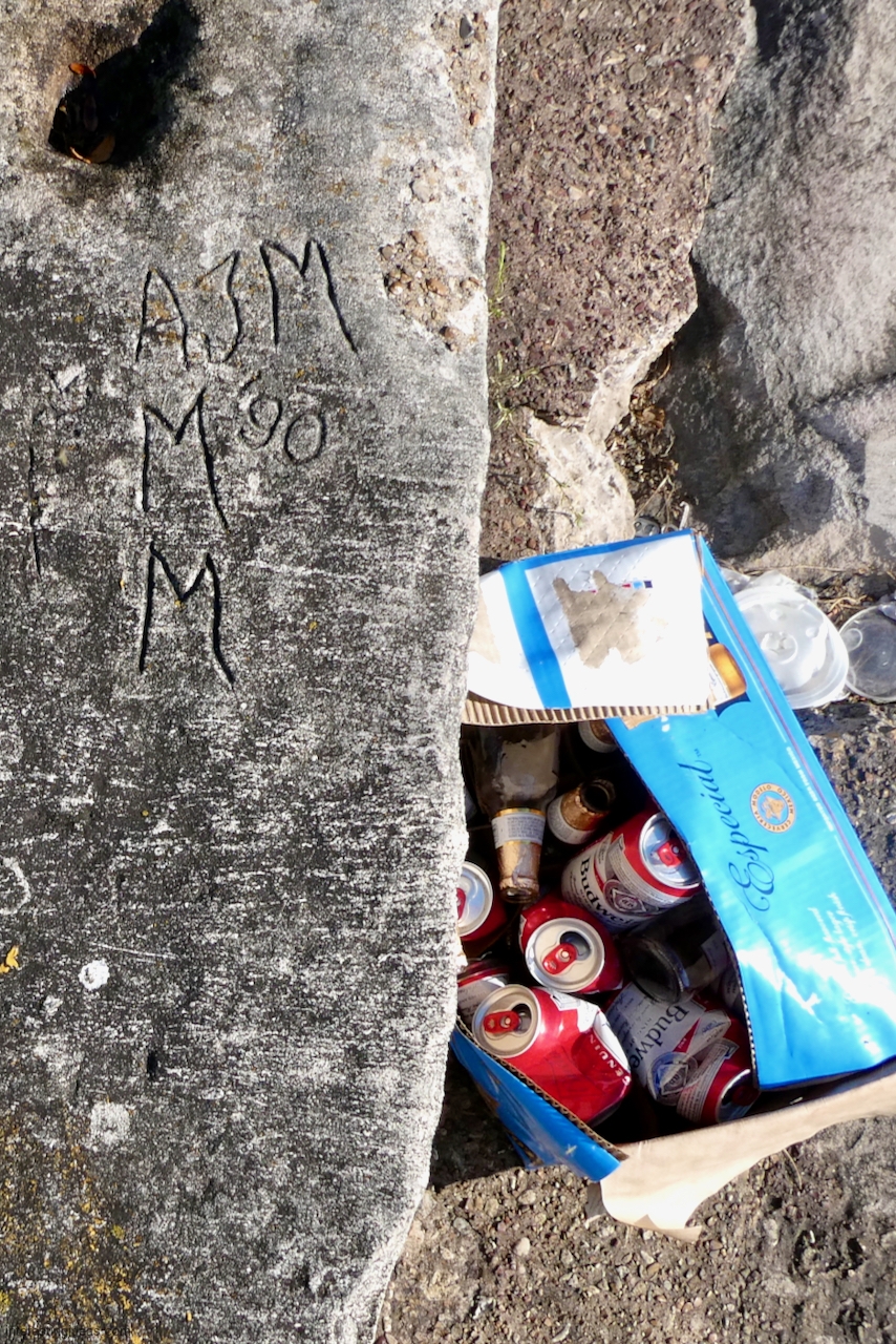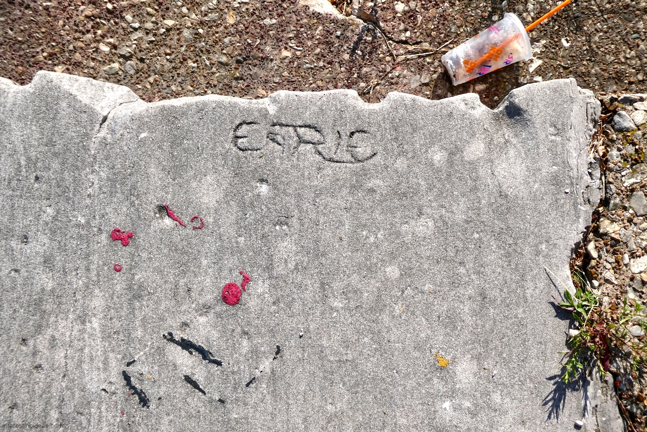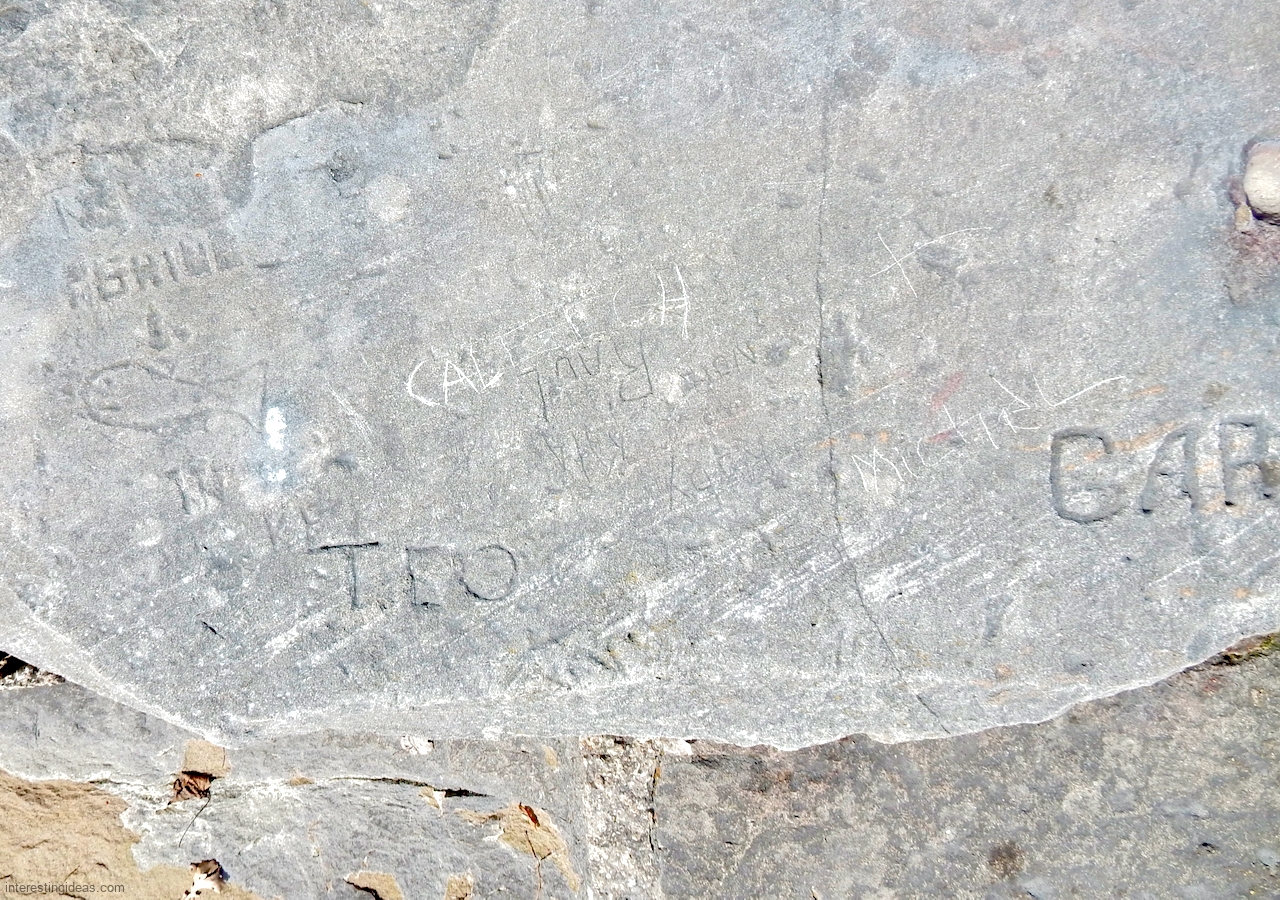 Another factor is the high volume of what I call autograph rocks — blocks where many people, sometimes dozens, have each carved their names. These exist all up and down the lakefront but are especially plentiful near the Calumet Park Coast Guard station.