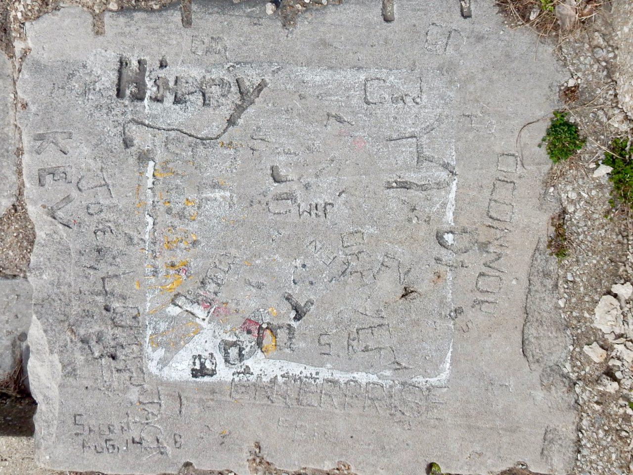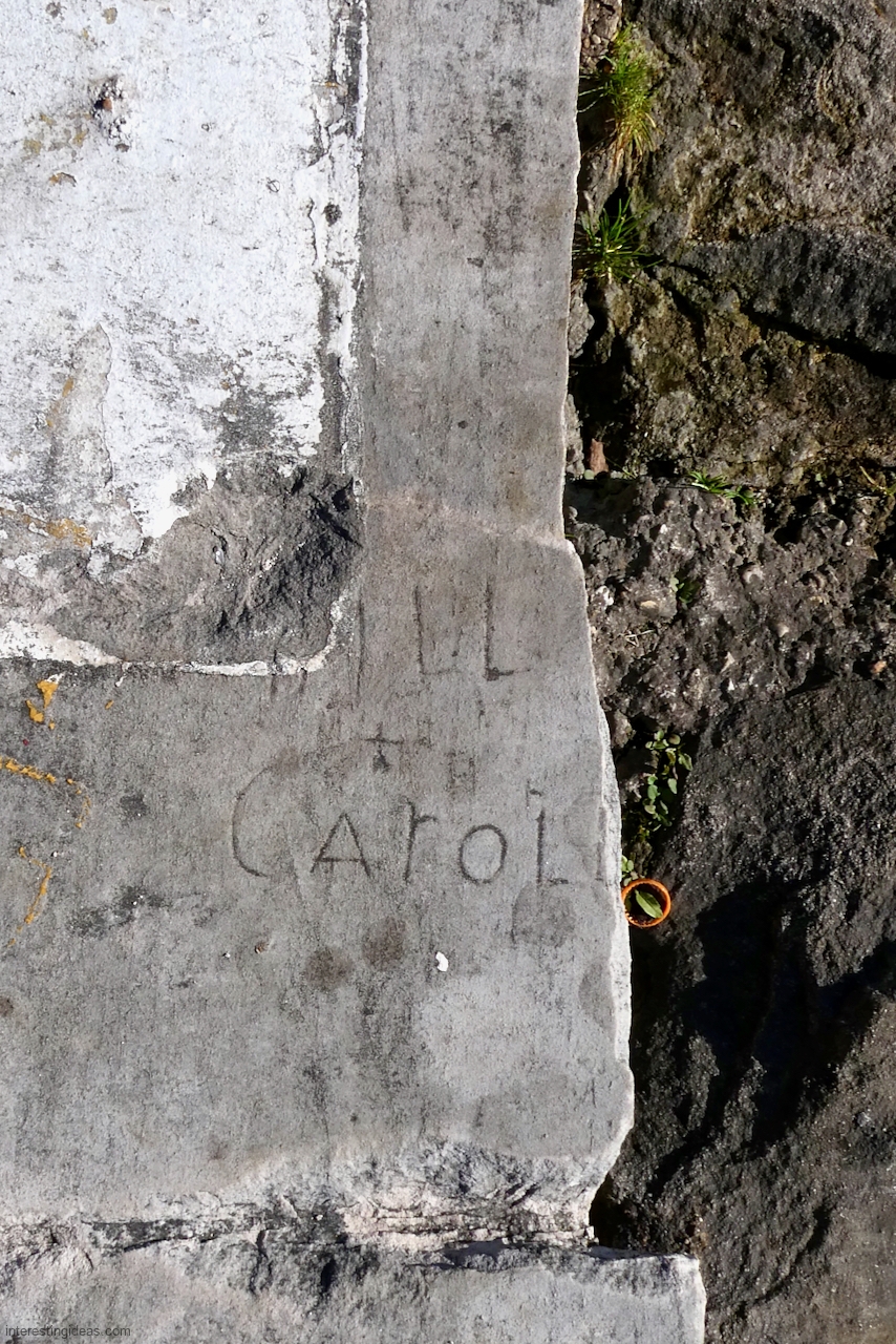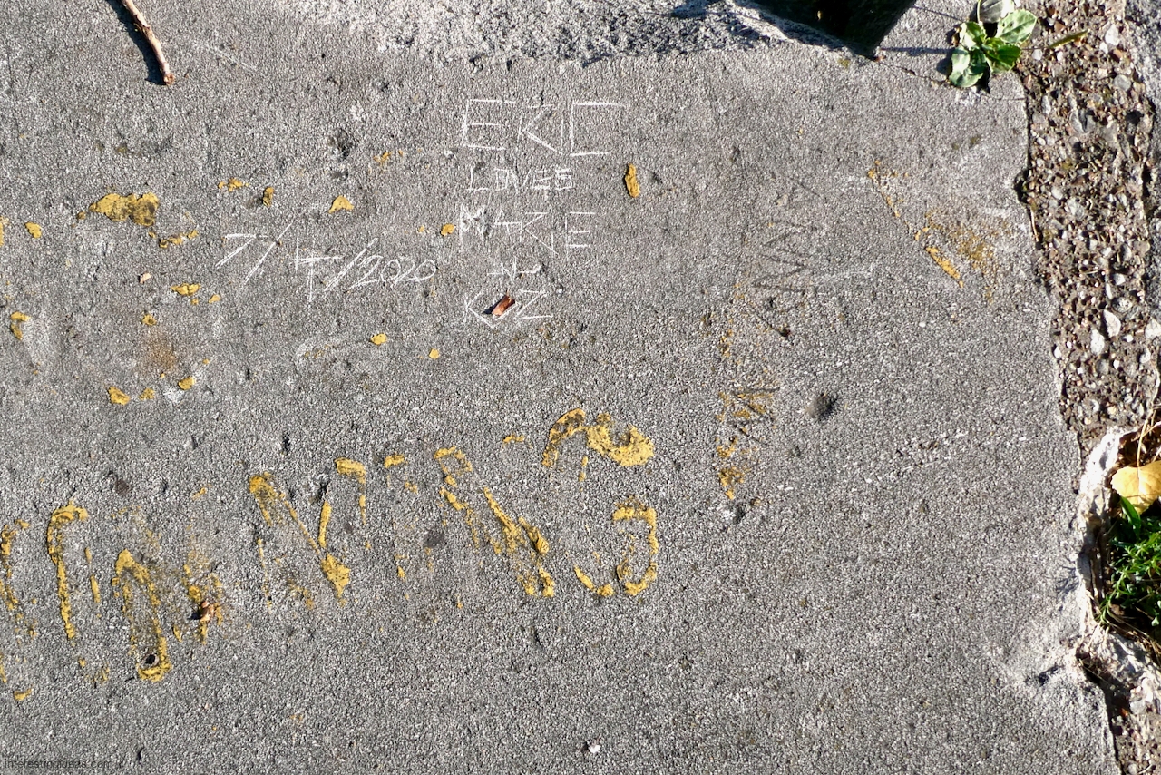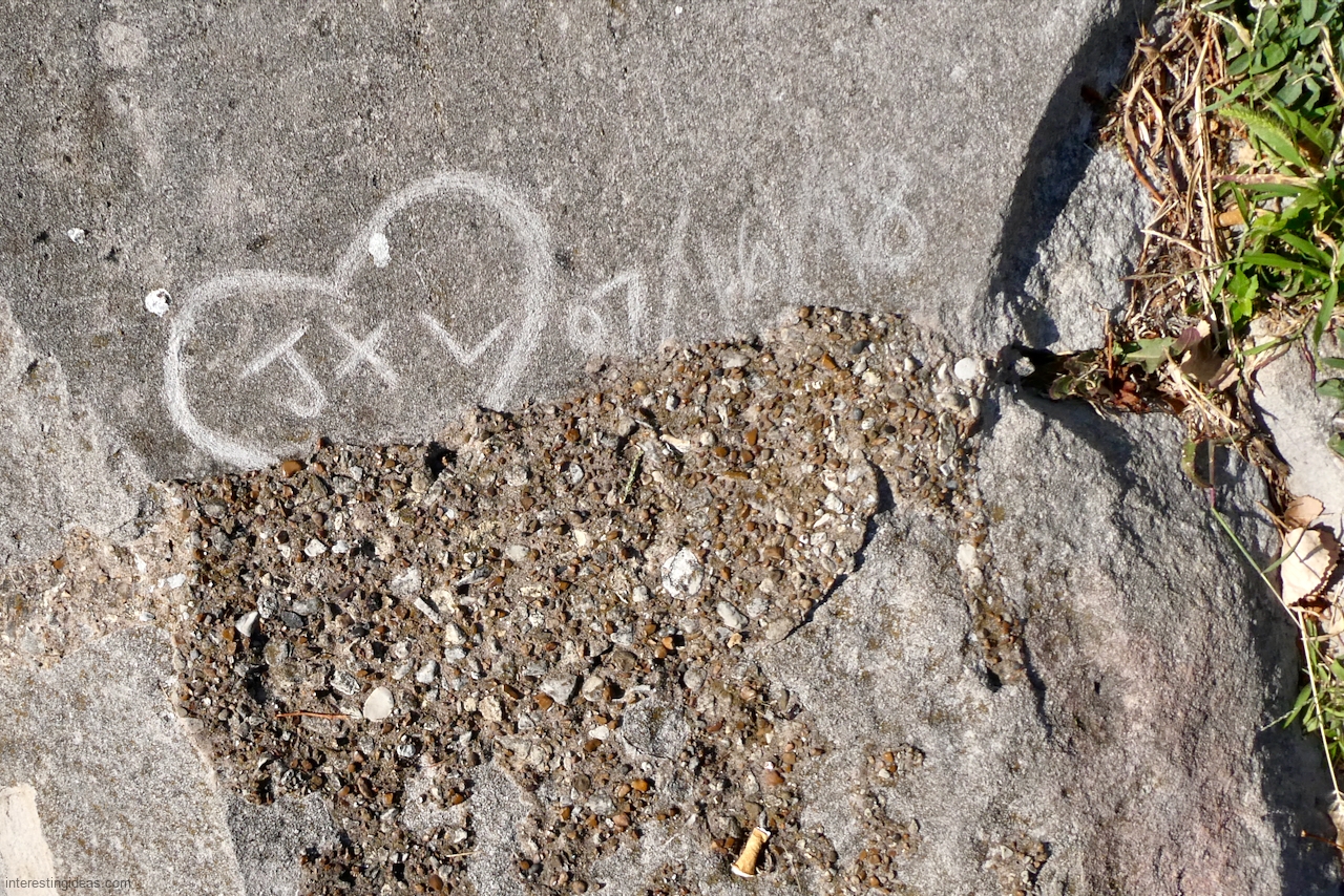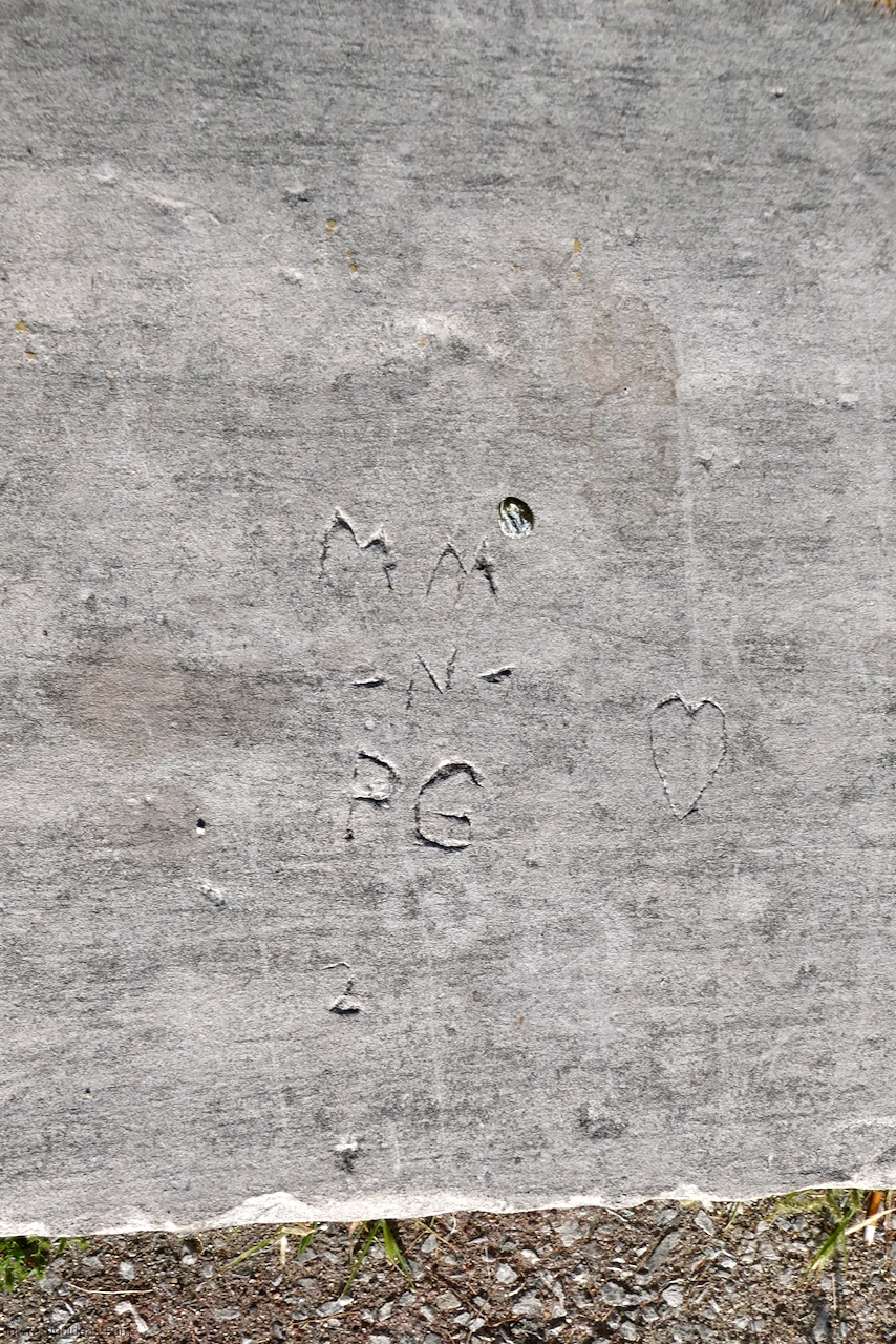Another factor is the high volume of what I call autograph rocks — blocks where many people, sometimes dozens, have each carved their names. These exist all up and down the lakefront but are especially plentiful near the Calumet Park Coast Guard station.