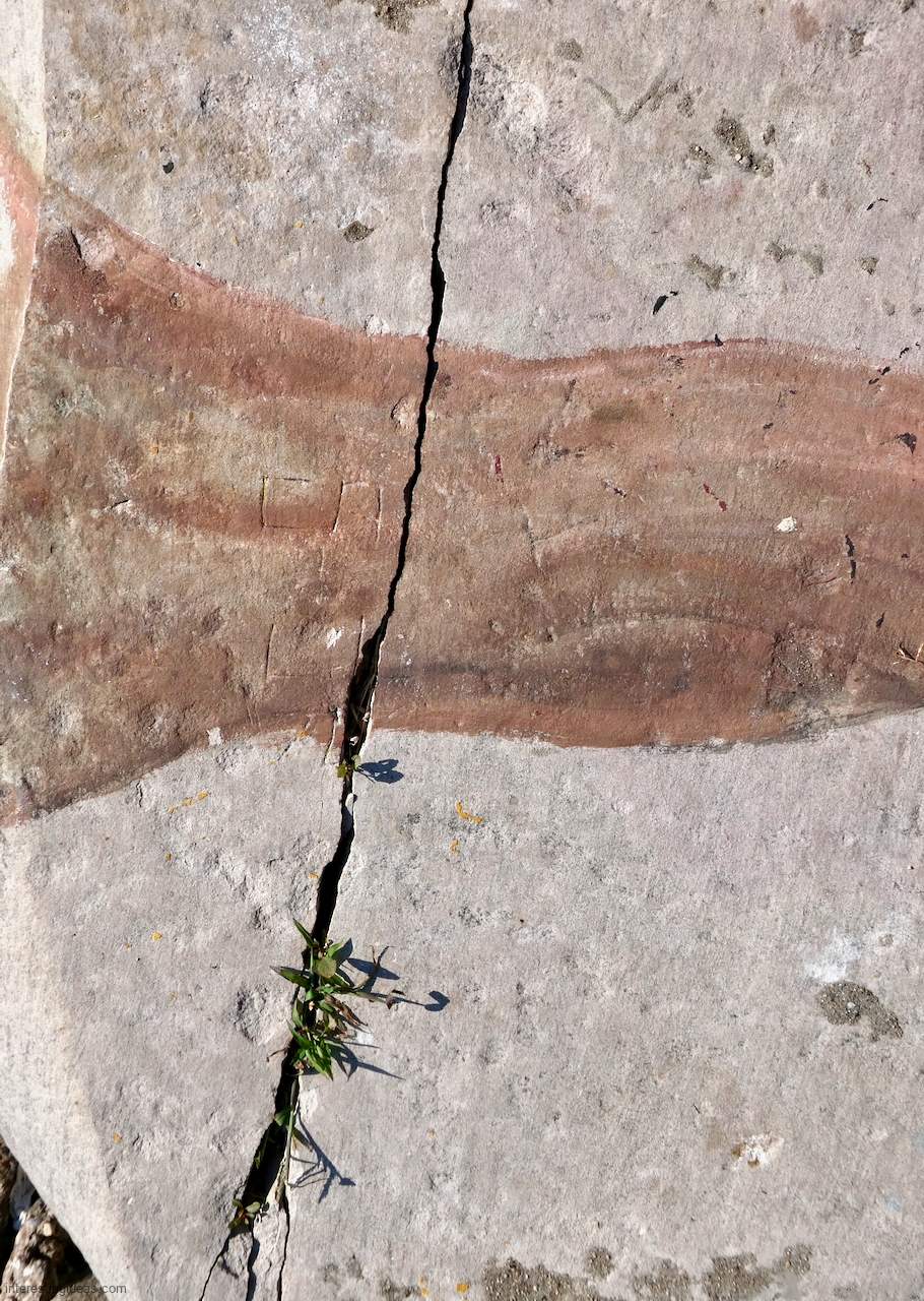 The Park’s roots go back to 1904, though when the limestone was installed is unknown. The stepstones are in generally good condition. The breakwater built to protect the former U.S. Steel plant just to the north must also calm the waters along the Calumet Park shore. In addition, much of the limestone revetment is fronted with a steel seawall at the water line. That makes it more like the shore north of Montrose Beach — where the limestone also is in reasonably good shape — but unlike most of the surviving revetments on the South Side, which show much more wear and tear from the lake and the weather. As a result Calumet Park, which also has ample parking, is a particularly accessible place to view Chicago’s rock carvings, similar to Foster Avenue Beach on the North Side.