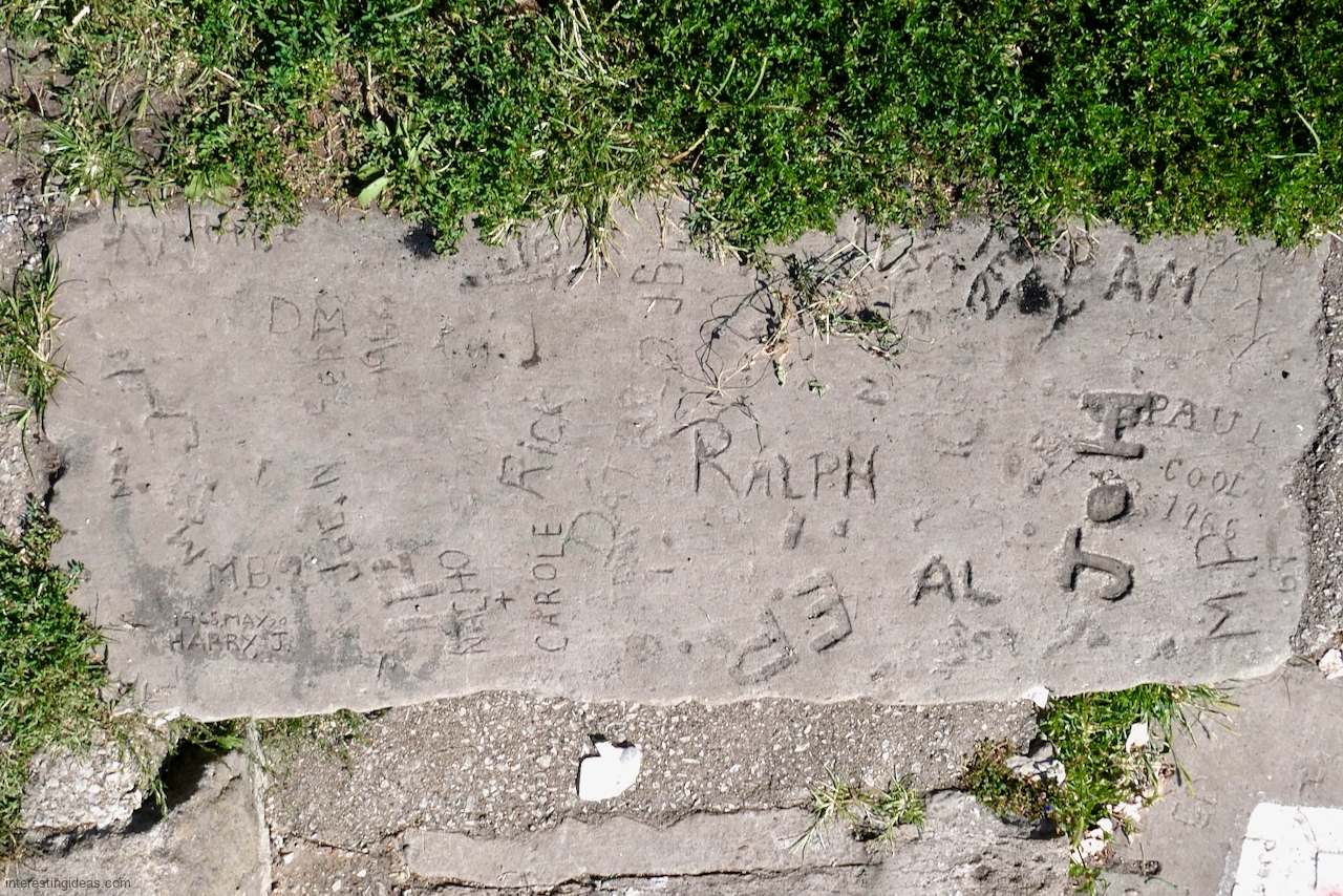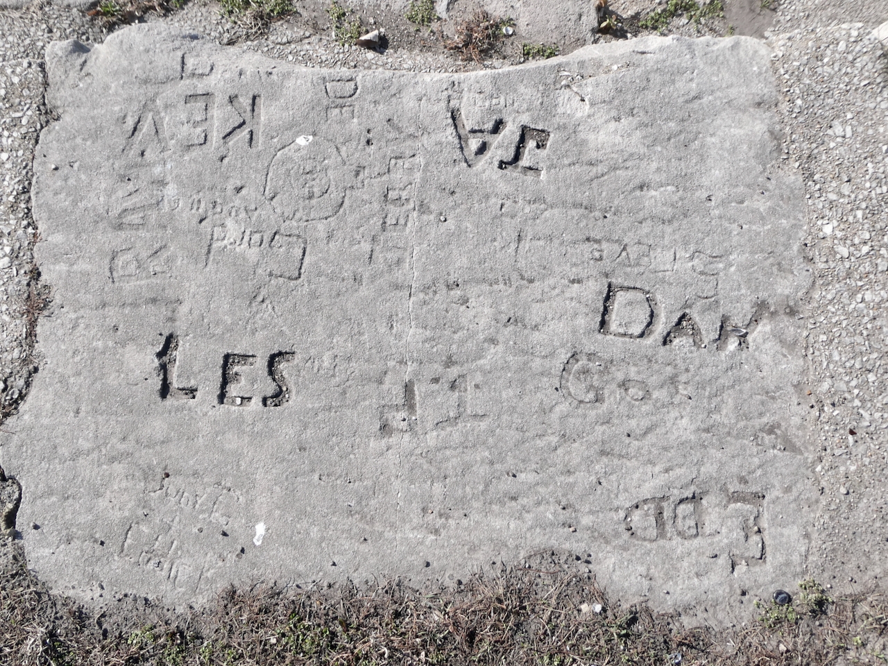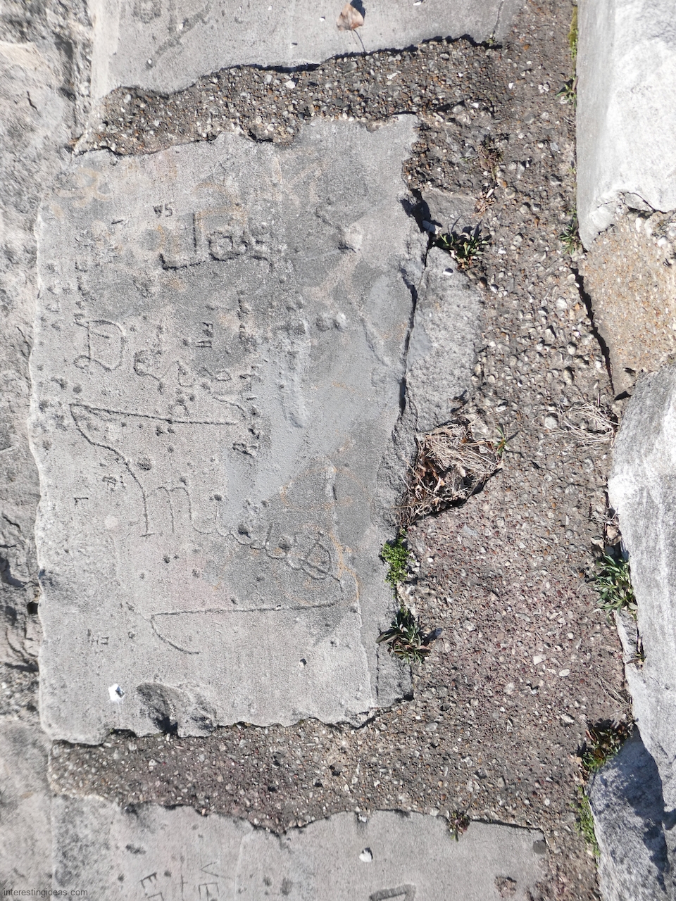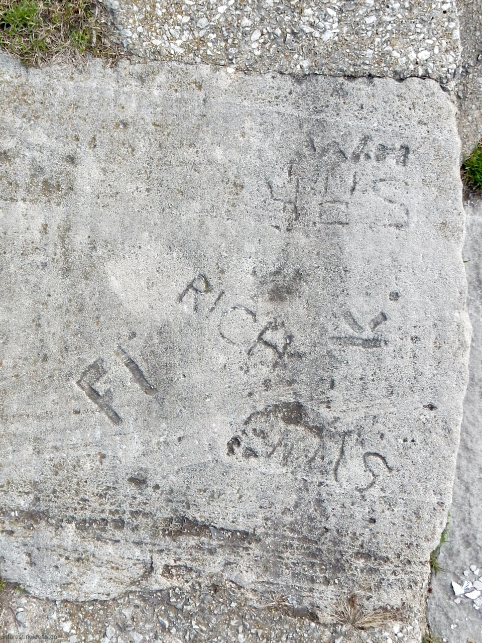 Another factor is the high volume of what I call autograph rocks — blocks where many people, sometimes dozens, have each carved their names. These exist all up and down the lakefront but are especially plentiful near the Calumet Park Coast Guard station.