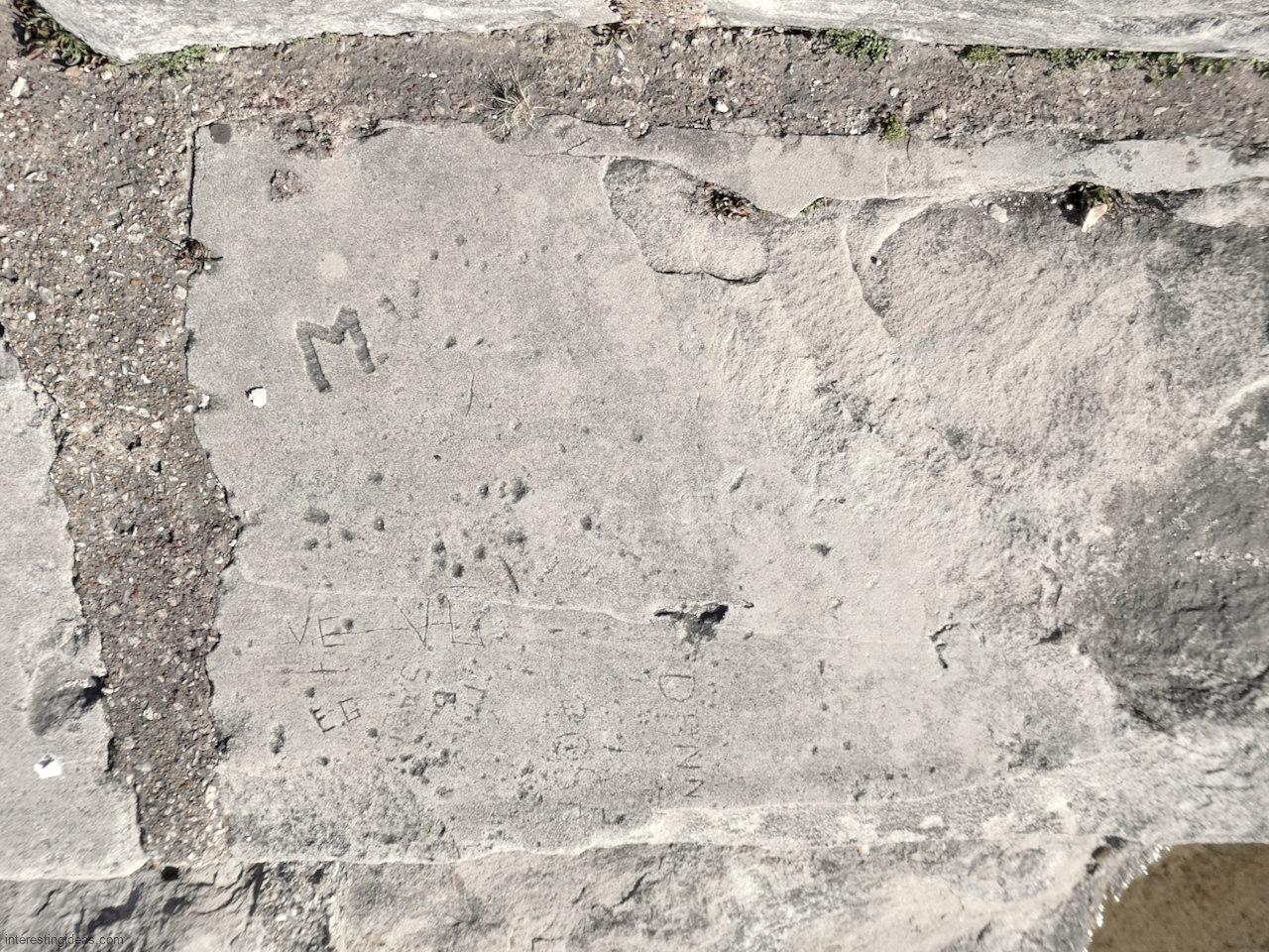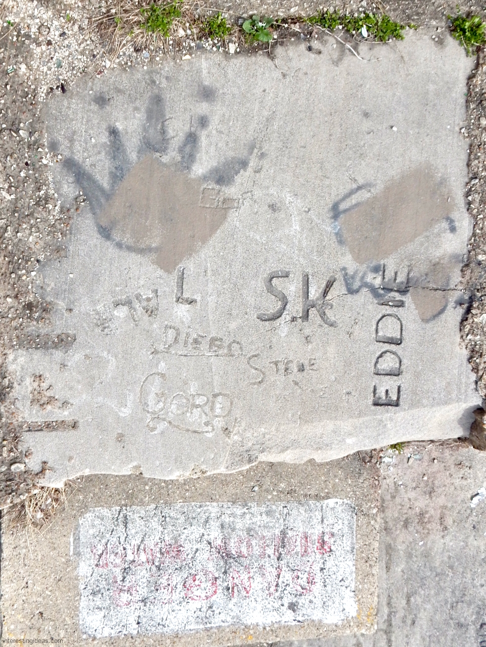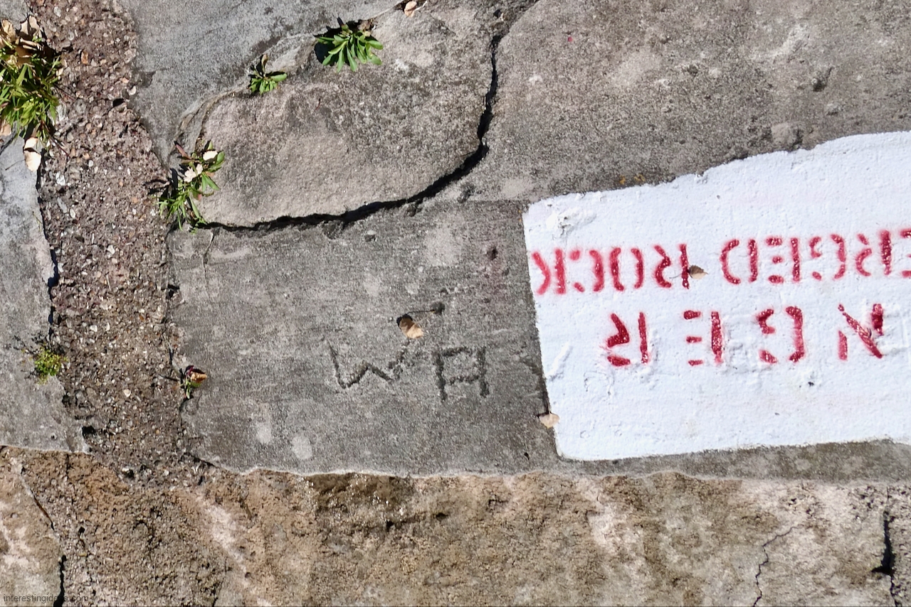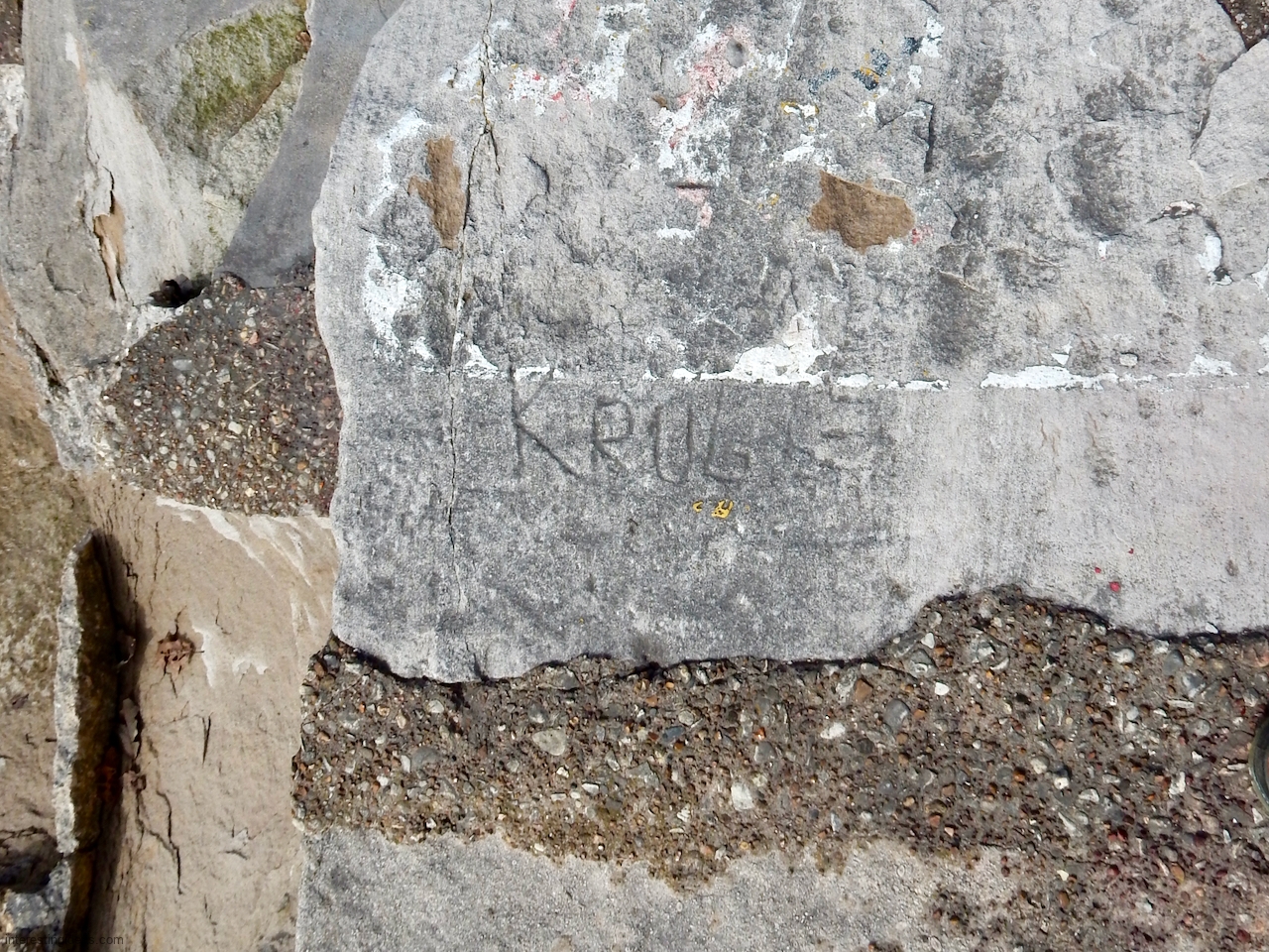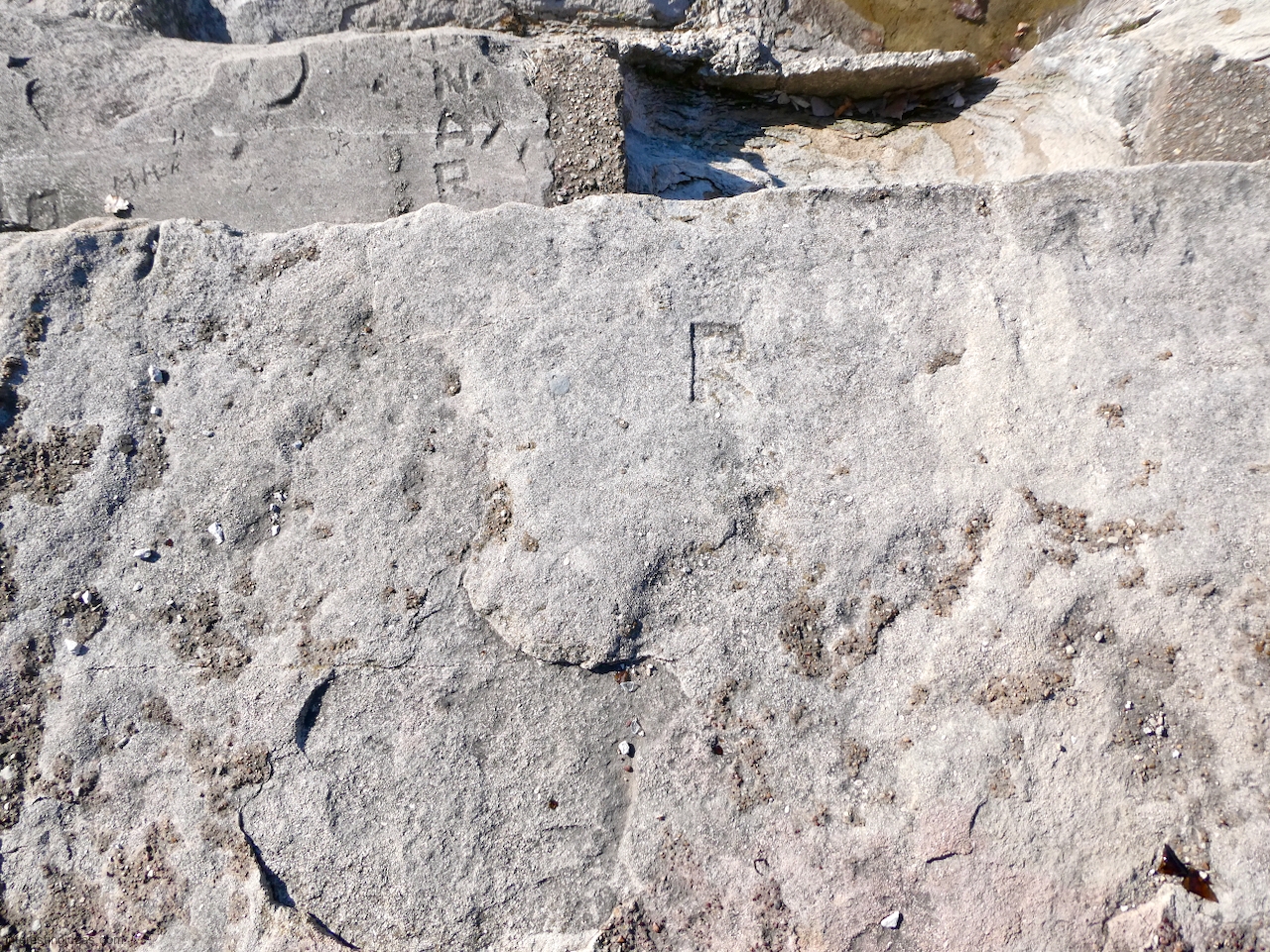 Another factor is the high volume of what I call autograph rocks — blocks where many people, sometimes dozens, have each carved their names. These exist all up and down the lakefront but are especially plentiful near the Calumet Park Coast Guard station.