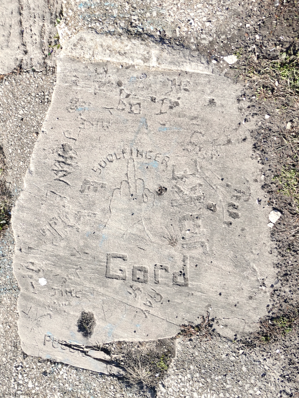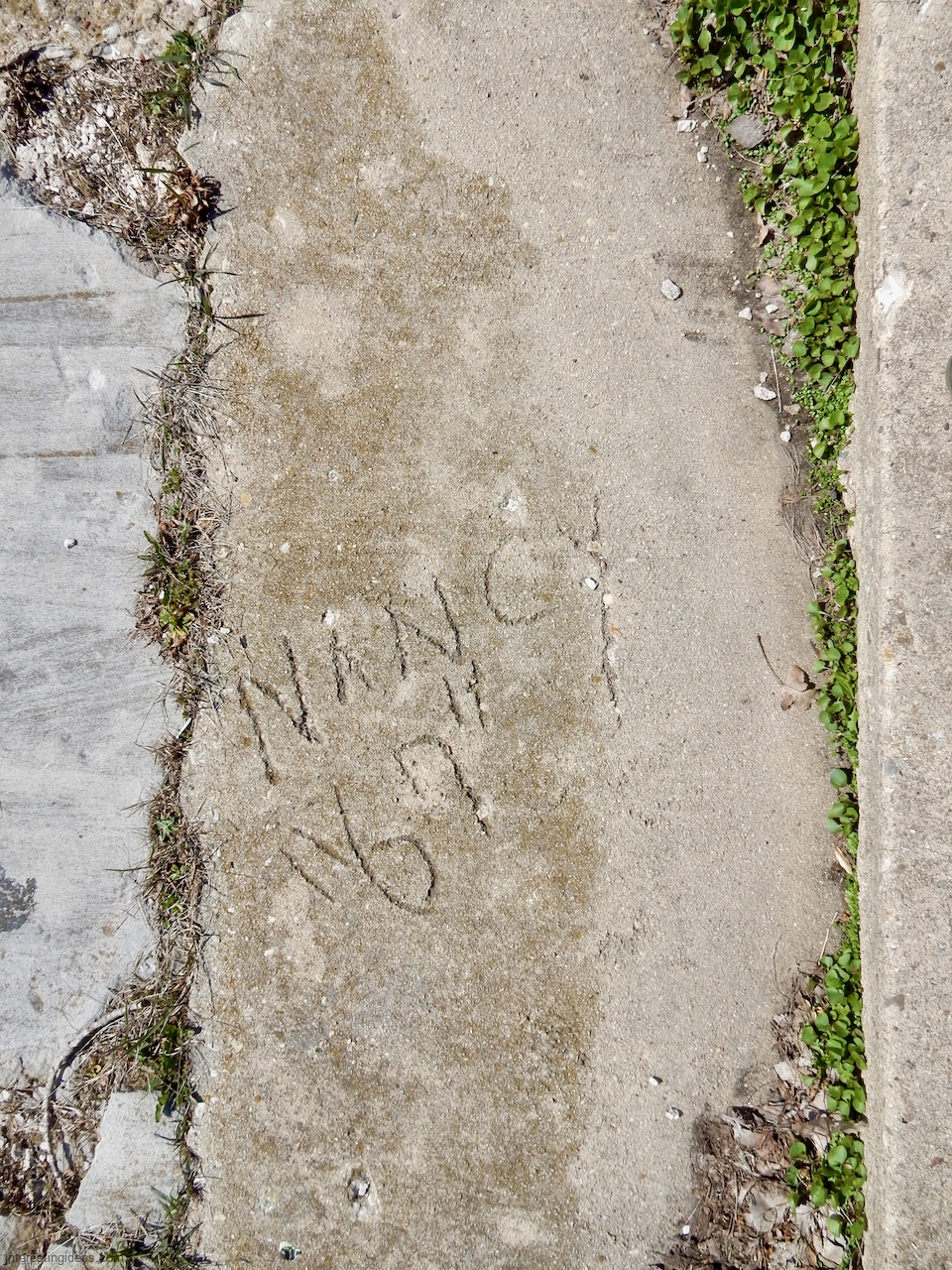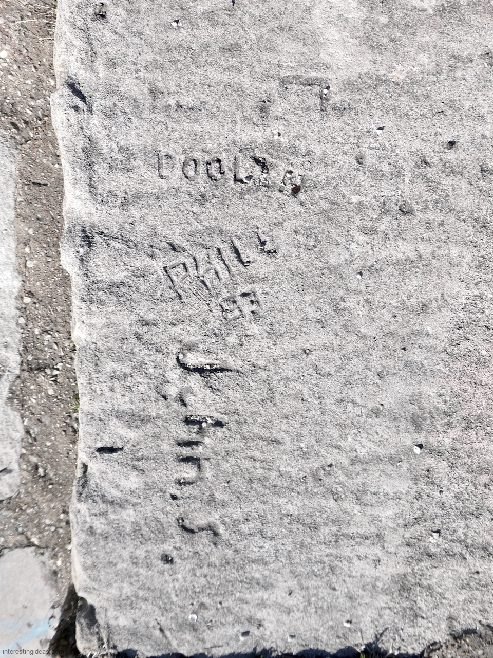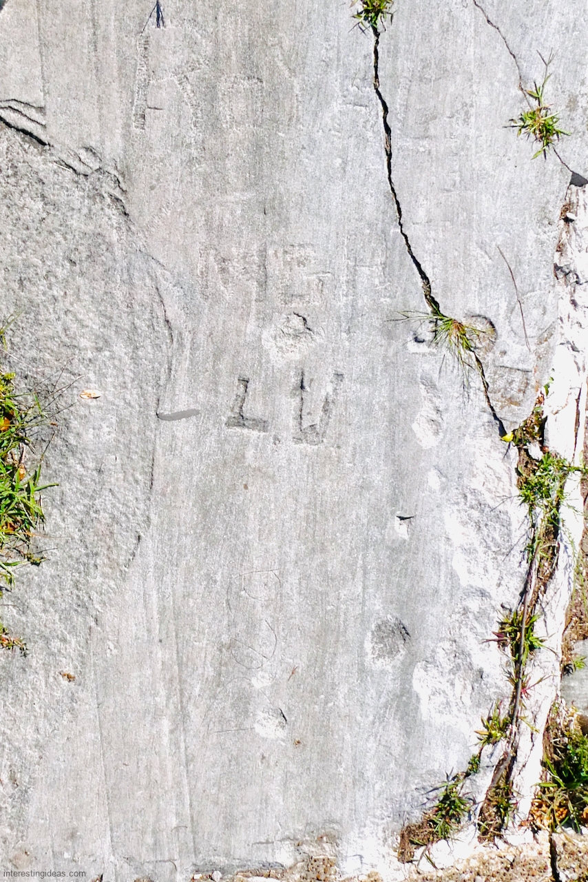 Another factor is the high volume of what I call autograph rocks — blocks where many people, sometimes dozens, have each carved their names. These exist all up and down the lakefront but are especially plentiful near the Calumet Park Coast Guard station.