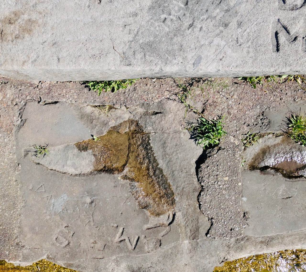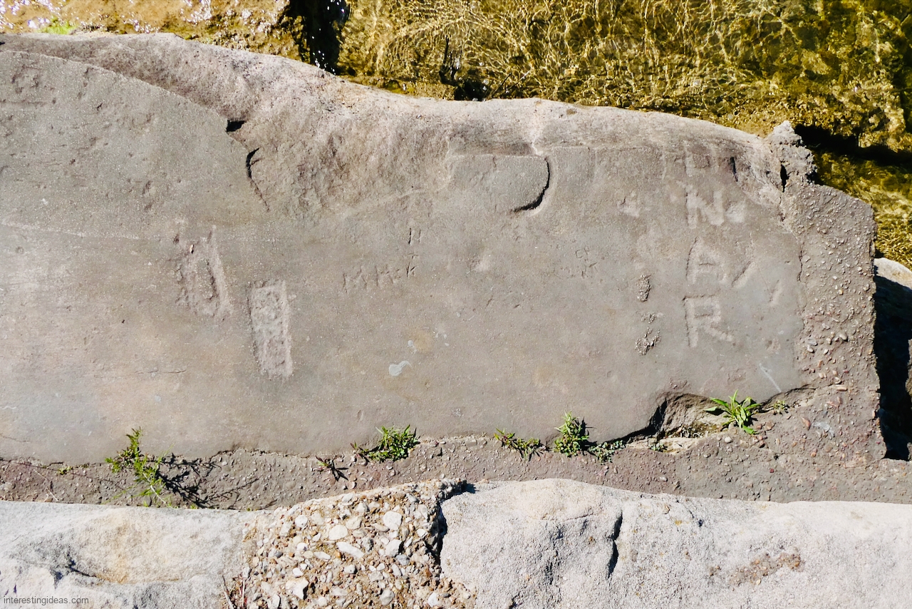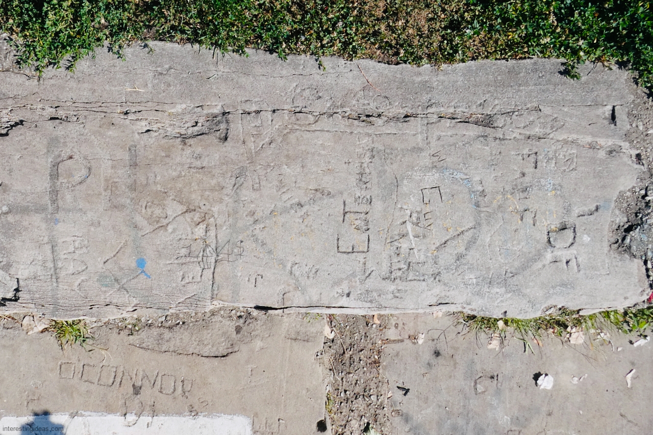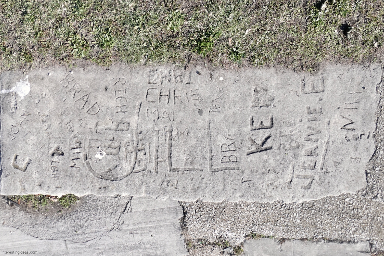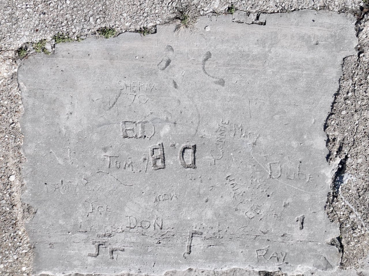 Another factor is the high volume of what I call autograph rocks — blocks where many people, sometimes dozens, have each carved their names. These exist all up and down the lakefront but are especially plentiful near the Calumet Park Coast Guard station.