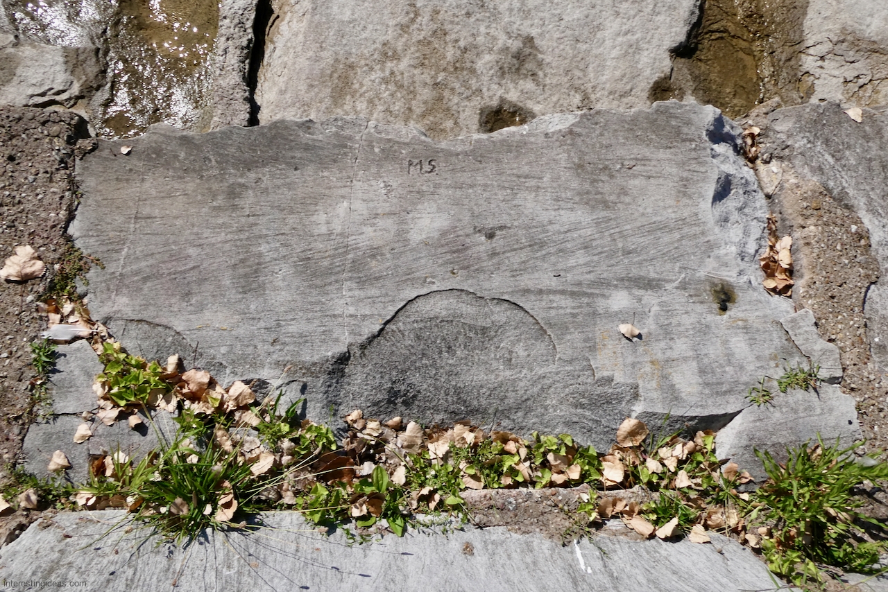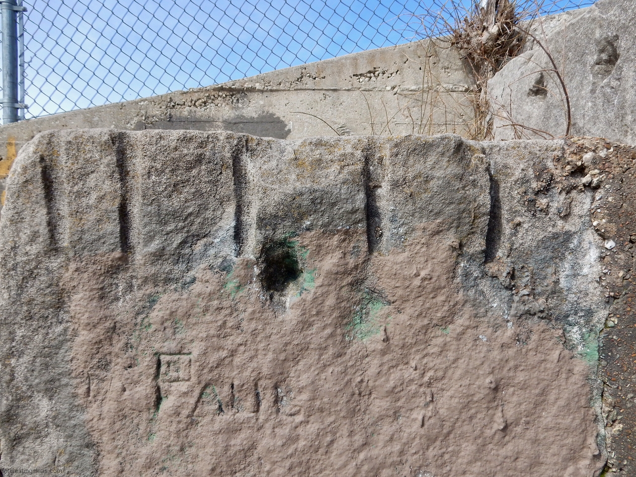 The Park’s roots go back to 1904, though when the limestone was installed is unknown. The stepstones are in generally good condition. The breakwater built to protect the former U.S. Steel plant just to the north must also calm the waters along the Calumet Park shore. In addition, much of the limestone revetment is fronted with a steel seawall at the water line. That makes it more like the shore north of Montrose Beach — where the limestone also is in reasonably good shape — but unlike most of the surviving revetments on the South Side, which show much more wear and tear from the lake and the weather. As a result Calumet Park, which also has ample parking, is a particularly accessible place to view Chicago’s rock carvings, similar to Foster Avenue Beach on the North Side.