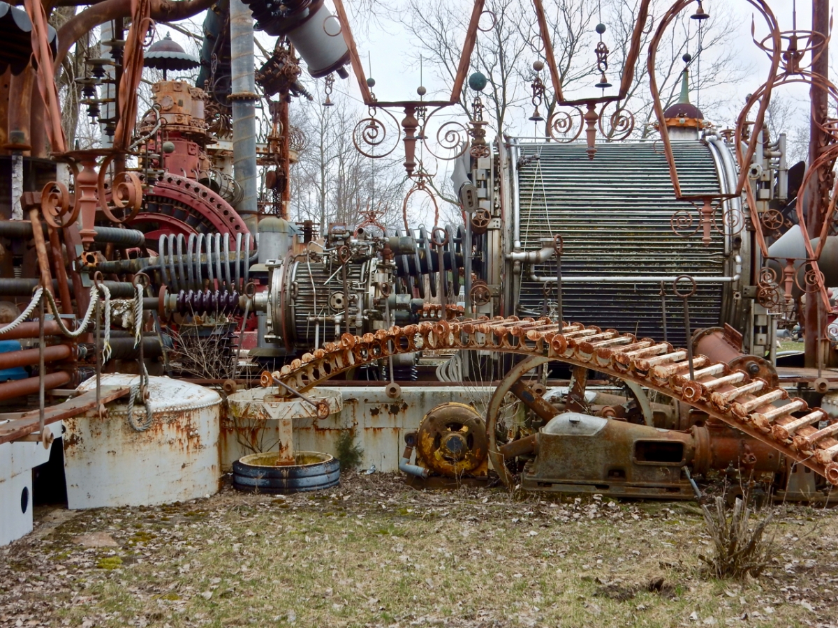 He has involved explanations for the work, but the focus here is its visual impact. The site includes not just the enormous Forevertron itself, but lots of other sculptures, some quite massive in their own right. Junk sculpture isn’t always my favorite, but Every brings a distinct personal vision to the materials that set his apart, not to mention the impact of seeing so many of them in one place. The complexity, imagination and even the science-fiction themes percolating up through the junk make the site a visual wonderland.