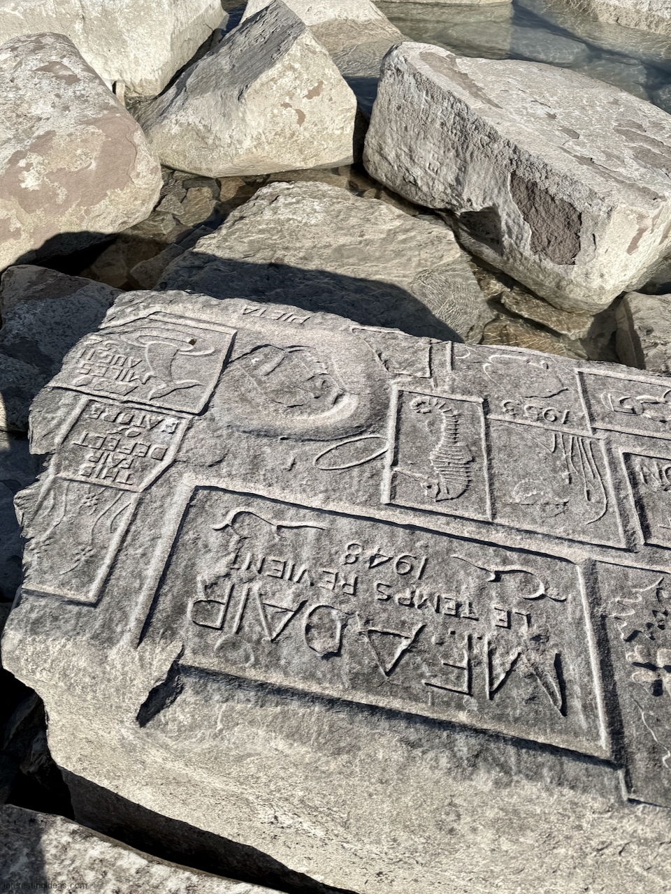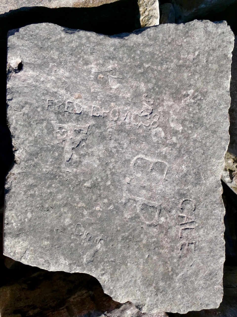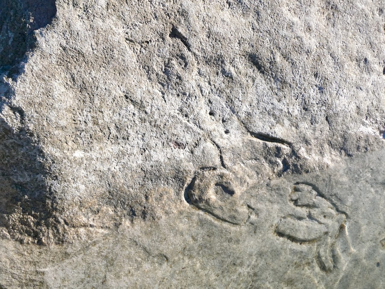 Several of the Chicago lakefront’s most magnificent rock carvings reside on the stones south of La Rabida Hospital near 65th Street and the lake. For the last several years many of these carvings were inaccessible or invisible under the water. But with the lake’s level having fallen in the last few years they are now mostly visible (as of spring 2025). These 200 or so carvings, I believe, are the last large group that remained to be documented as part of my Lakefront Anonymous project. Here are highlights from this group.