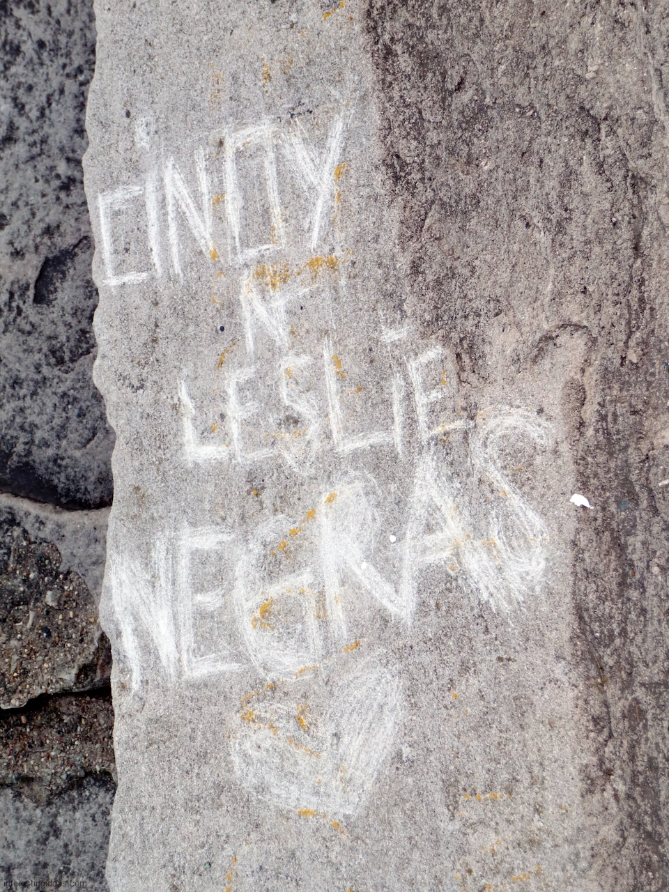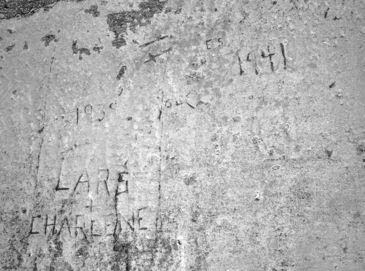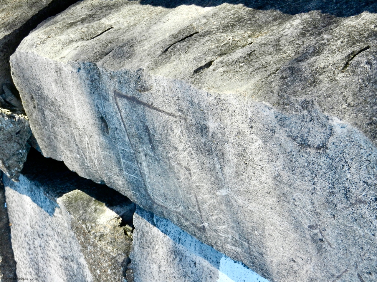 Carvings on the blocks that lined the waterfront south of Montrose Harbor lasted a bit longer before they too were demolished — indeed, a few have survived on the one stretch of undisturbed shore immediately opposite the entrance to the harbor.