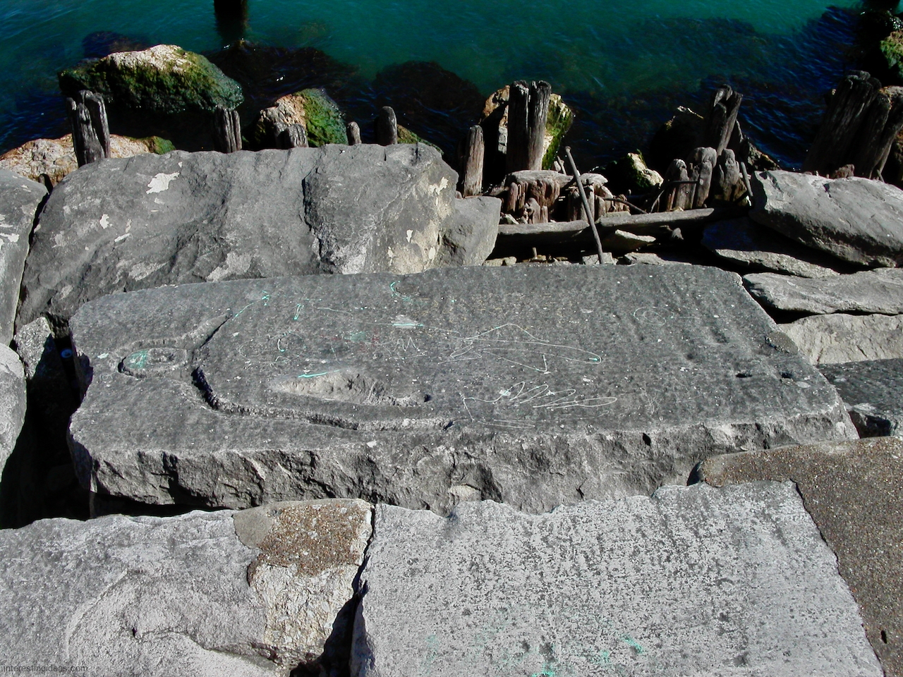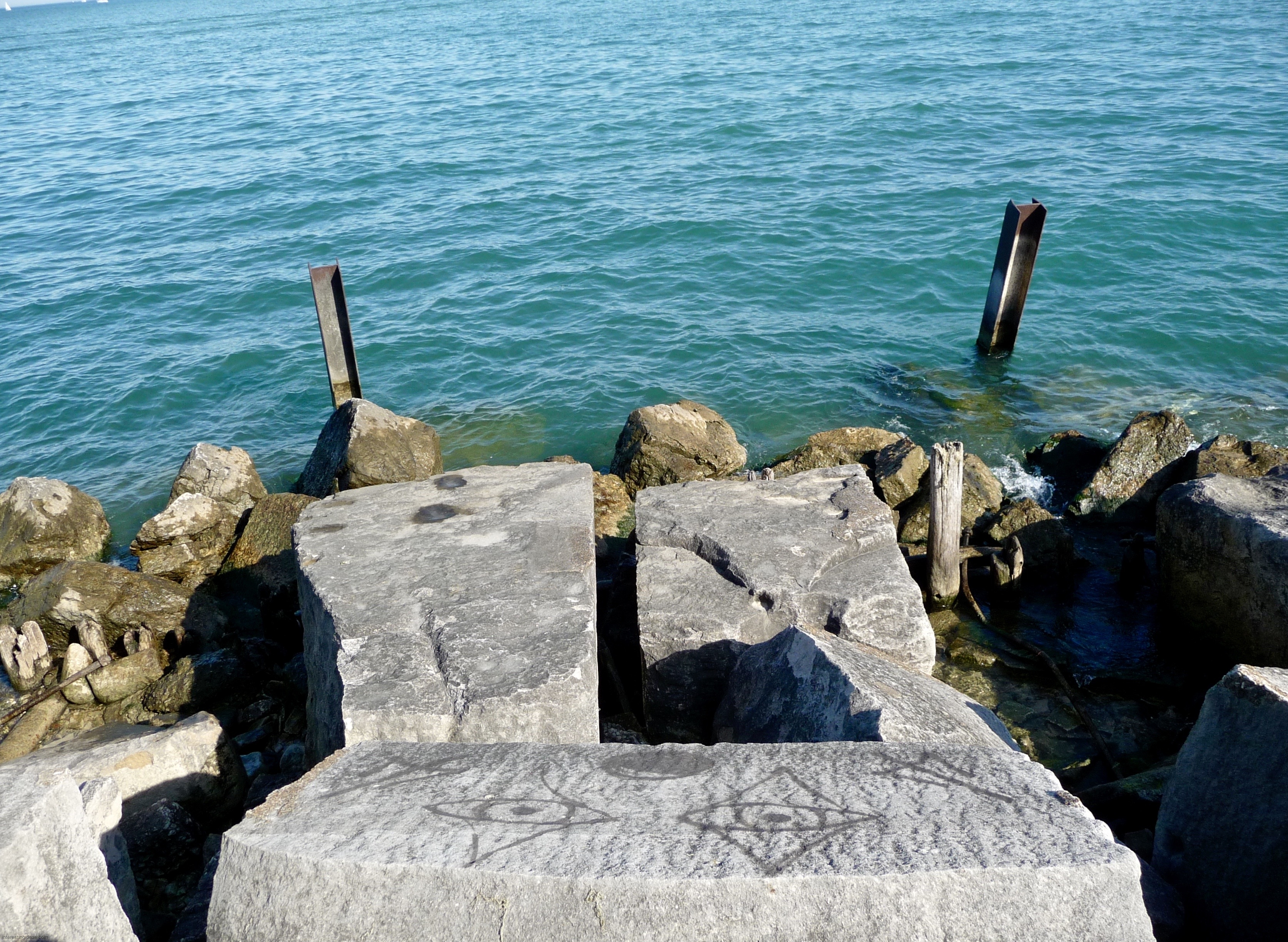 Montrose Harbor on Chicago’s North Side was once the site of a remarkable set of rock carvings on the limestone blocks that ran down in steps to the water.