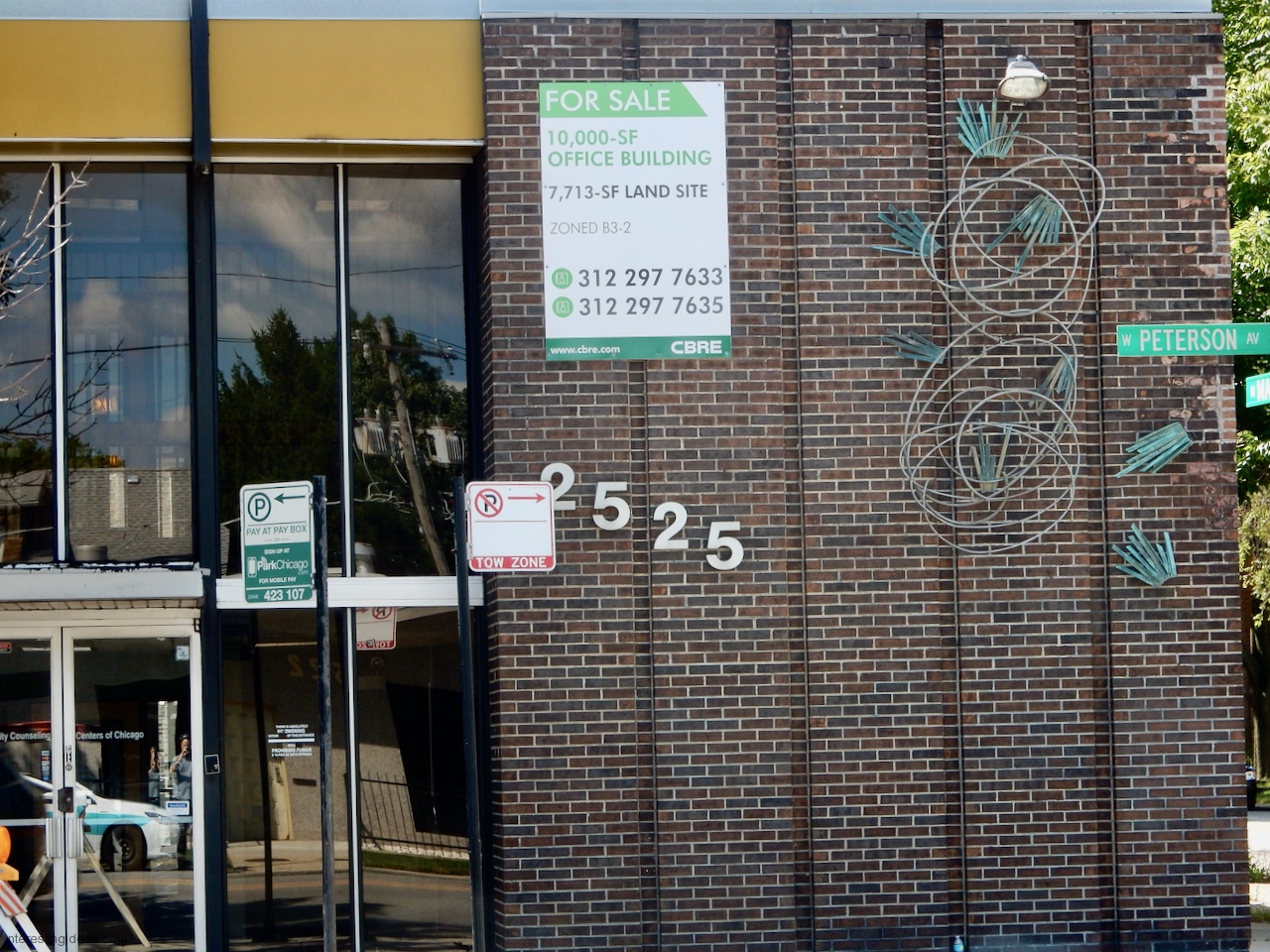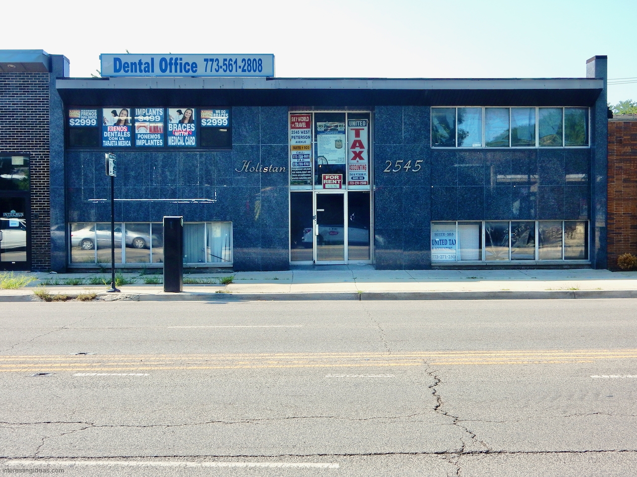 Peterson, from Western Avenue west to Central Park Avenue, is a case where economic stagnation (as opposed to decline) might be the best preservative for under-valued architecture. I doubt whether Peterson was ever a hot neighborhood, and it’s hardly hot now. But it’s also not falling apart. There may be vacancies, but there still seem to be plenty of professional buildings that contain tenants.