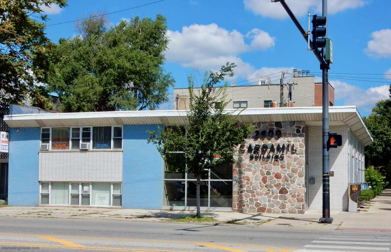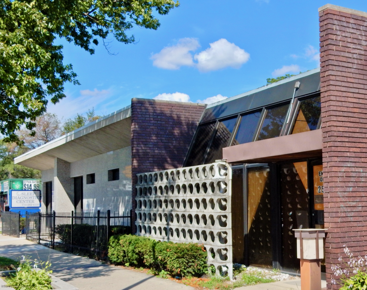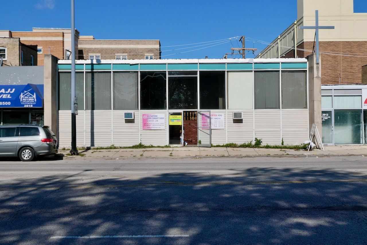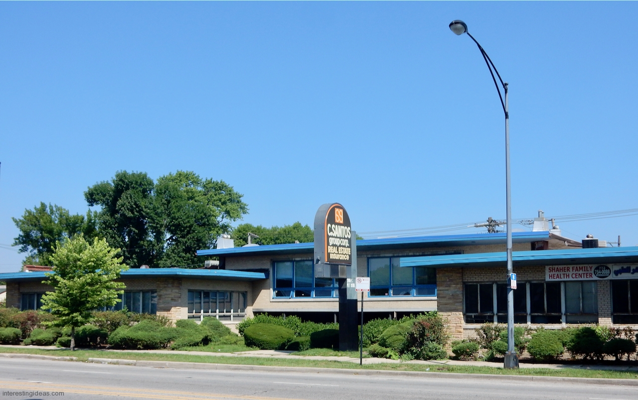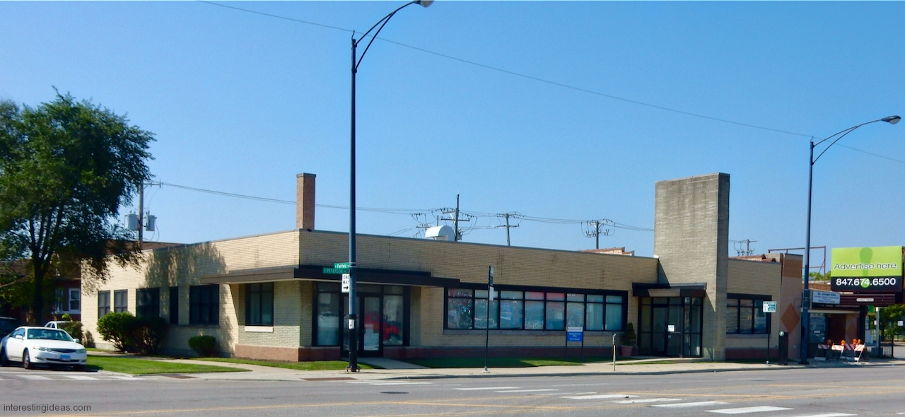 Peterson Avenue: A cynic might say it’s where Prairie style went to die, and I’d say, yes and an honorable death. The mid-century buildings on this commercial strip range from late moderne to proto-post modern, with lots of typical Mid Century Modern buildings in between, all showing a range of Prairie influences.