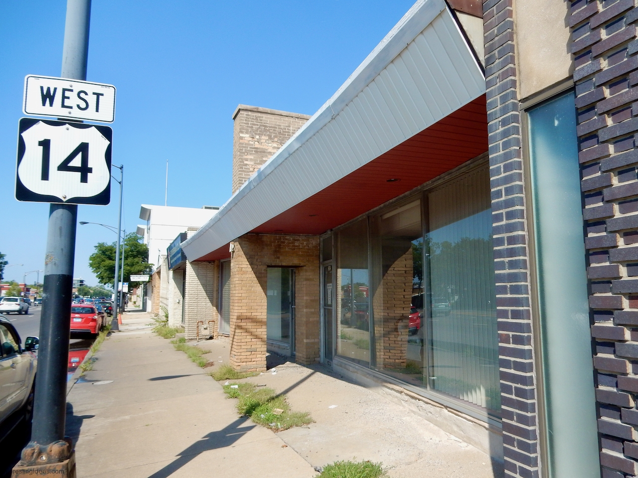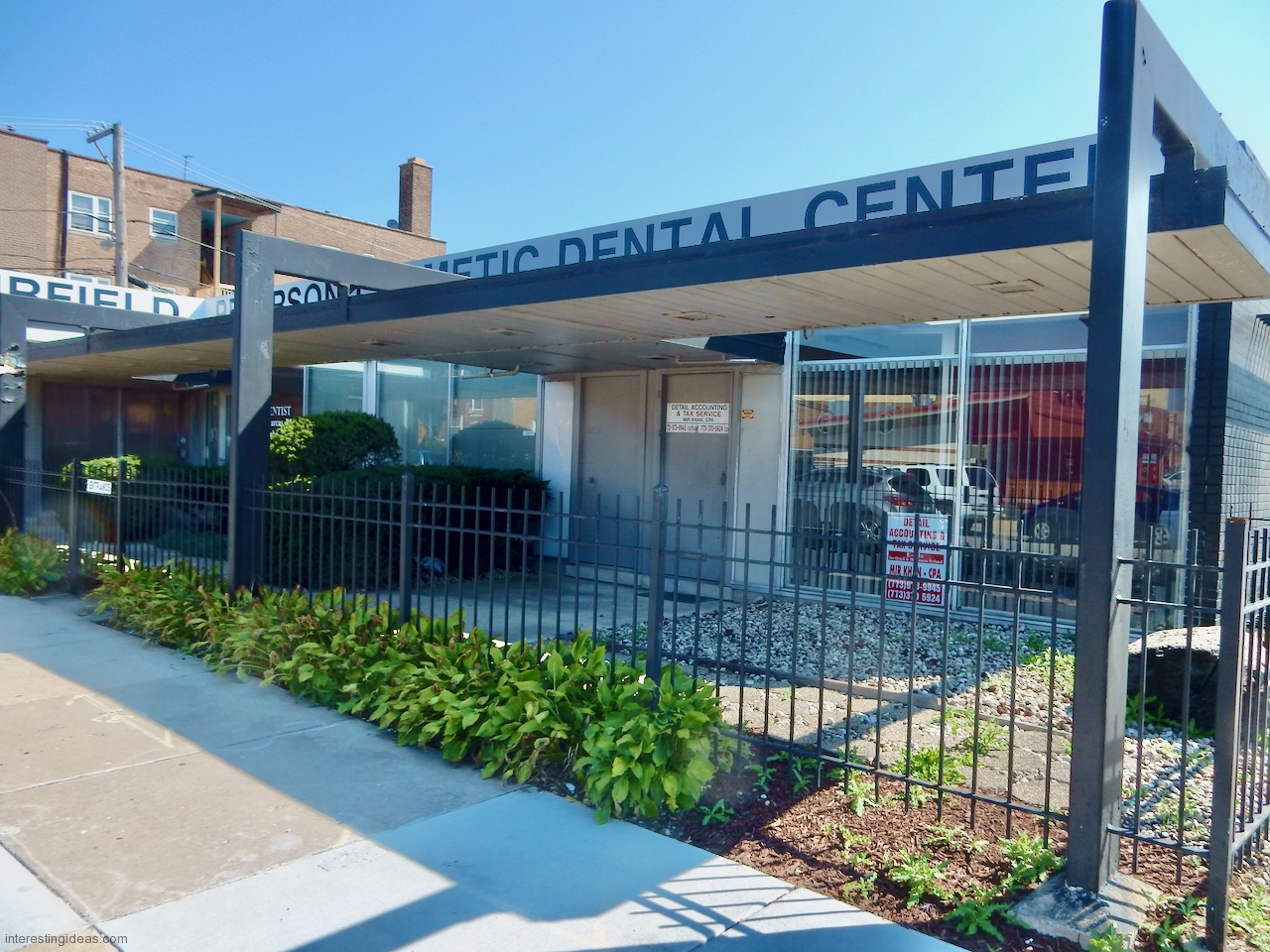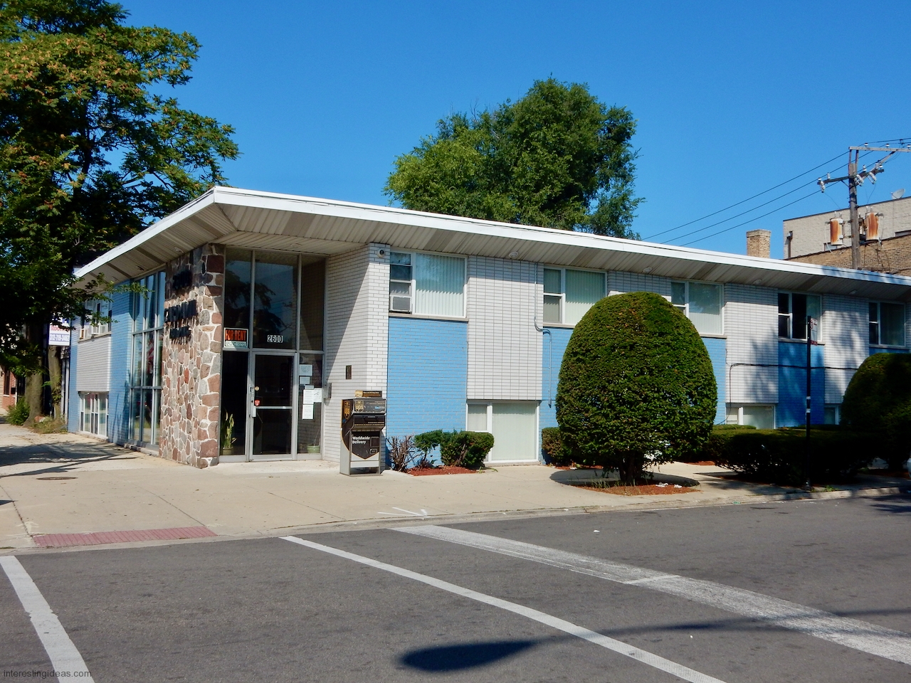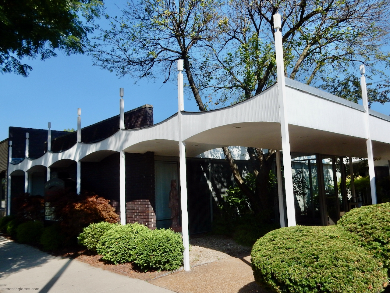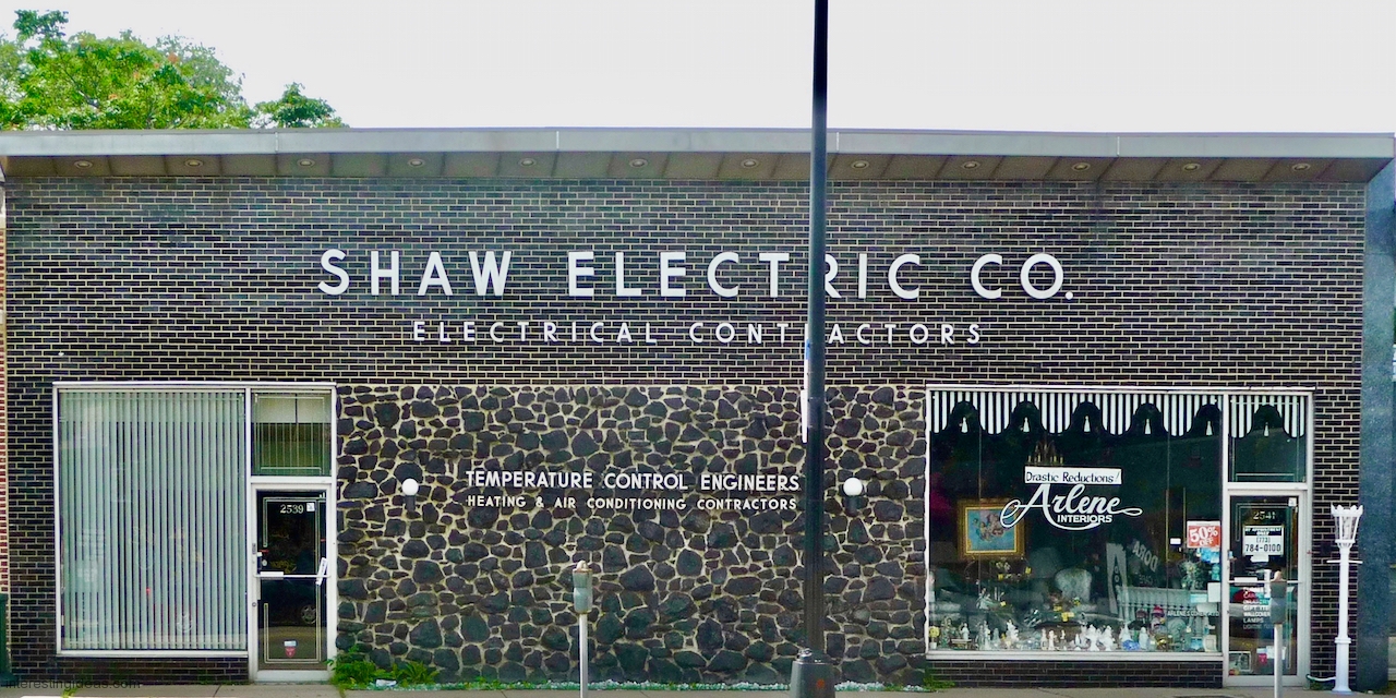 Peterson Avenue: A cynic might say it’s where Prairie style went to die, and I’d say, yes and an honorable death. The mid-century buildings on this commercial strip range from late moderne to proto-post modern, with lots of typical Mid Century Modern buildings in between, all showing a range of Prairie influences.