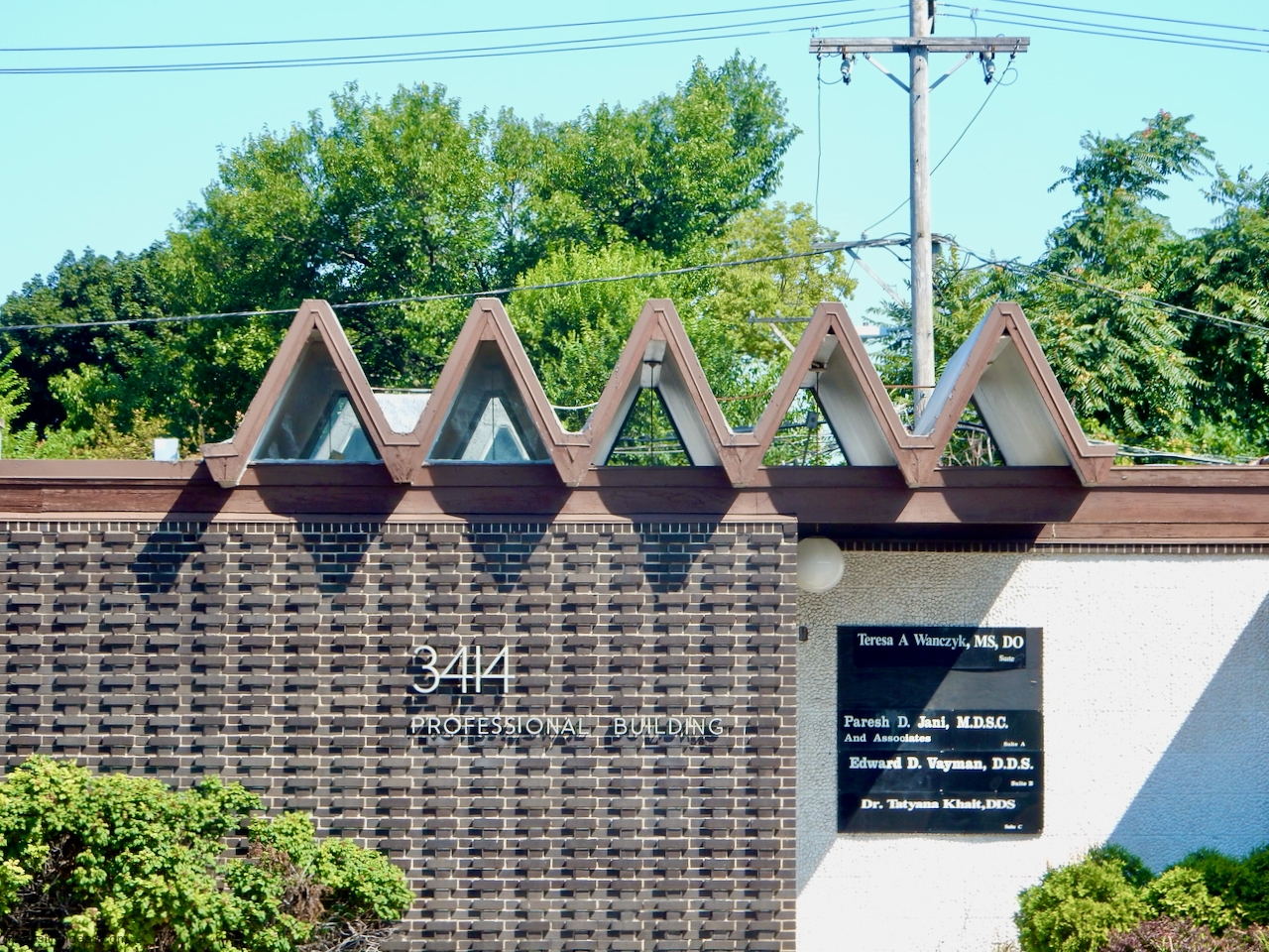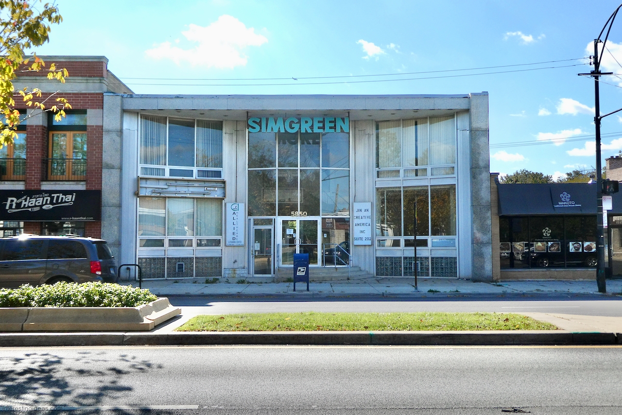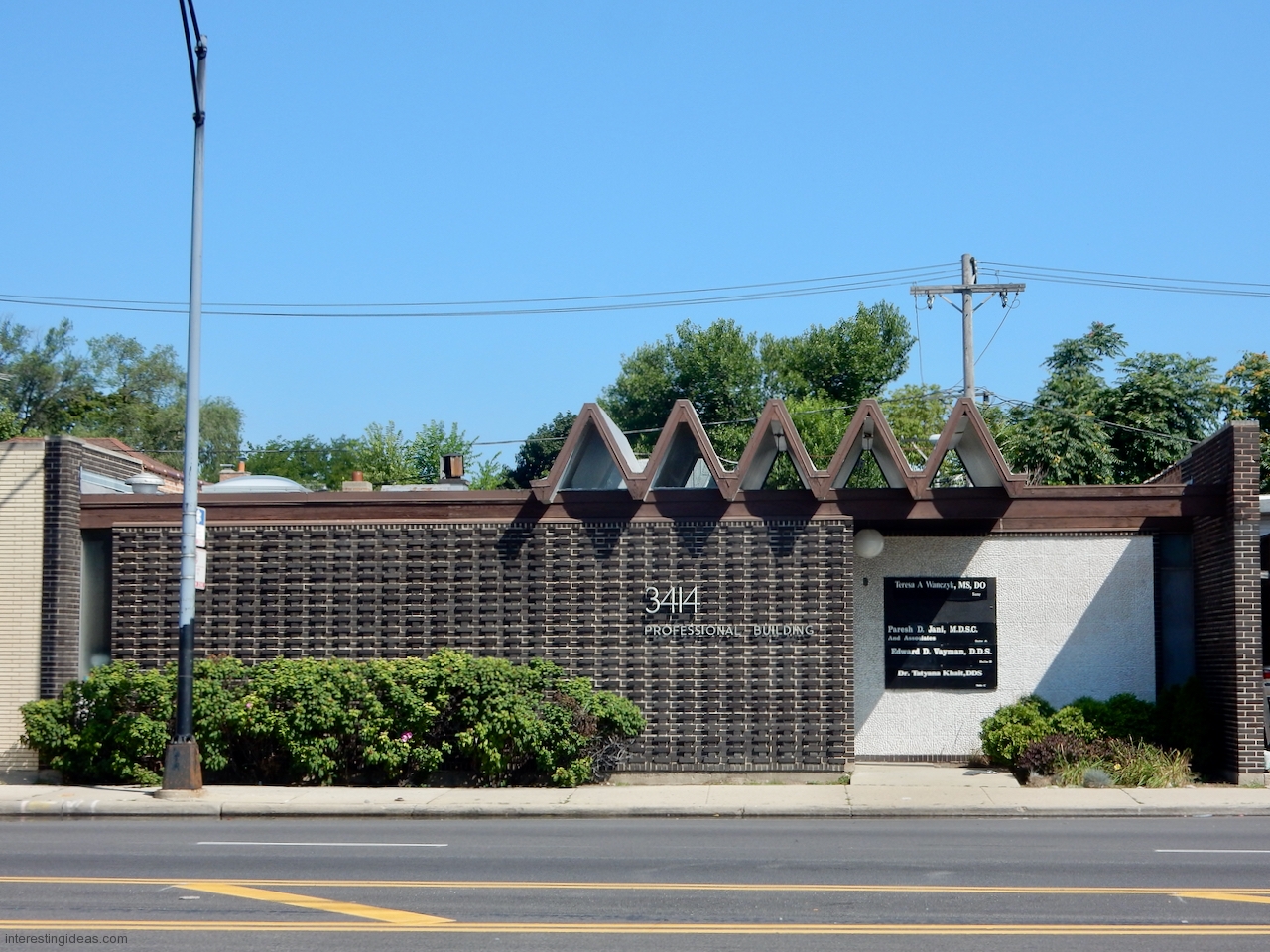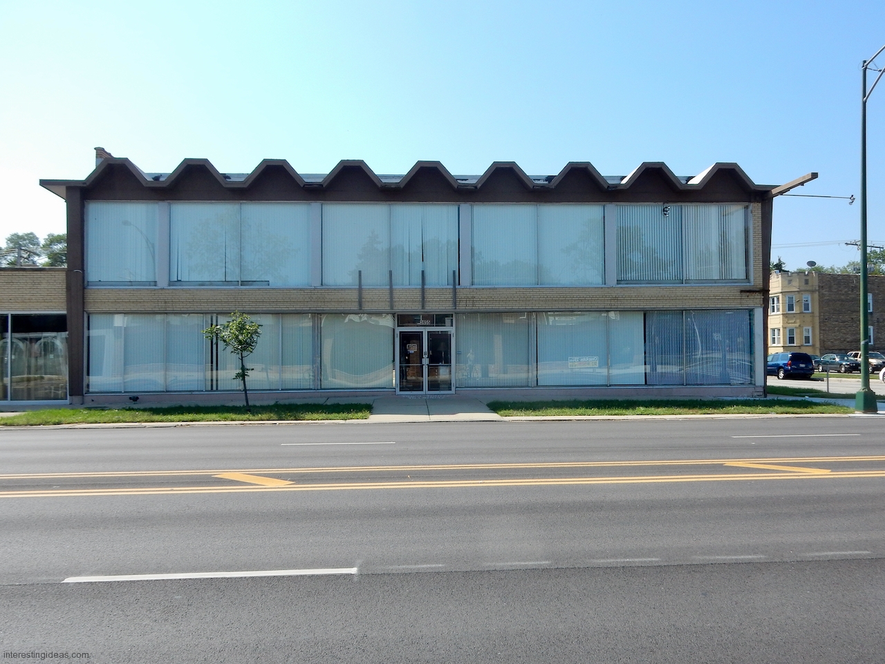 Peterson Avenue: A cynic might say it’s where Prairie style went to die, and I’d say, yes and an honorable death. The mid-century buildings on this commercial strip range from late moderne to proto-post modern, with lots of typical Mid Century Modern buildings in between, all showing a range of Prairie influences.