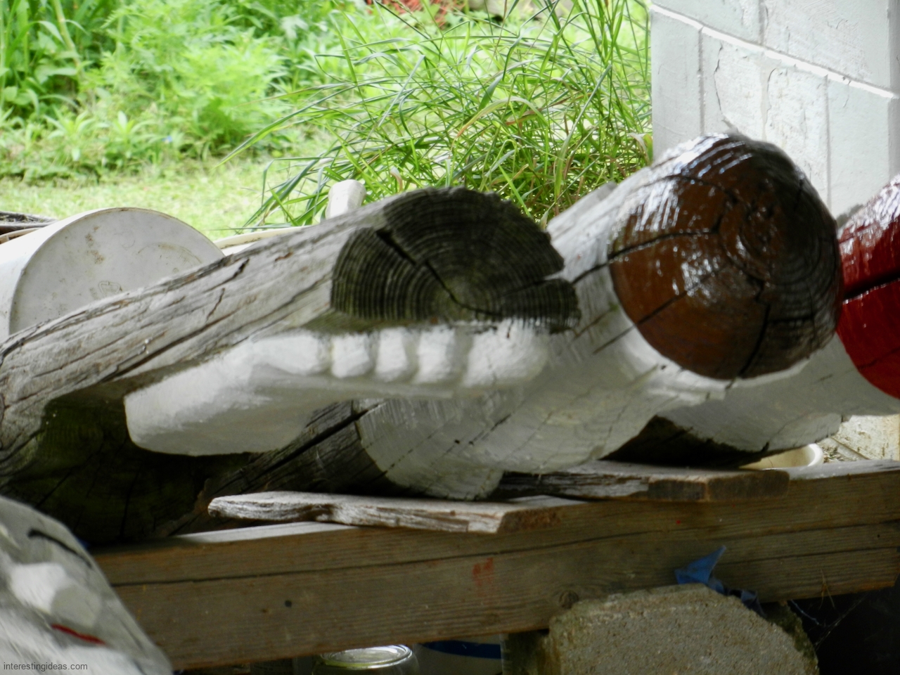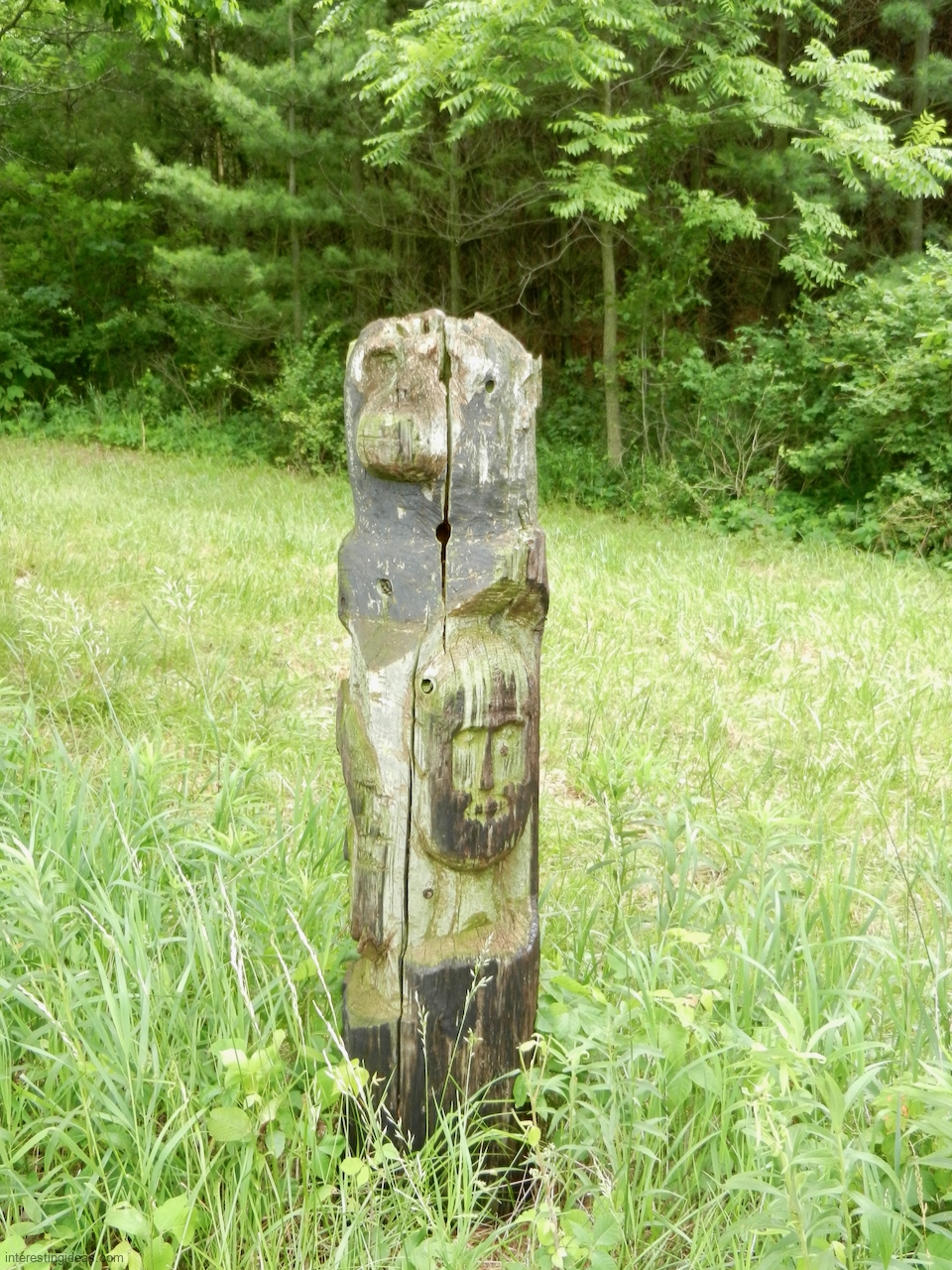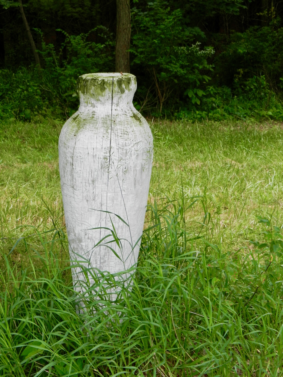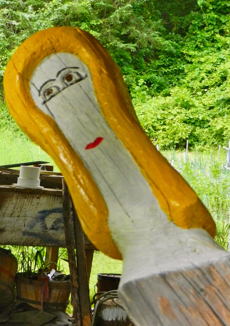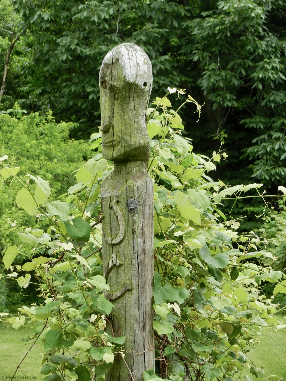 D Bill, who preferred an initial to his full name Darwin, mostly sold his work at the annual Sugar Creek Arts Festival in the nicely named Normal, Illinois. But he also used it to decorate his spread in Danvers, a few miles west. The poles were scattered around his house and workshop and lined the long driveway up to his rural property. Some were tipped with animals, some human faces, some prosaic objects like a key or a telephone.