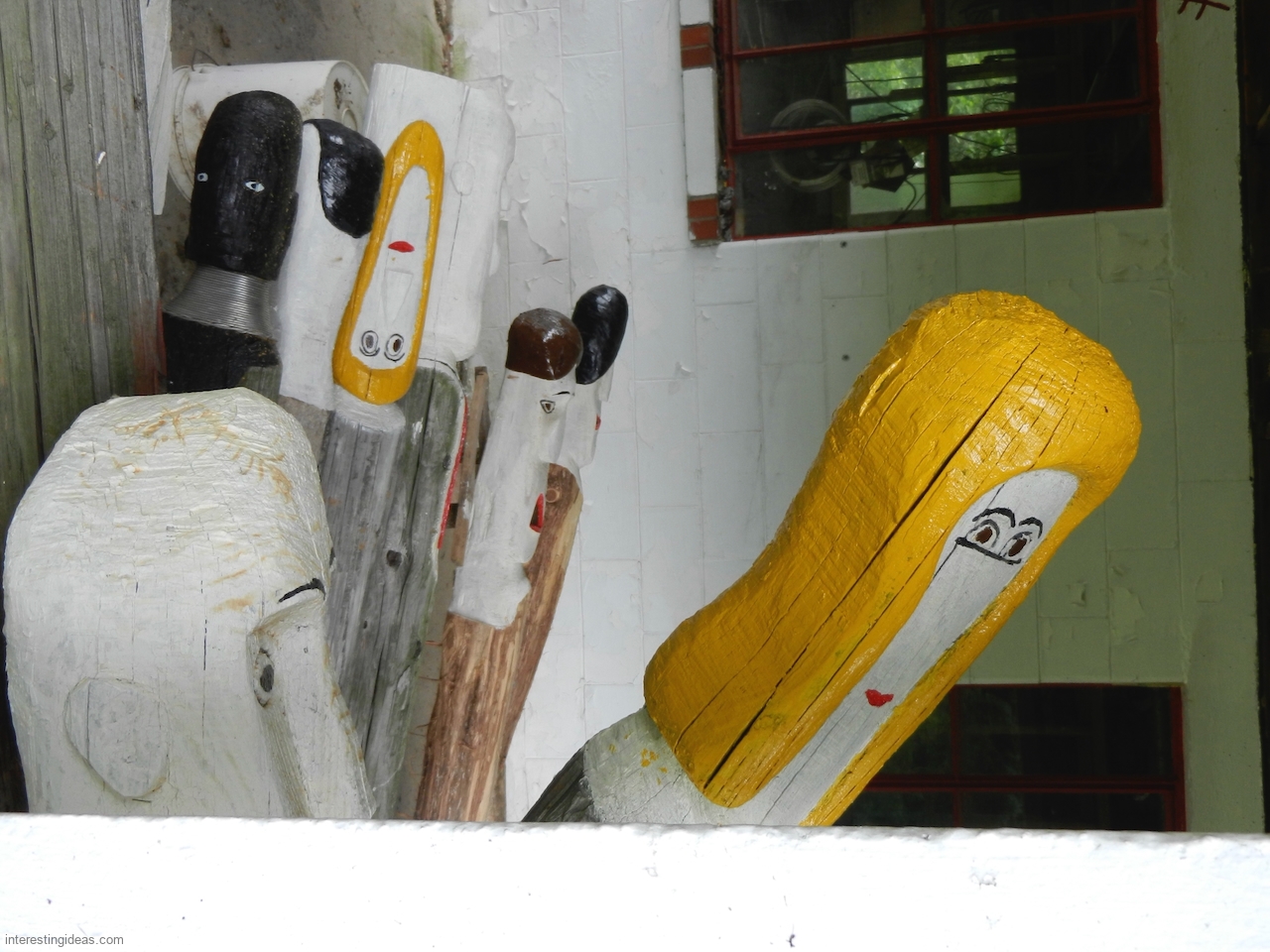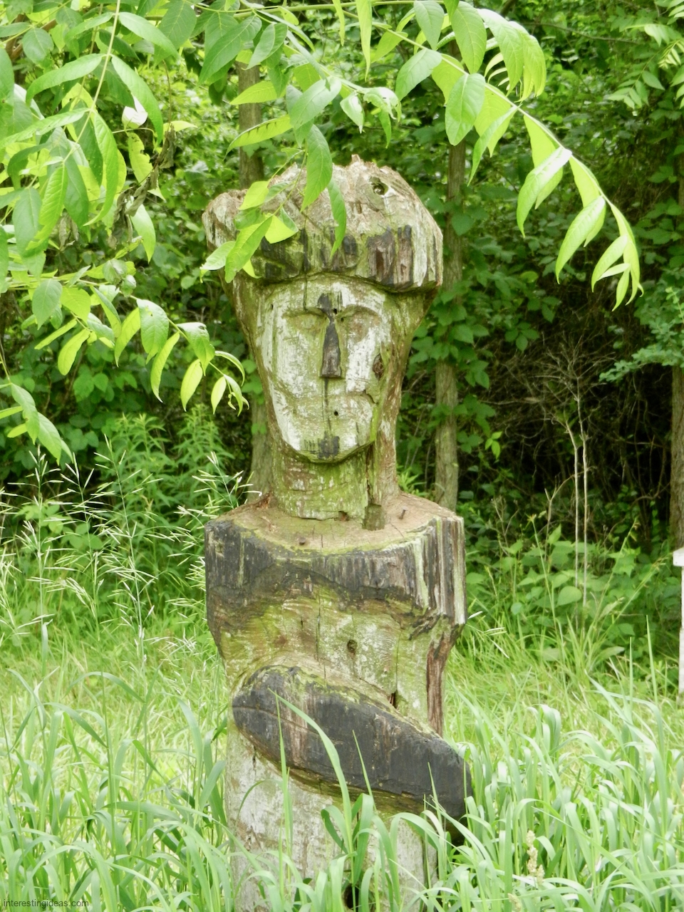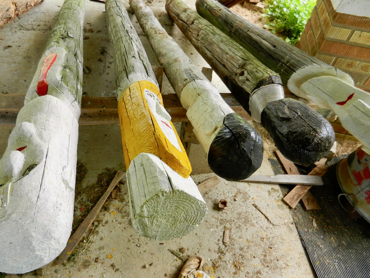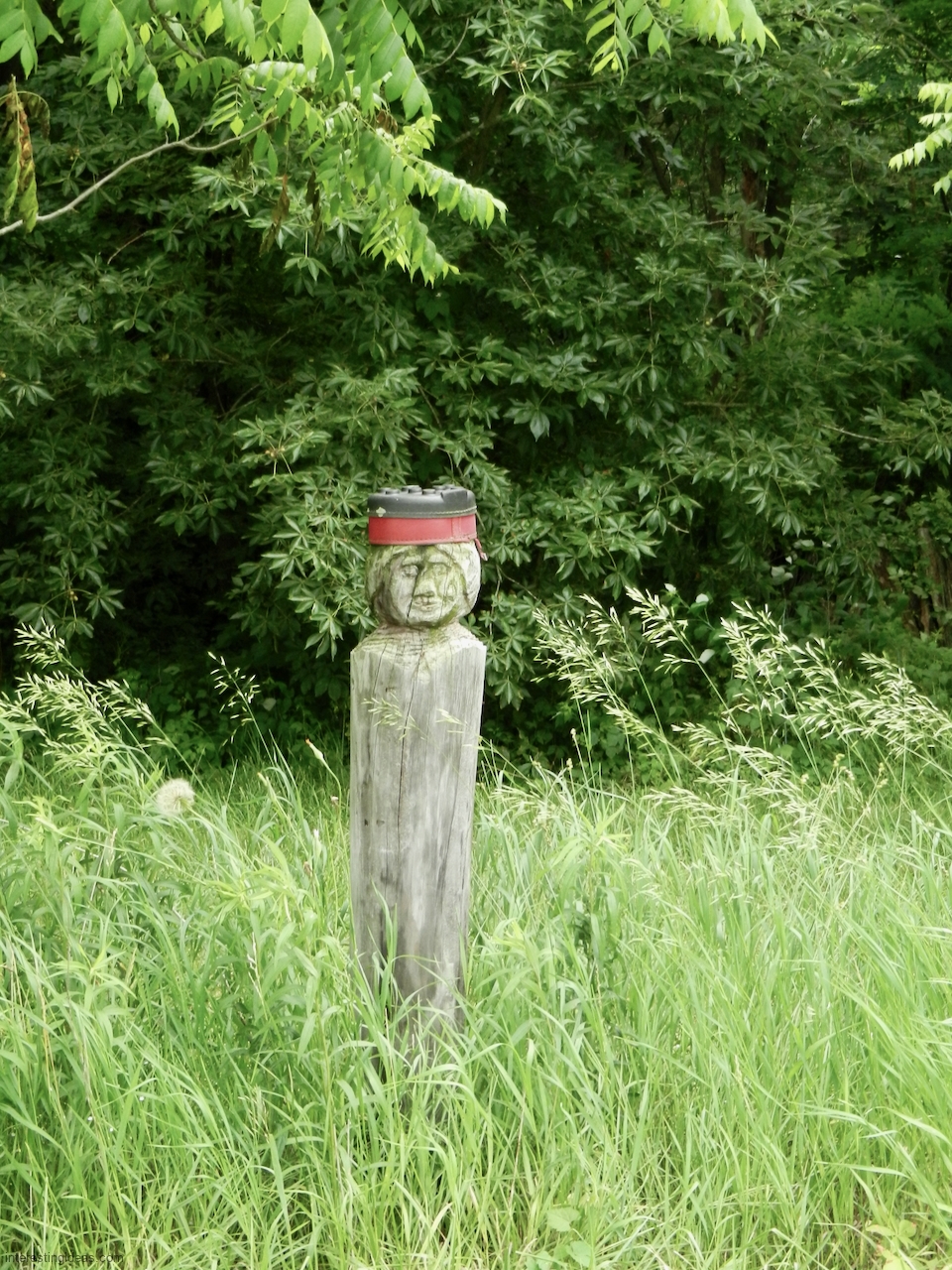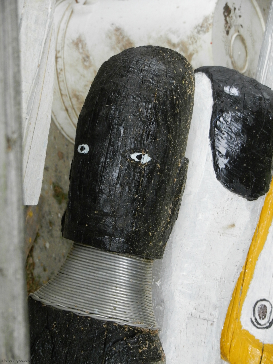 D Bill, who preferred an initial to his full name Darwin, mostly sold his work at the annual Sugar Creek Arts Festival in the nicely named Normal, Illinois. But he also used it to decorate his spread in Danvers, a few miles west. The poles were scattered around his house and workshop and lined the long driveway up to his rural property. Some were tipped with animals, some human faces, some prosaic objects like a key or a telephone.