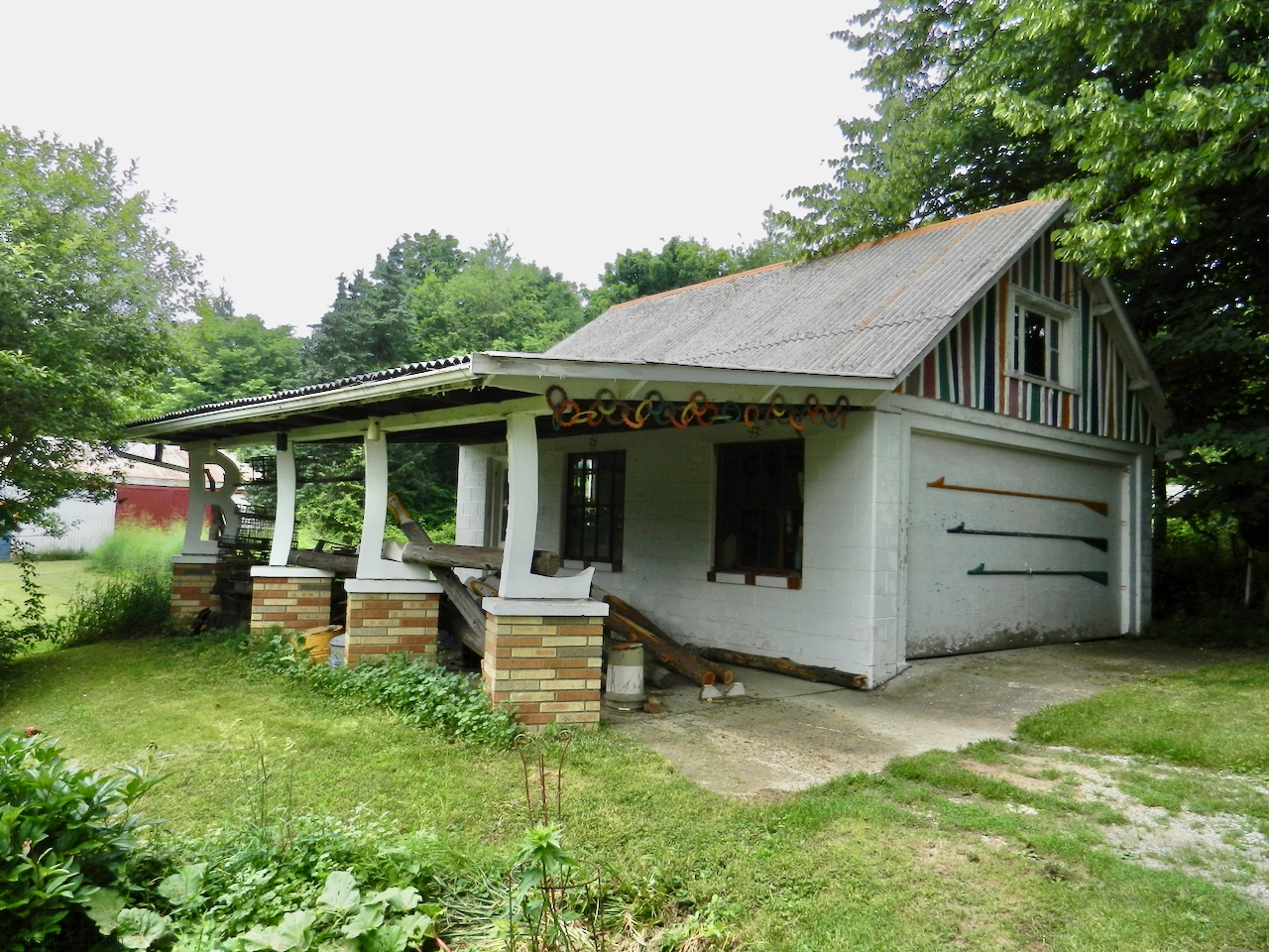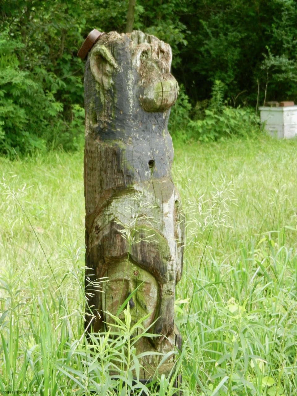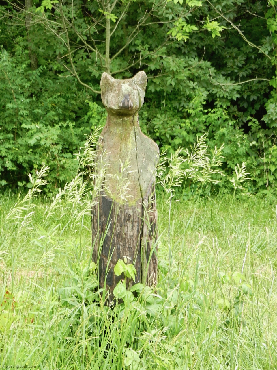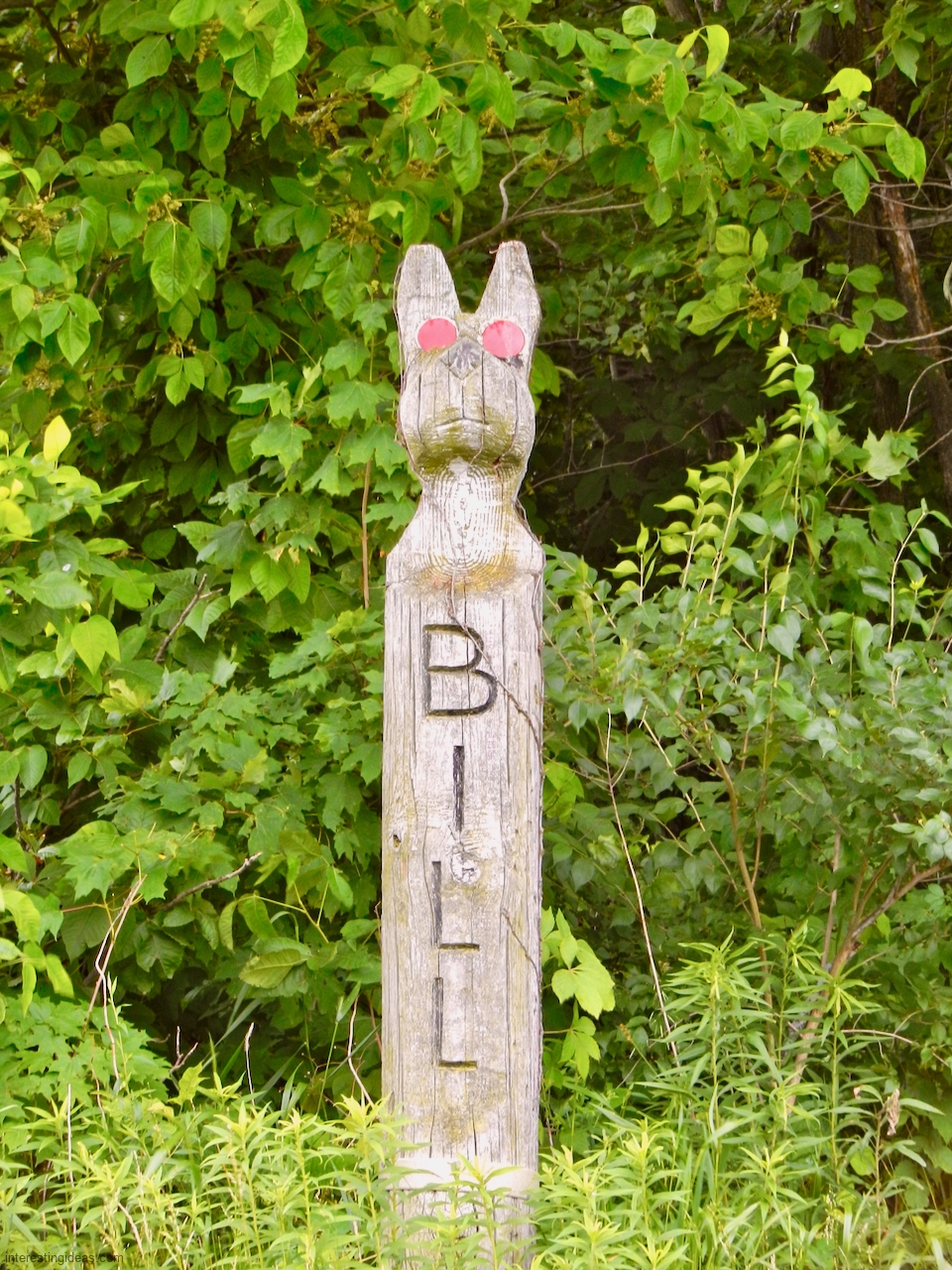 D Bill, who preferred an initial to his full name Darwin, mostly sold his work at the annual Sugar Creek Arts Festival in the nicely named Normal, Illinois. But he also used it to decorate his spread in Danvers, a few miles west. The poles were scattered around his house and workshop and lined the long driveway up to his rural property. Some were tipped with animals, some human faces, some prosaic objects like a key or a telephone.