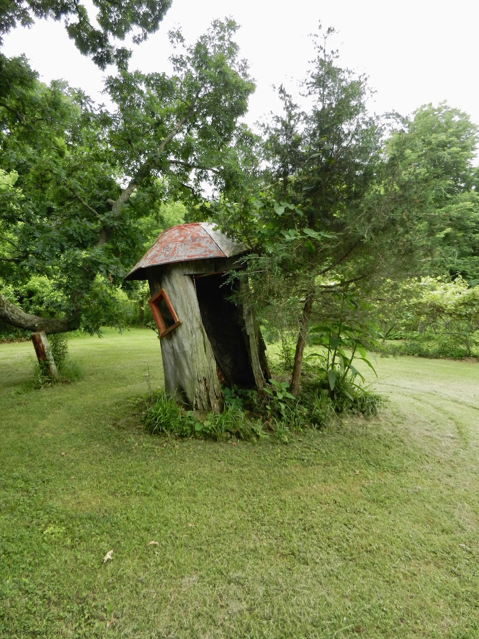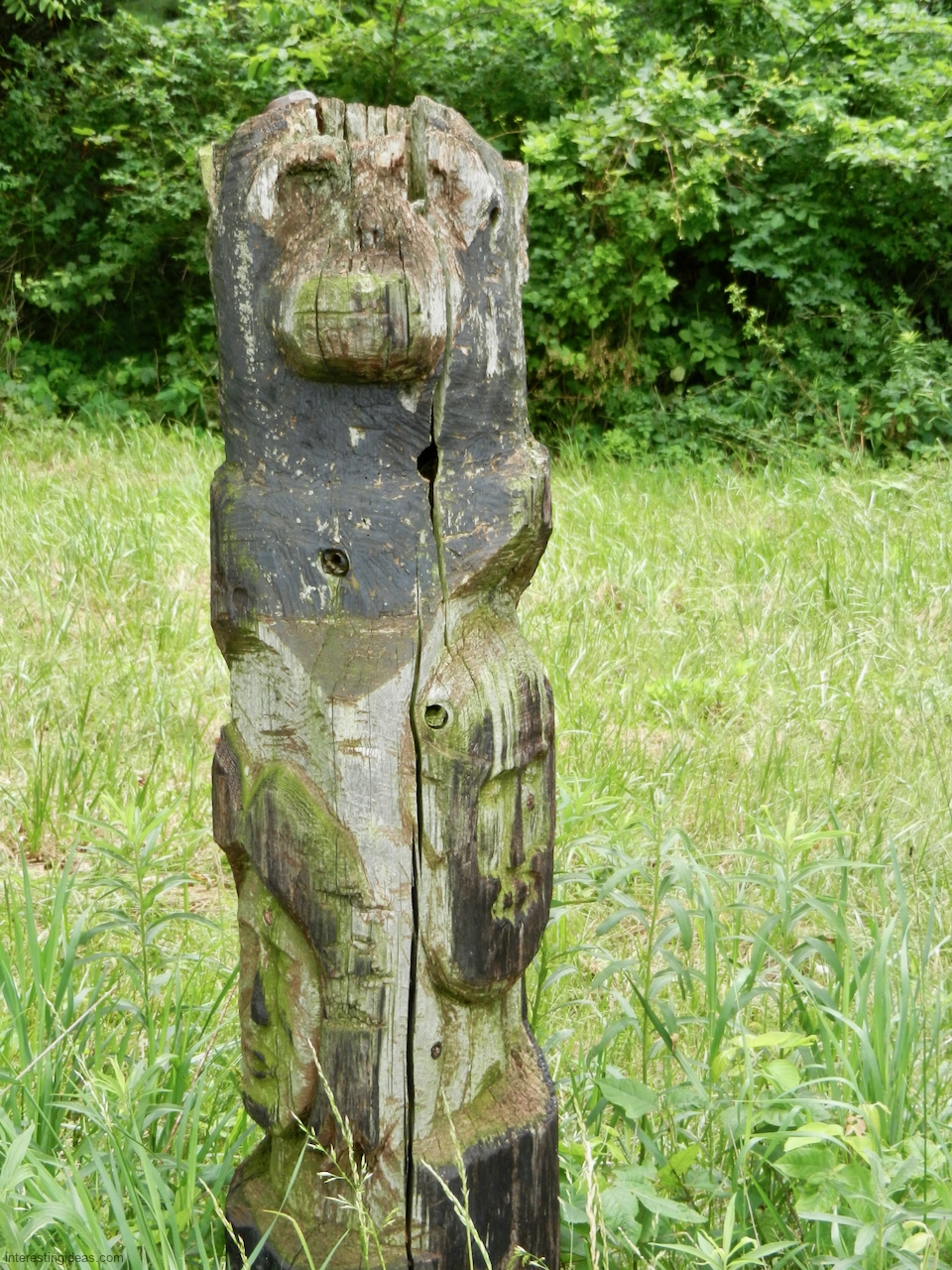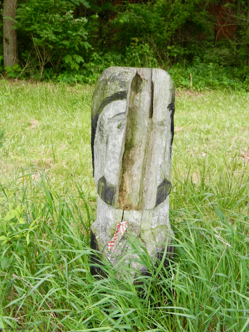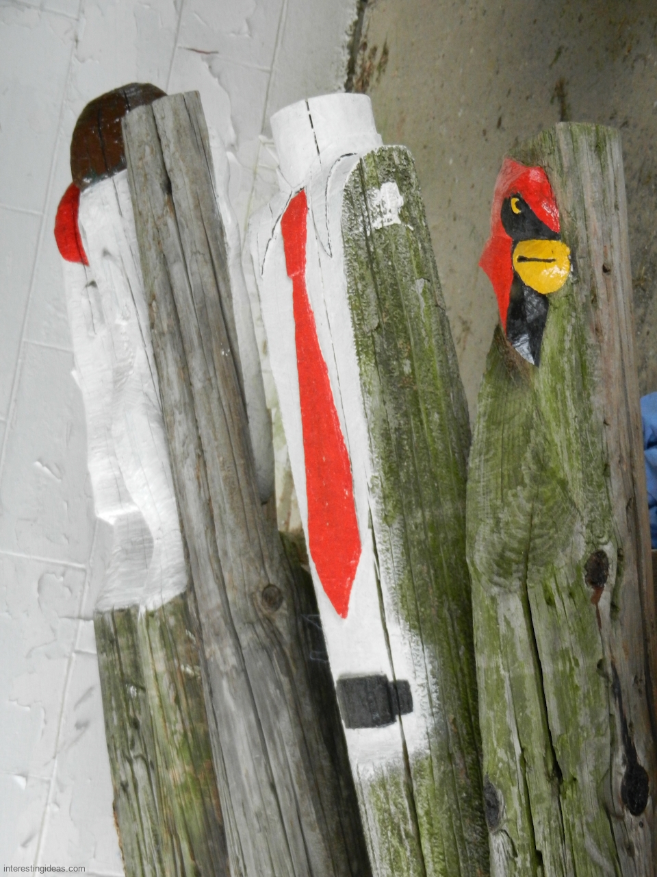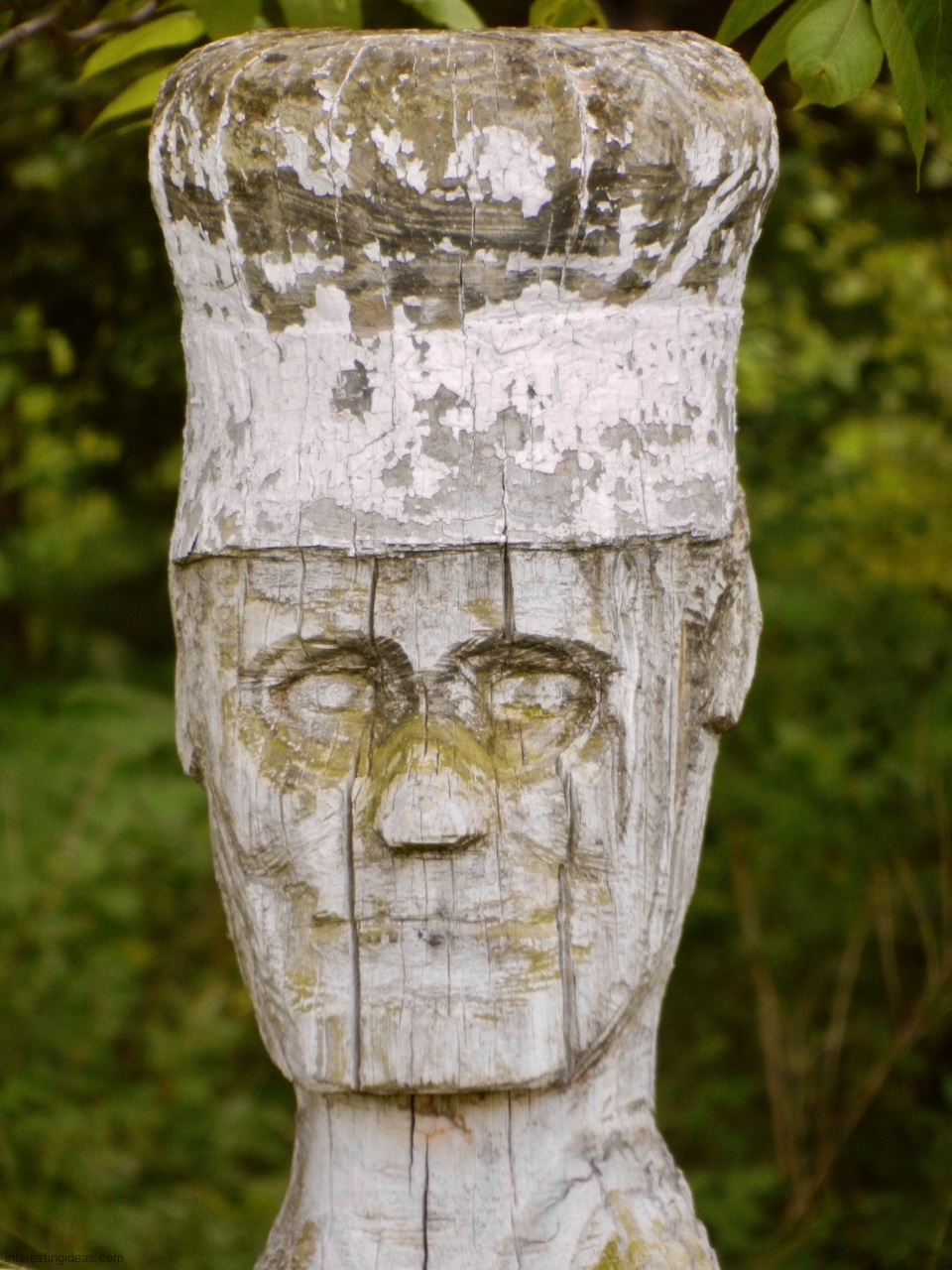 D Bill, who preferred an initial to his full name Darwin, mostly sold his work at the annual Sugar Creek Arts Festival in the nicely named Normal, Illinois. But he also used it to decorate his spread in Danvers, a few miles west. The poles were scattered around his house and workshop and lined the long driveway up to his rural property. Some were tipped with animals, some human faces, some prosaic objects like a key or a telephone.