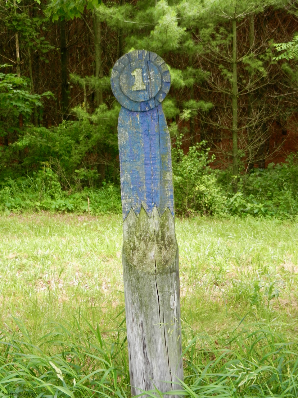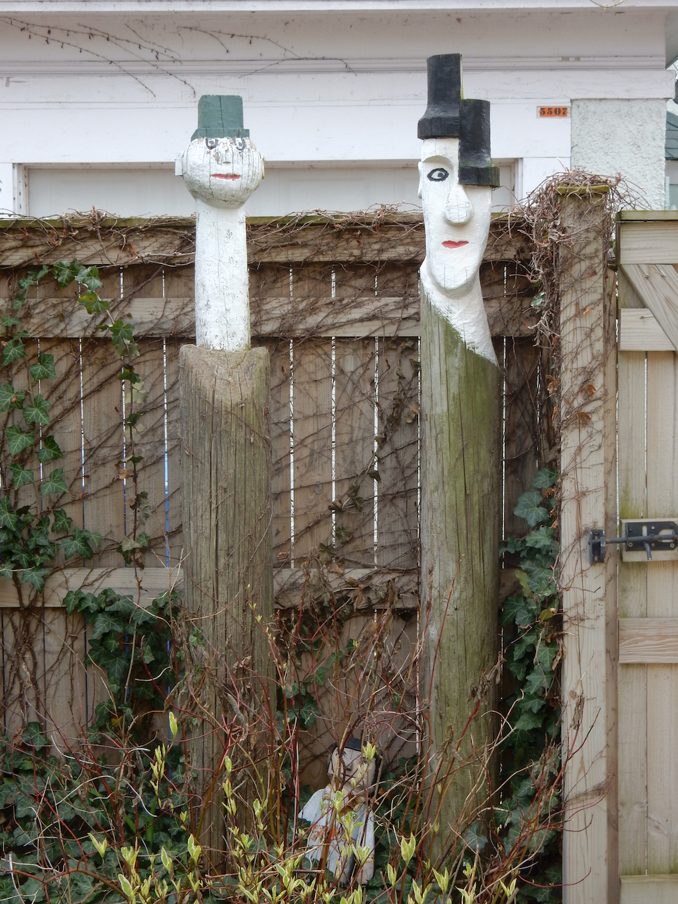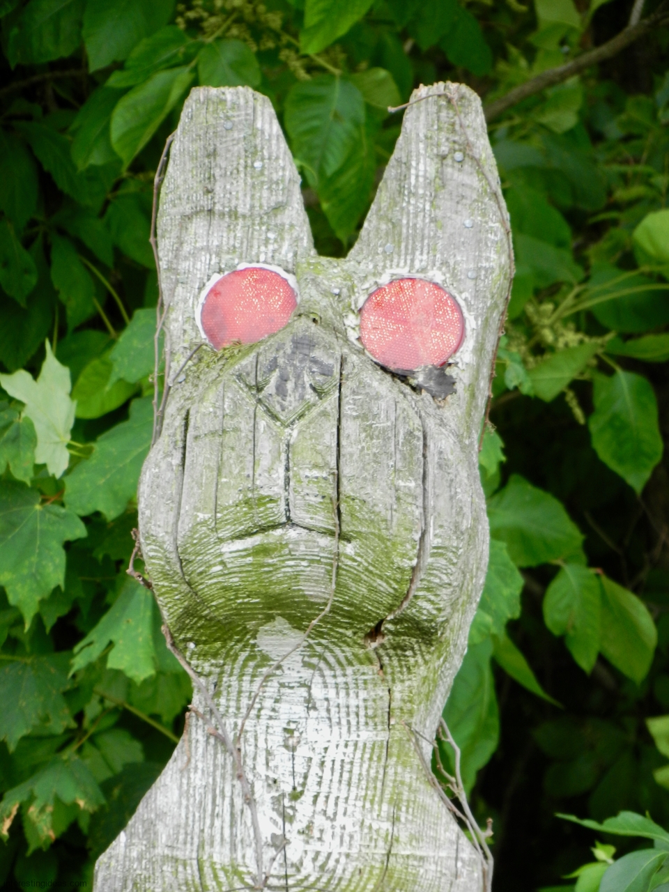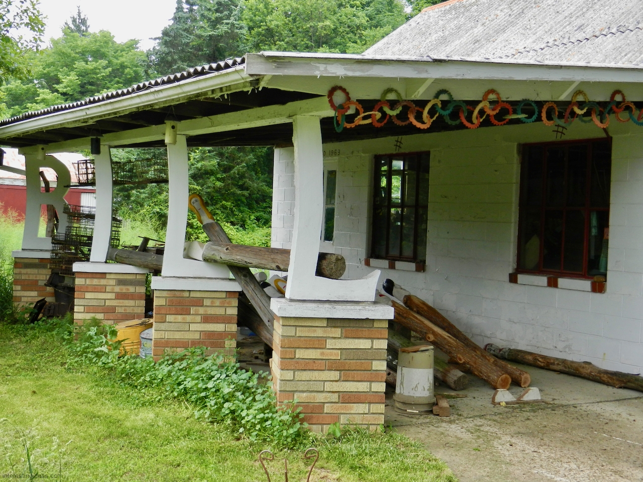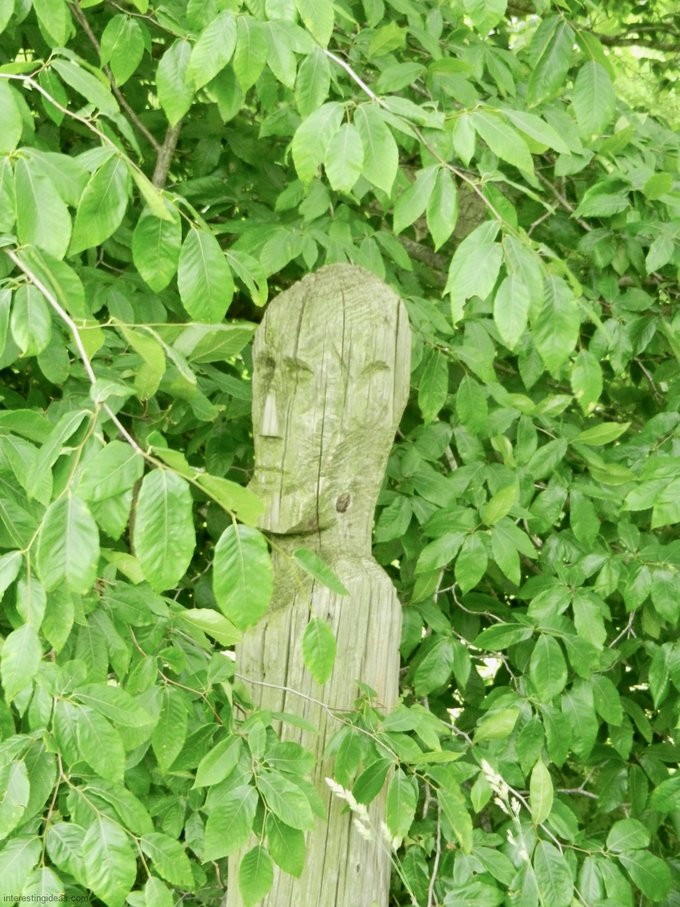D Bill, who preferred an initial to his full name Darwin, mostly sold his work at the annual Sugar Creek Arts Festival in the nicely named Normal, Illinois. But he also used it to decorate his spread in Danvers, a few miles west. The poles were scattered around his house and workshop and lined the long driveway up to his rural property. Some were tipped with animals, some human faces, some prosaic objects like a key or a telephone.