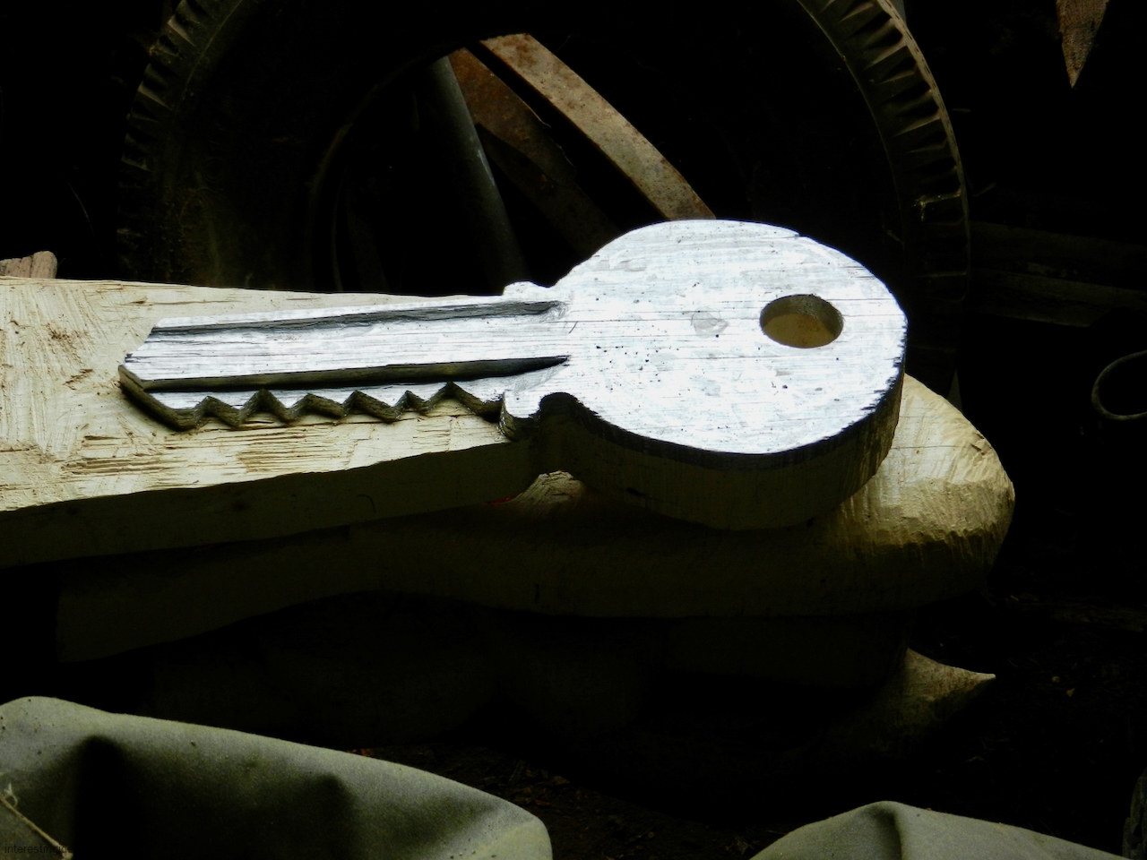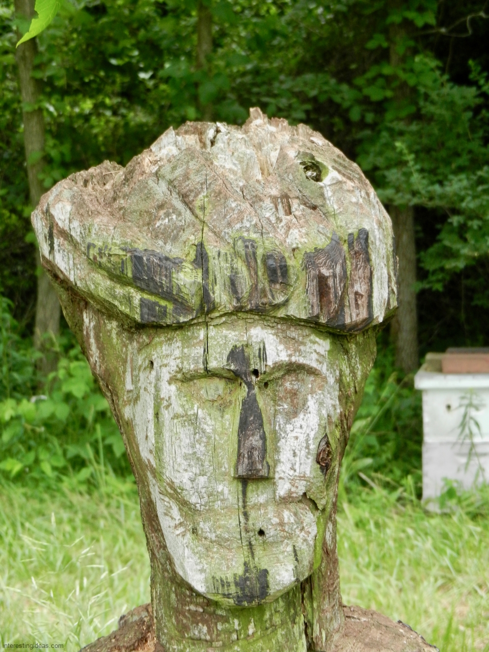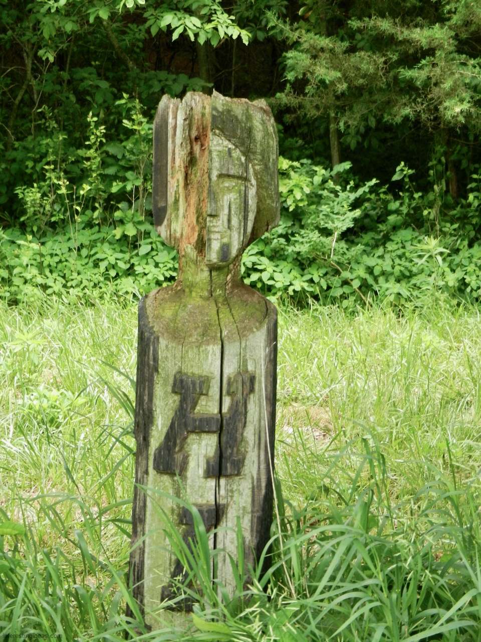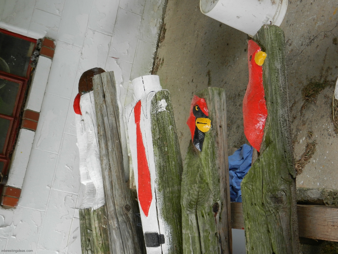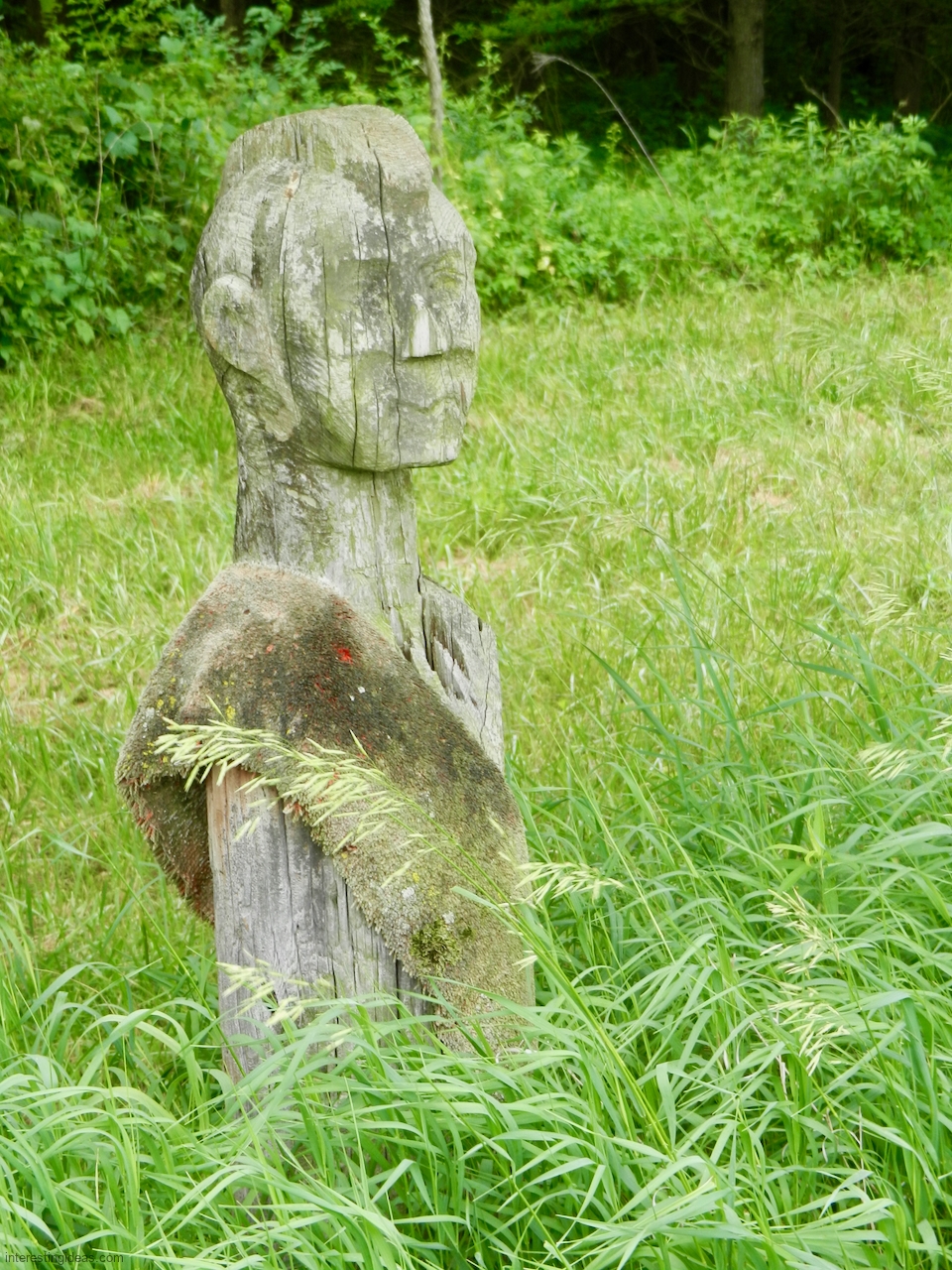 D Bill, who preferred an initial to his full name Darwin, mostly sold his work at the annual Sugar Creek Arts Festival in the nicely named Normal, Illinois. But he also used it to decorate his spread in Danvers, a few miles west. The poles were scattered around his house and workshop and lined the long driveway up to his rural property. Some were tipped with animals, some human faces, some prosaic objects like a key or a telephone.