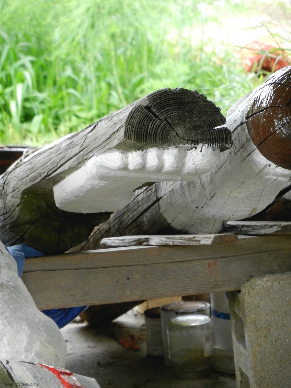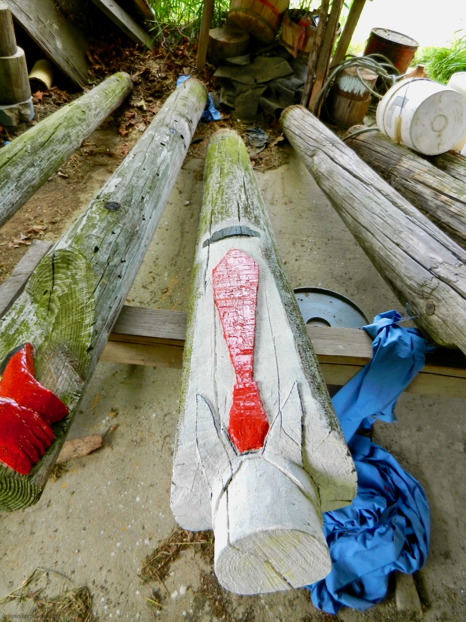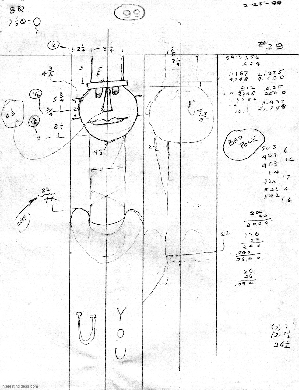 When D Bill, a retired toolmaker for Caterpillar Tractor, began carving utility poles, it must have seemed natural to him to create detailed engineering drawings for each design. The carvings are whimsical and imaginative, the drawings, technical, detailed and to scale.