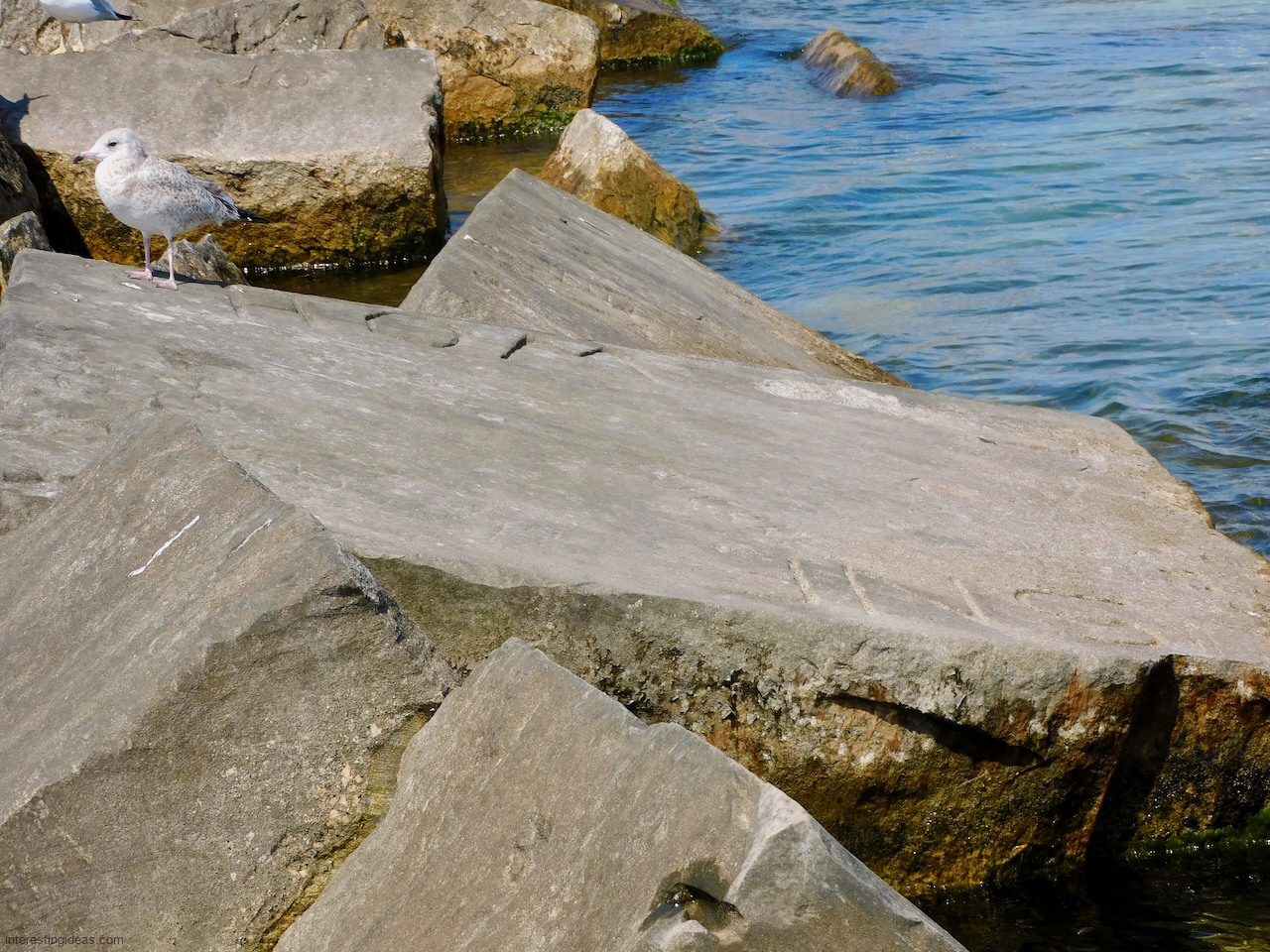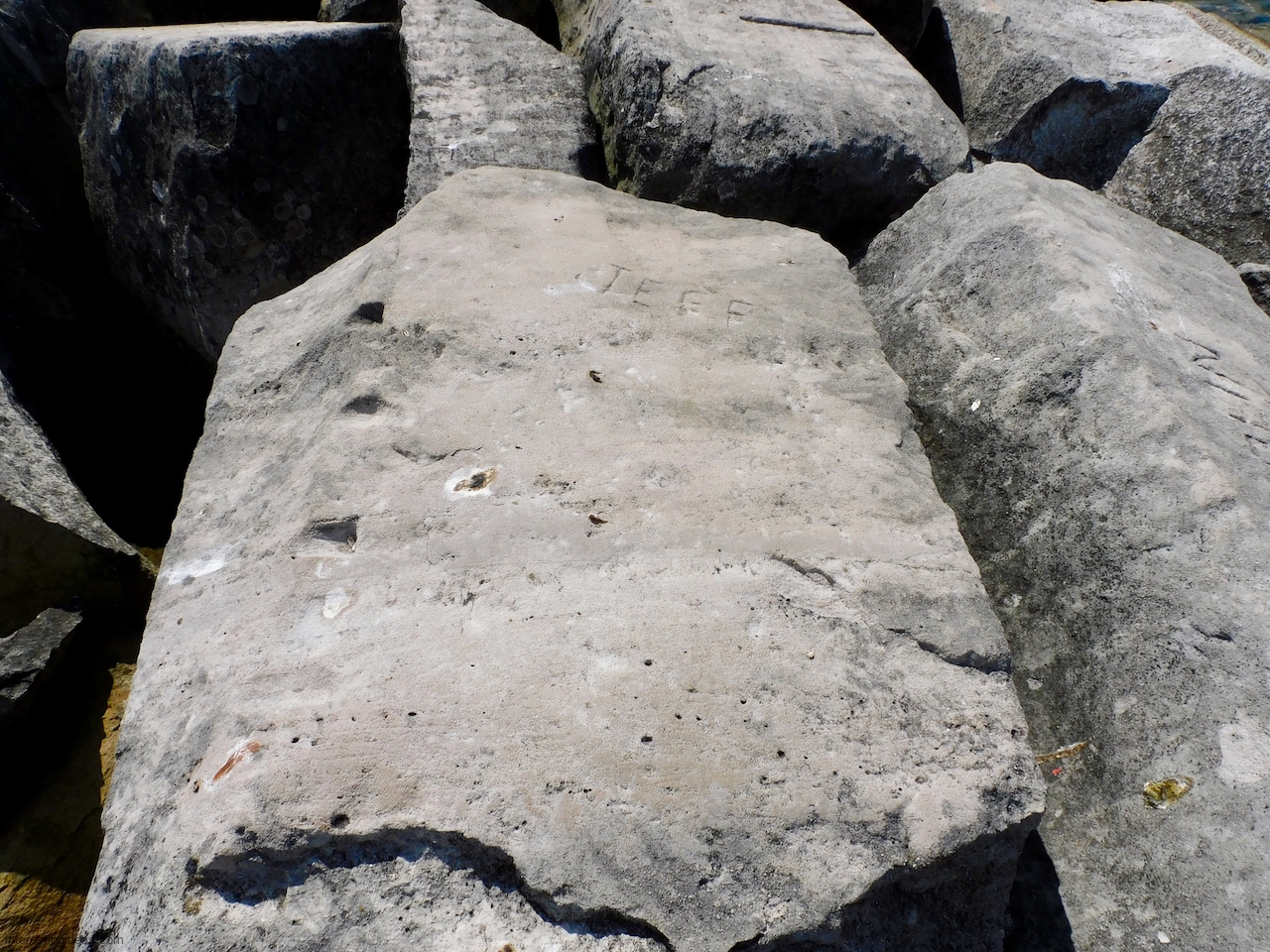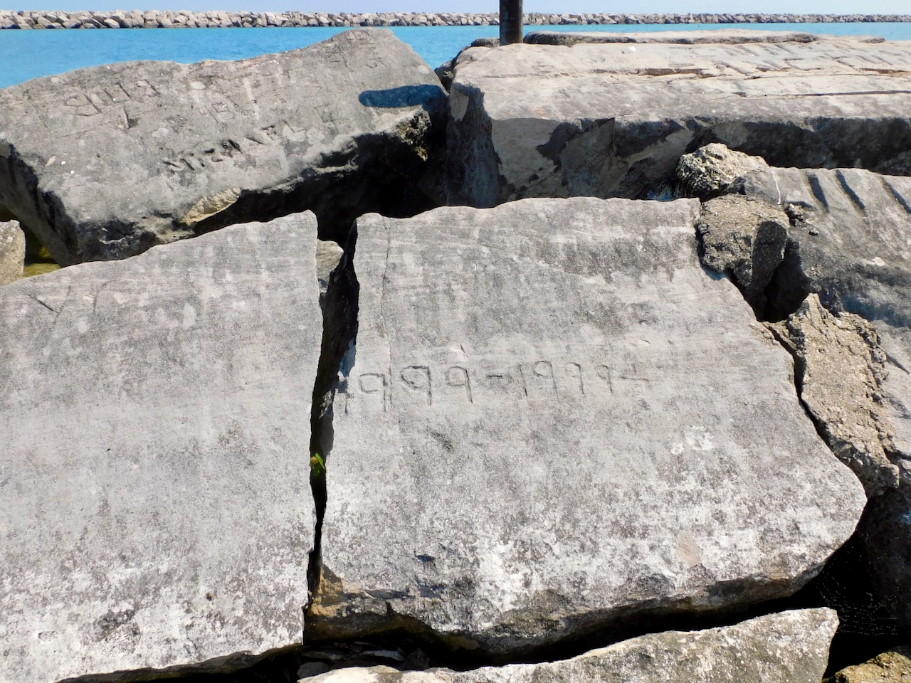 The revetment and jetty at the south end of Rainbow Beach and adjacent to the northeast corner of the Sawyer Water Plant host more than 700 rock carvings, many made by lifeguards in the 1950s and 60s. These carvings represent a rich record of summer life at the beach as well as including a number of significant individual works of art. It’s also the location with the largest number of identifiable carvers.