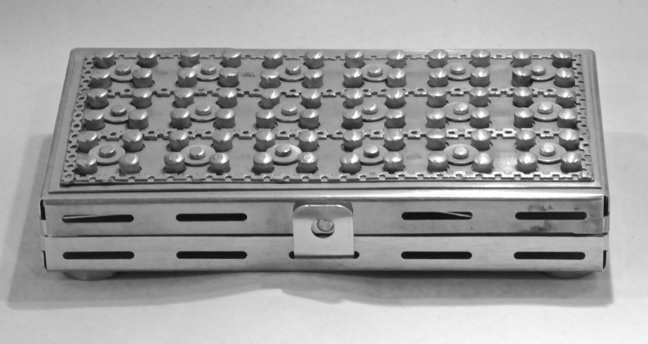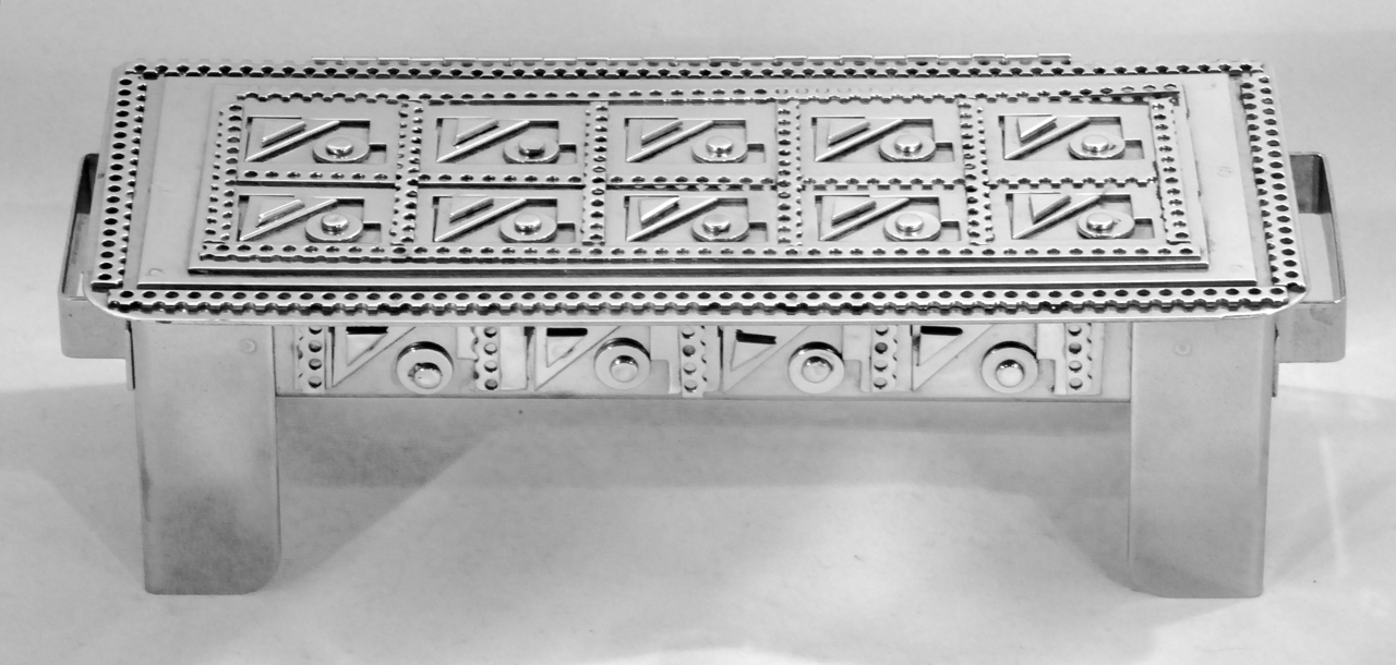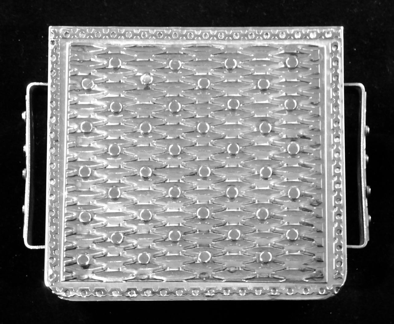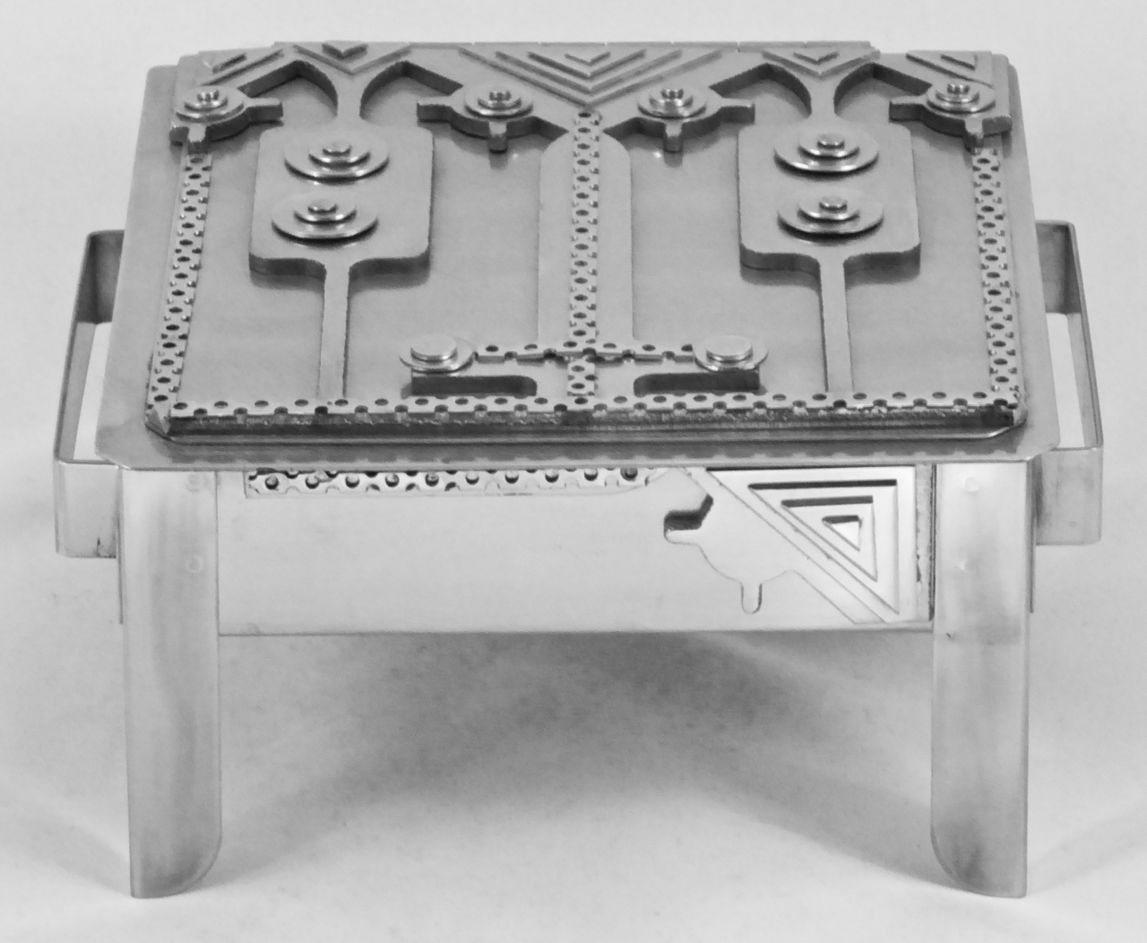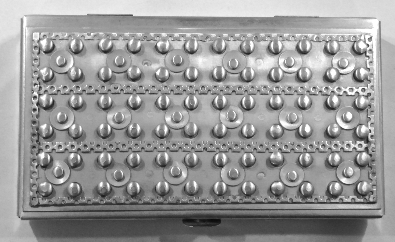 Stanley Szwarc (1928-2011) was a prolific artist, and boxes were his most frequent creation. There are thousands of these floating around the Chicago area, ranging from tiny ones barely a couple of inches wide to bruisers that could take up the corner of a desk. In his basement were closets and trunks filled with layers of boxes stacked up and divided by sheets of cardboard. “No two alike,” he would always say. As with all his work, the ornamentation is brilliantly creative.