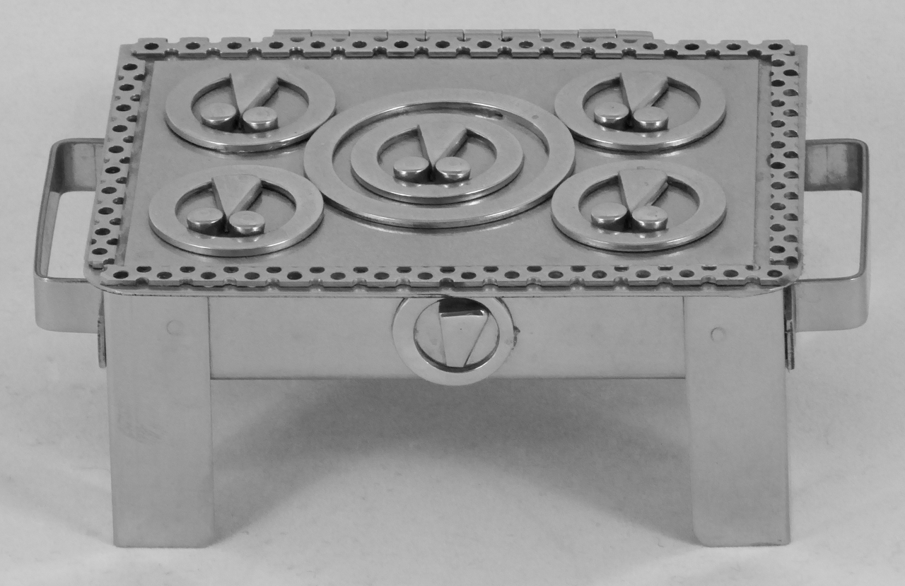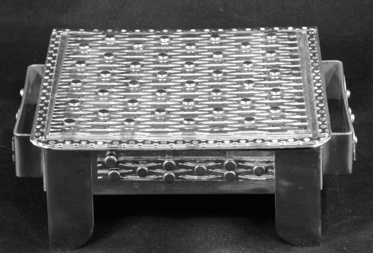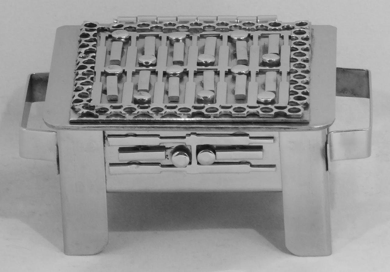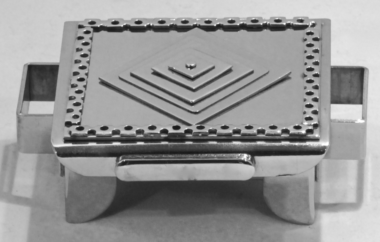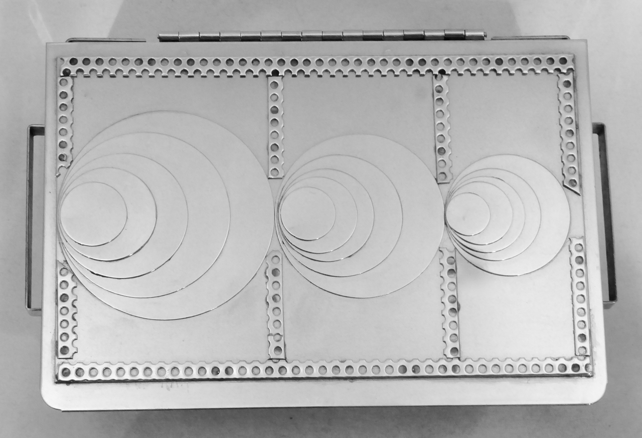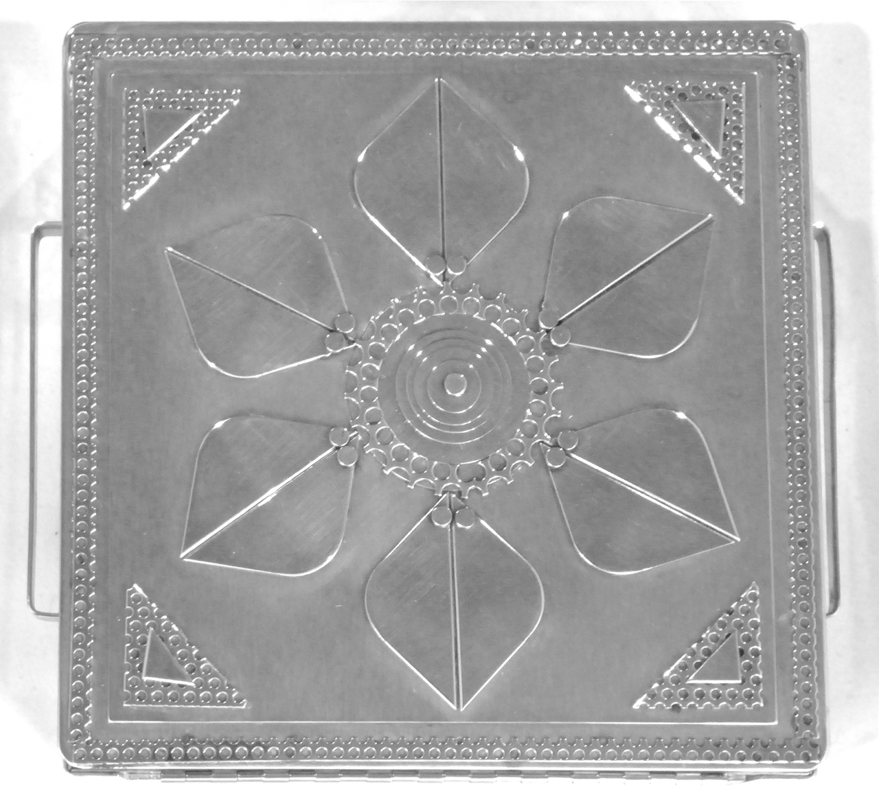 Stanley Szwarc (1928-2011) was a prolific artist, and boxes were his most frequent creation. There are thousands of these floating around the Chicago area, ranging from tiny ones barely a couple of inches wide to bruisers that could take up the corner of a desk. In his basement were closets and trunks filled with layers of boxes stacked up and divided by sheets of cardboard. “No two alike,” he would always say. As with all his work, the ornamentation is brilliantly creative.