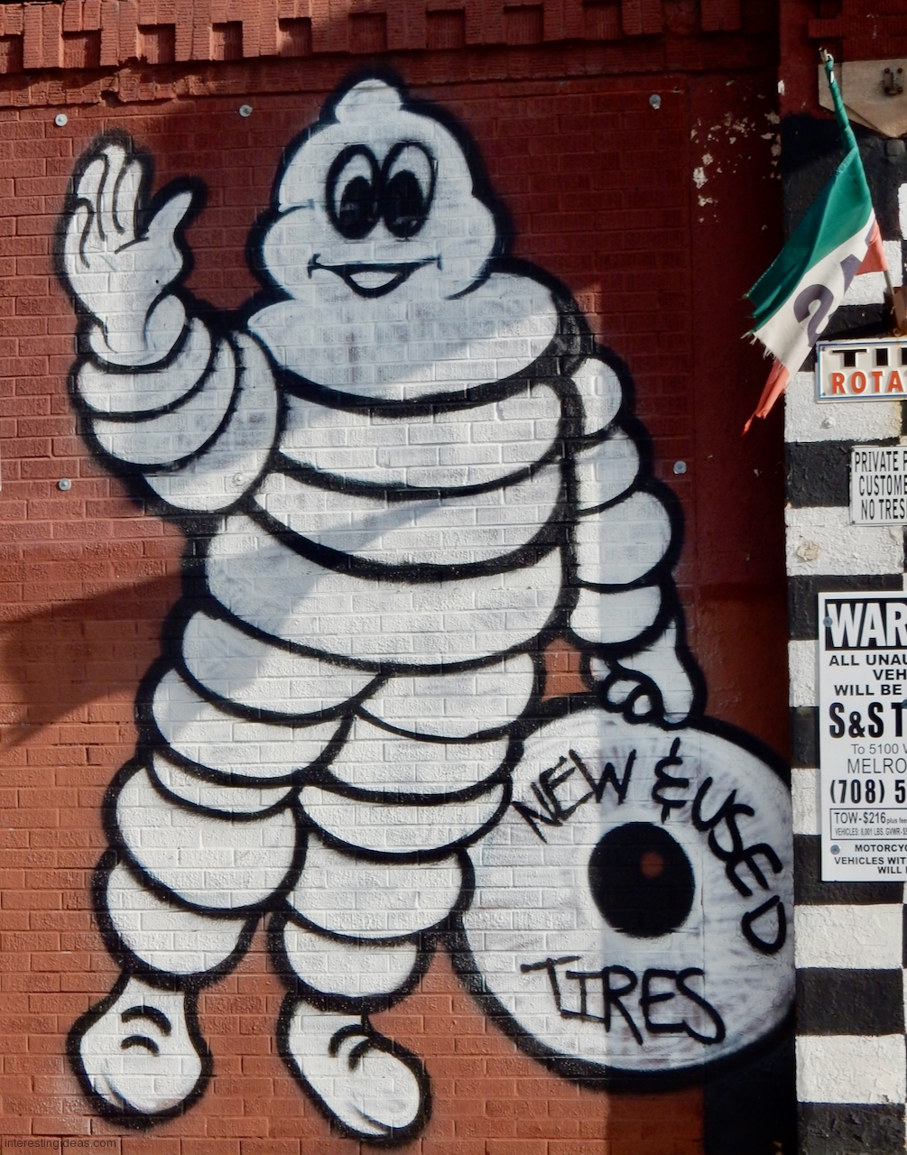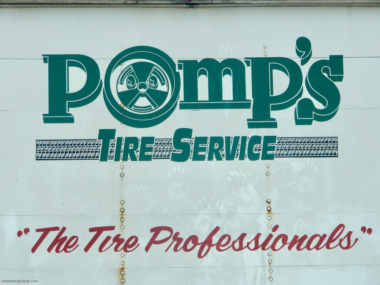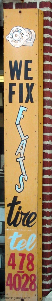 Like mufflers, tires have a special place in the universe of automotive signage. Painted tire art can be found in many locations, and actual tires, like actual mufflers, can serve very effectively to advertise a service. Personally, I love the simple tire-on-a-stick, though there is still much to like in every artist’s painted rendition of this ubiquitous form.