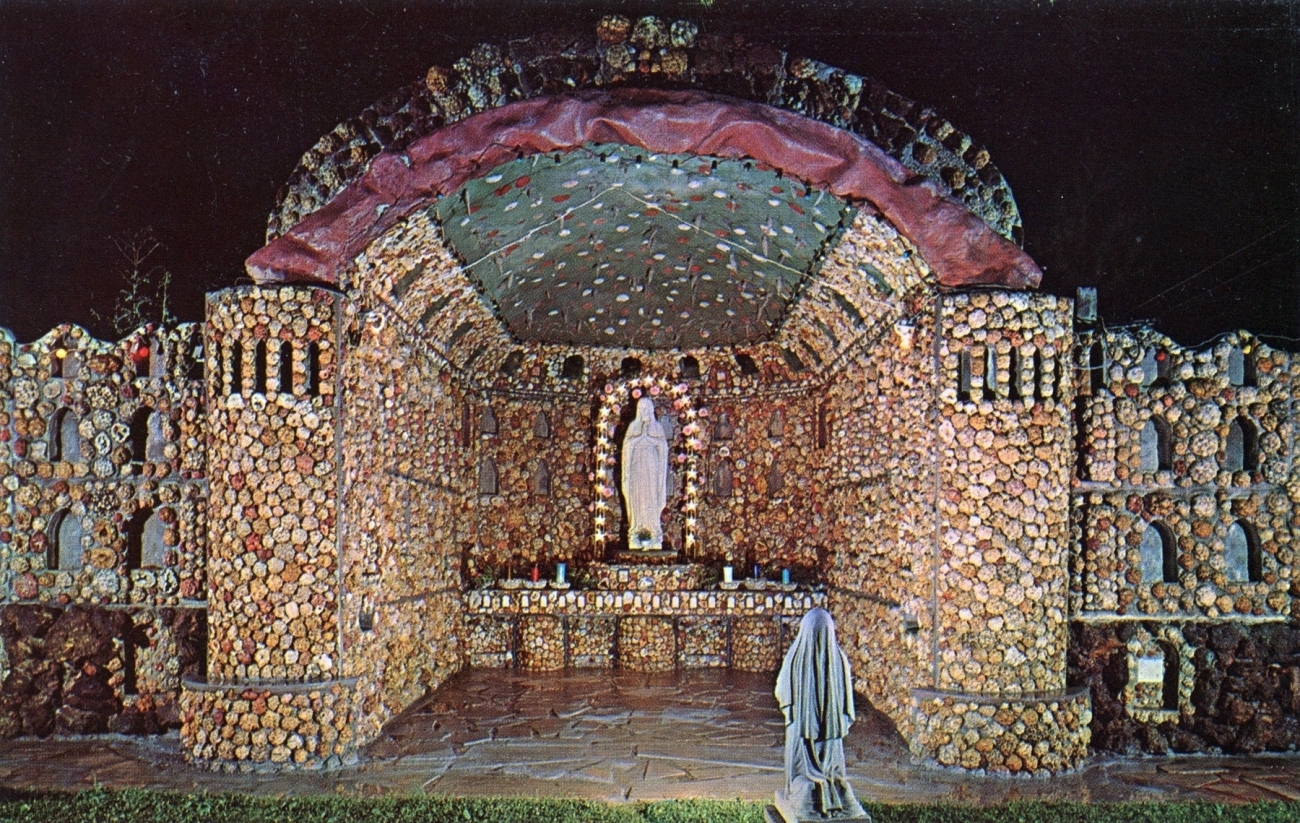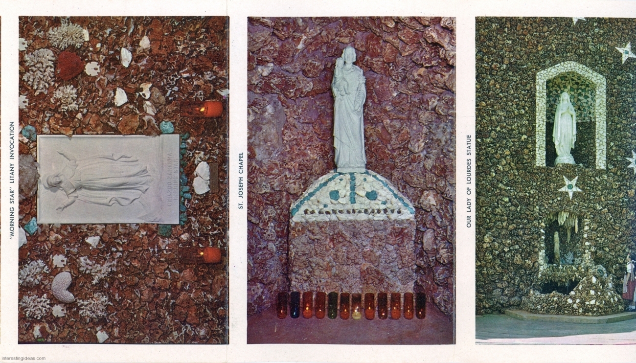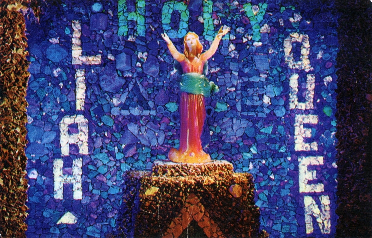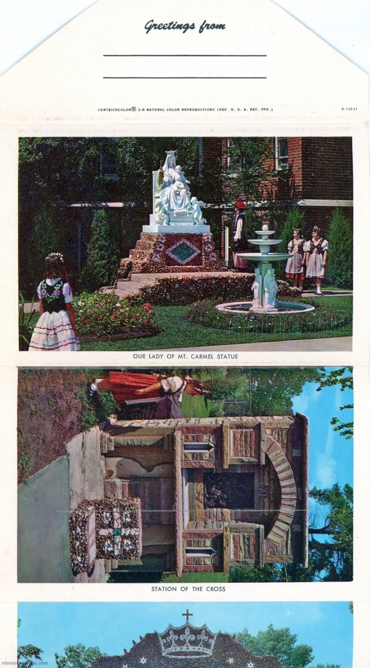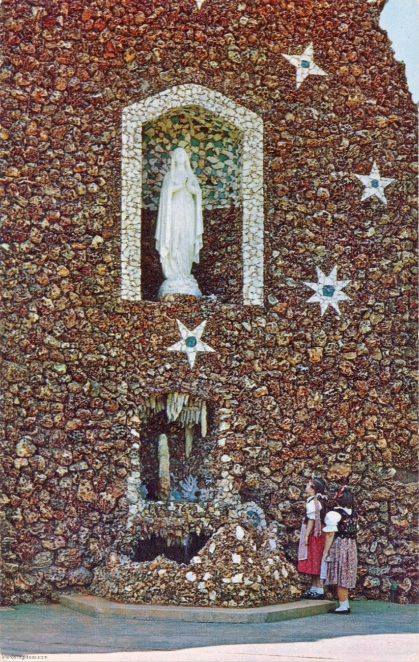 My friend Keith Sadler has amassed a substantial collection of vintage postcards promoting roadside art environments, grottos, rock gardens, attractions and oddities of all kinds. They include antique rarities, like the many Palais Idéal cards, lots of Real Postcard-style images, and a few relatively modern color cards.