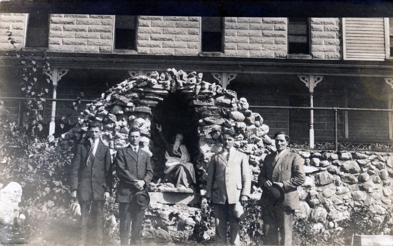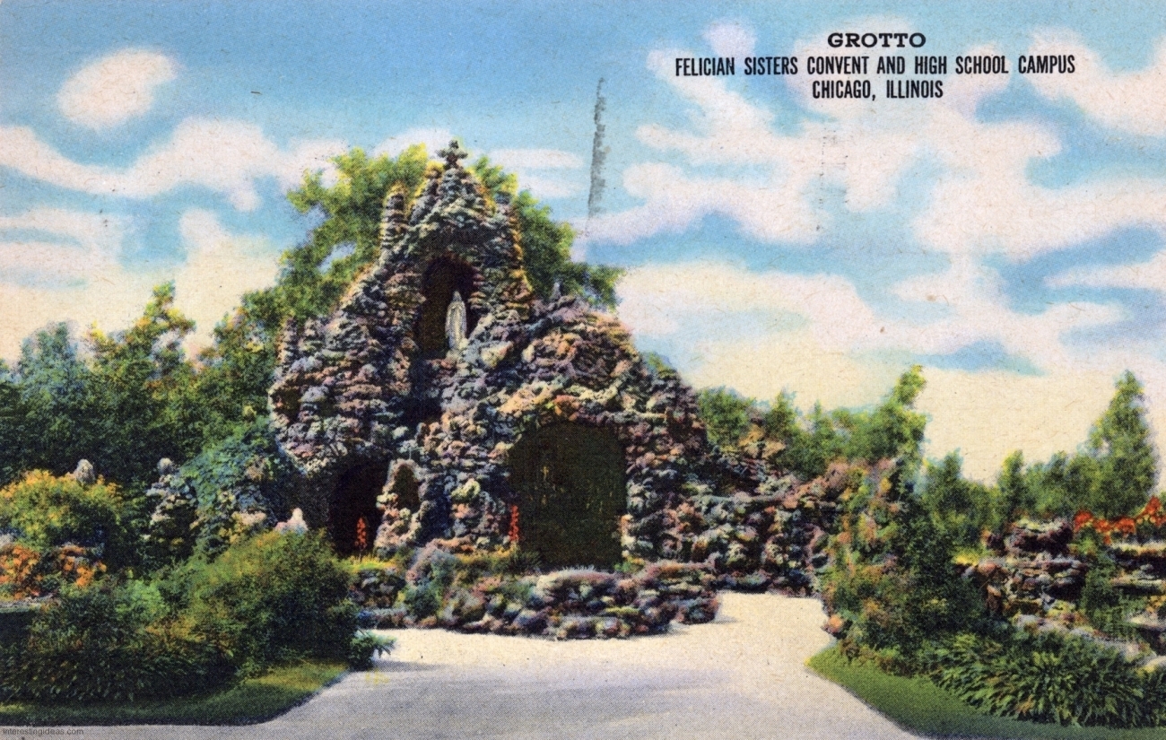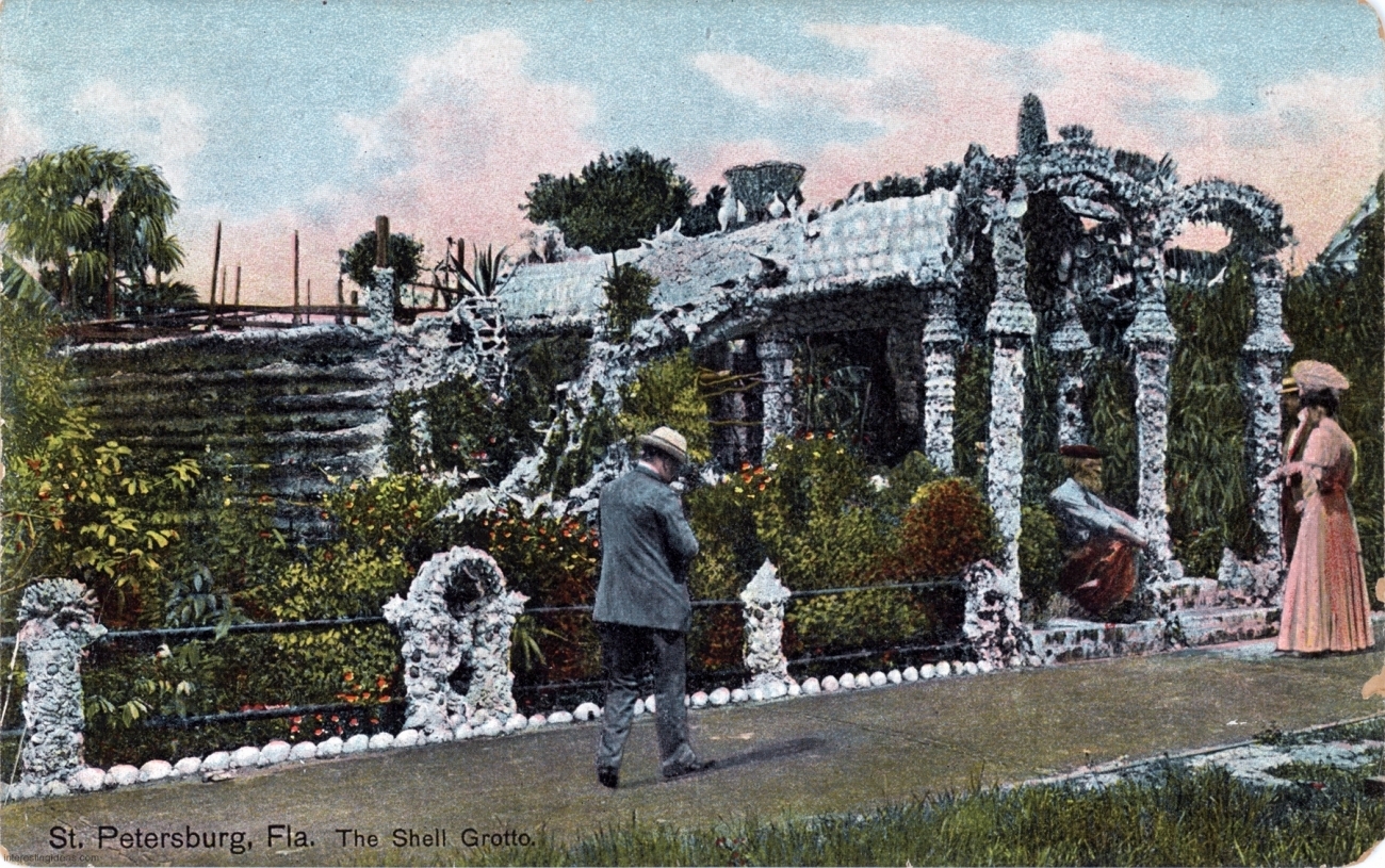 This page presents a digitized library of these postcards, as well as some related snapshots and brochures. There’s also a bonus gallery of postcards showing the Asylum for Feeble-Minded Children in Lincoln, Illinois, the one-time residence of Henry Darger. Plus my own collection of vintage images of Miami’s magnificent Bottle Cap Inn environment.