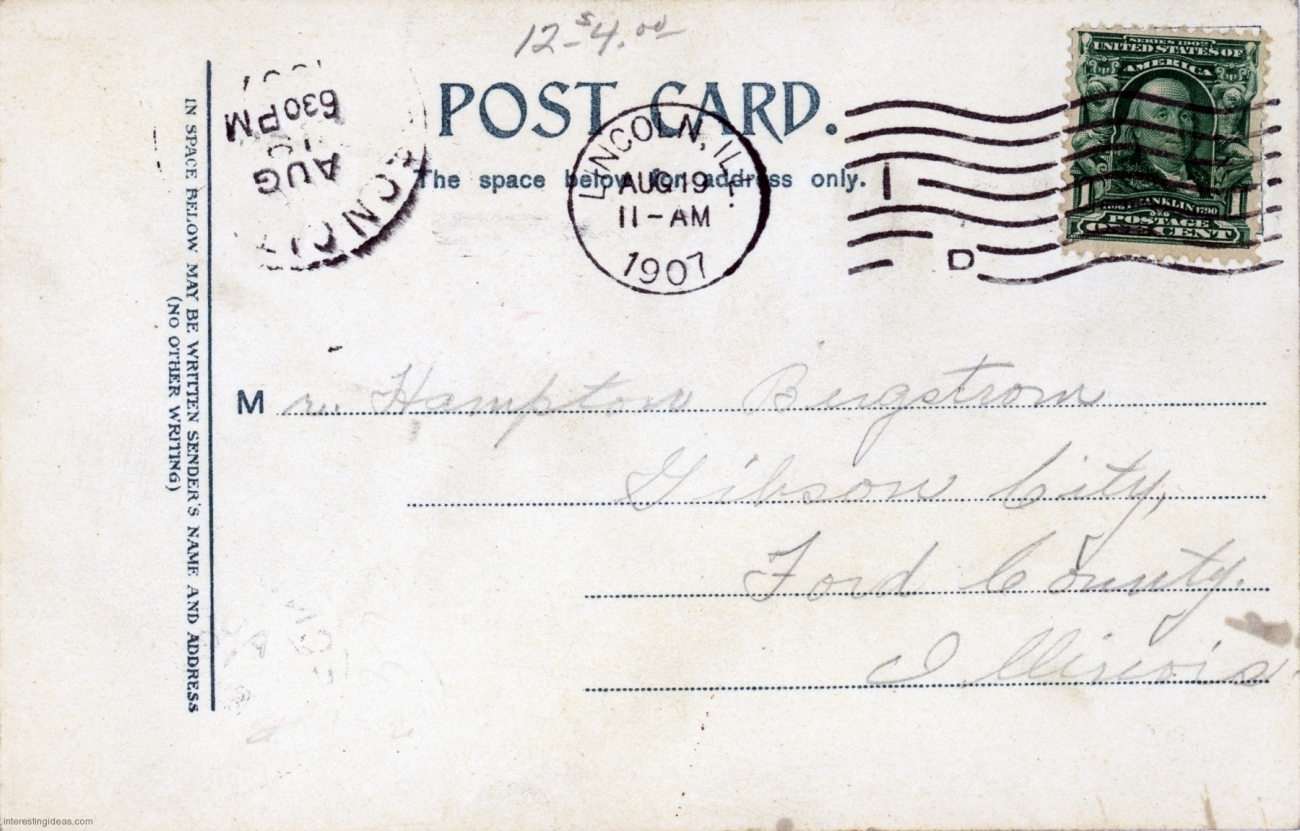 The galleries include the backs of cards when they contain even modestly relevant information. Many just reference the weather and travel plans. But some are more interesting, like the one referring to the “bum” responsible for a mud sculpture of the crucifixion, and many are useful in dating the postcard.