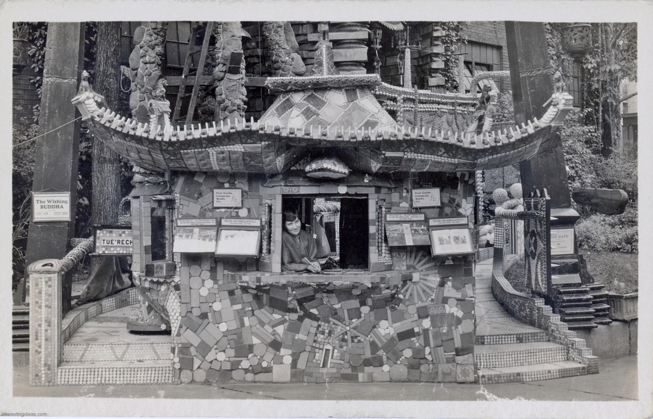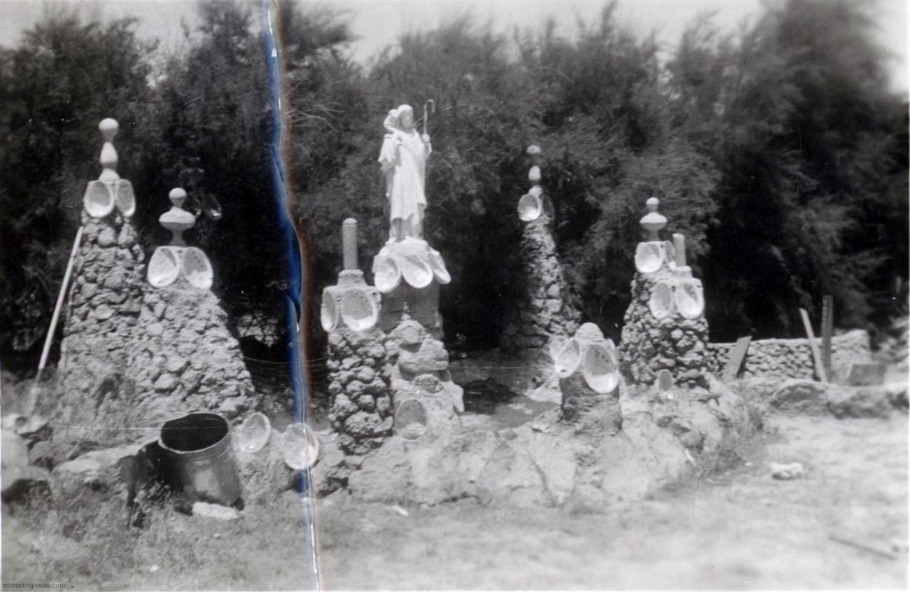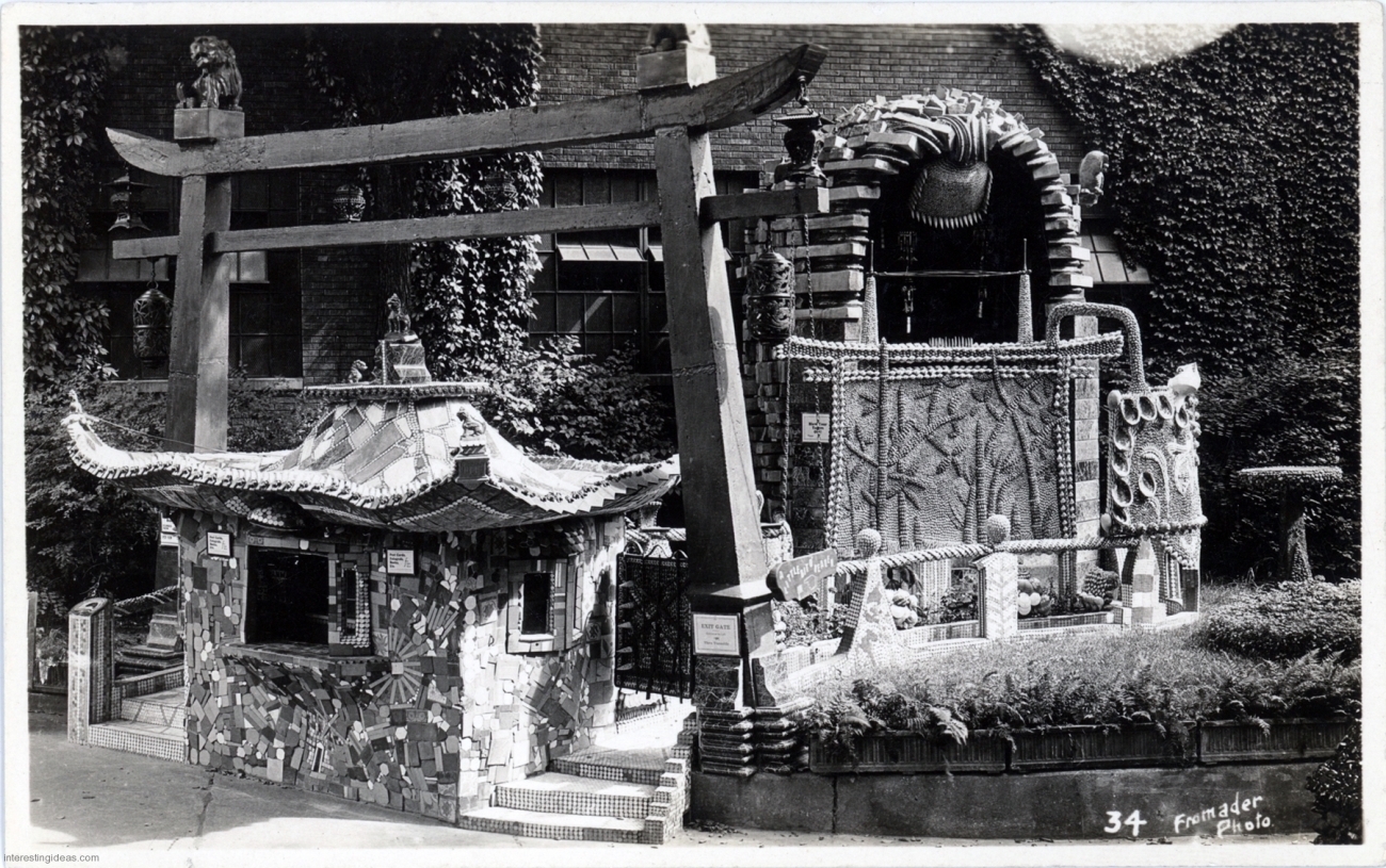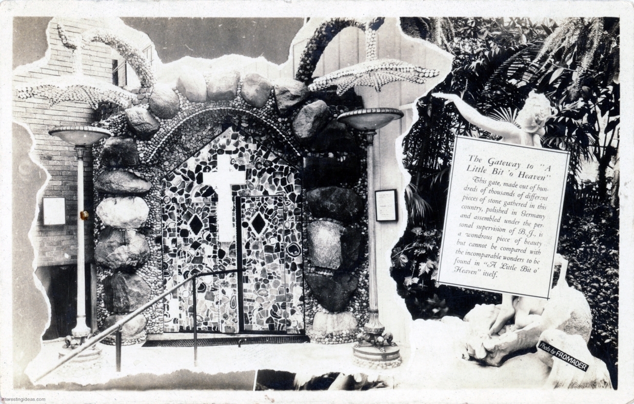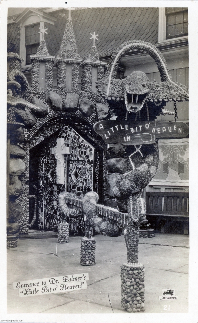 My friend Keith Sadler has amassed a substantial collection of vintage postcards promoting roadside art environments, grottos, rock gardens, attractions and oddities of all kinds. They include antique rarities, like the many Palais Idéal cards, lots of Real Postcard-style images, and a few relatively modern color cards.