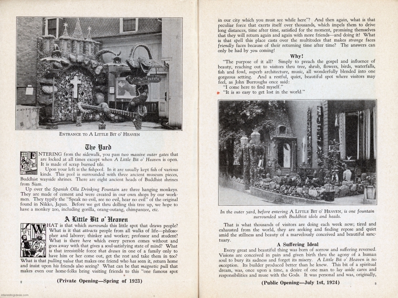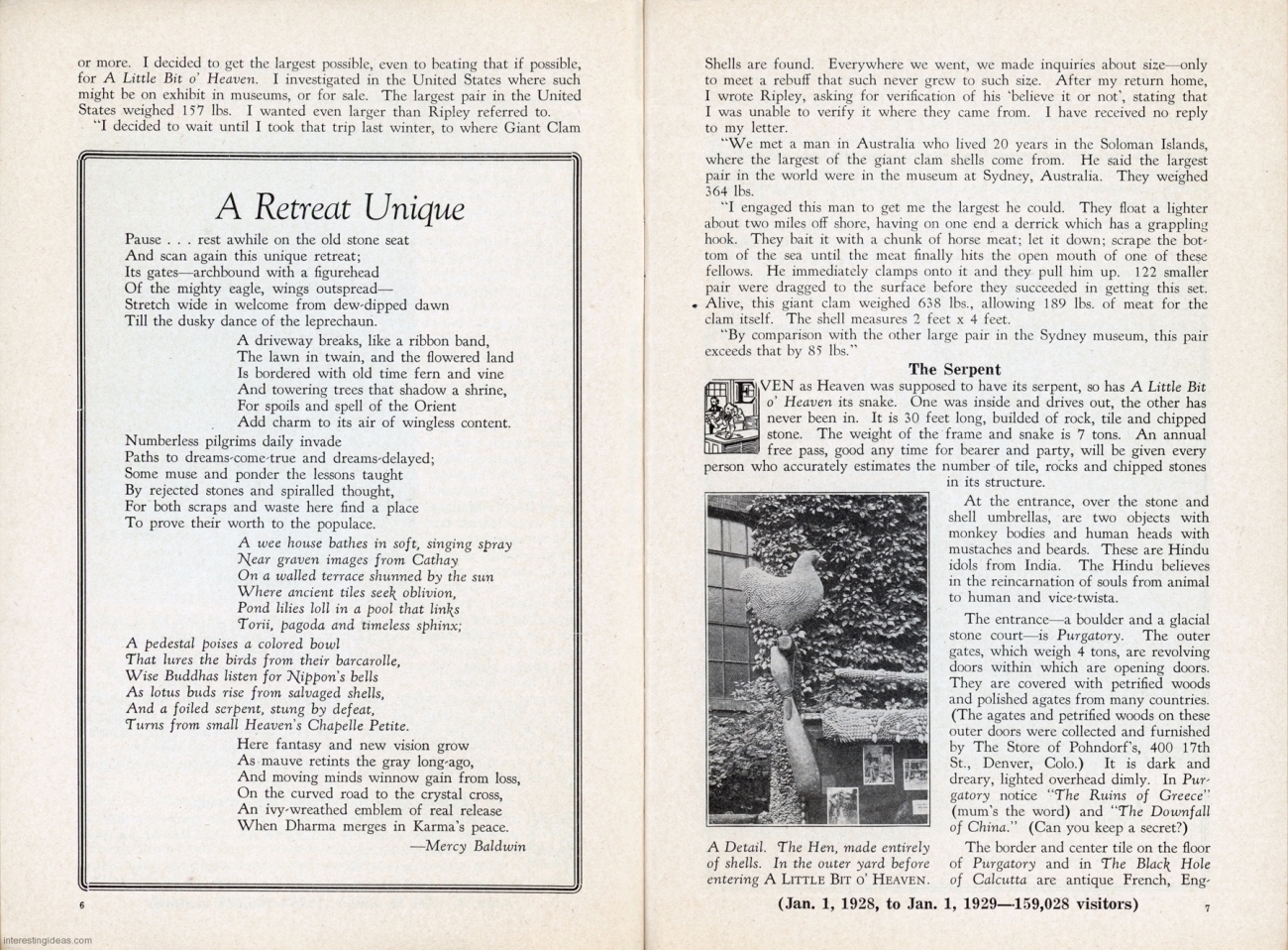 This page presents a digitized library of these postcards, as well as some related snapshots and brochures. There’s also a bonus gallery of postcards showing the Asylum for Feeble-Minded Children in Lincoln, Illinois, the one-time residence of Henry Darger. Plus my own collection of vintage images of Miami’s magnificent Bottle Cap Inn environment.
