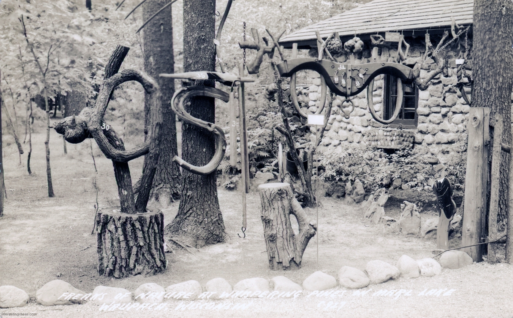My friend Keith Sadler has amassed a substantial collection of vintage postcards promoting roadside art environments, grottos, rock gardens, attractions and oddities of all kinds. They include antique rarities, like the many Palais Idéal cards, lots of Real Postcard-style images, and a few relatively modern color cards.