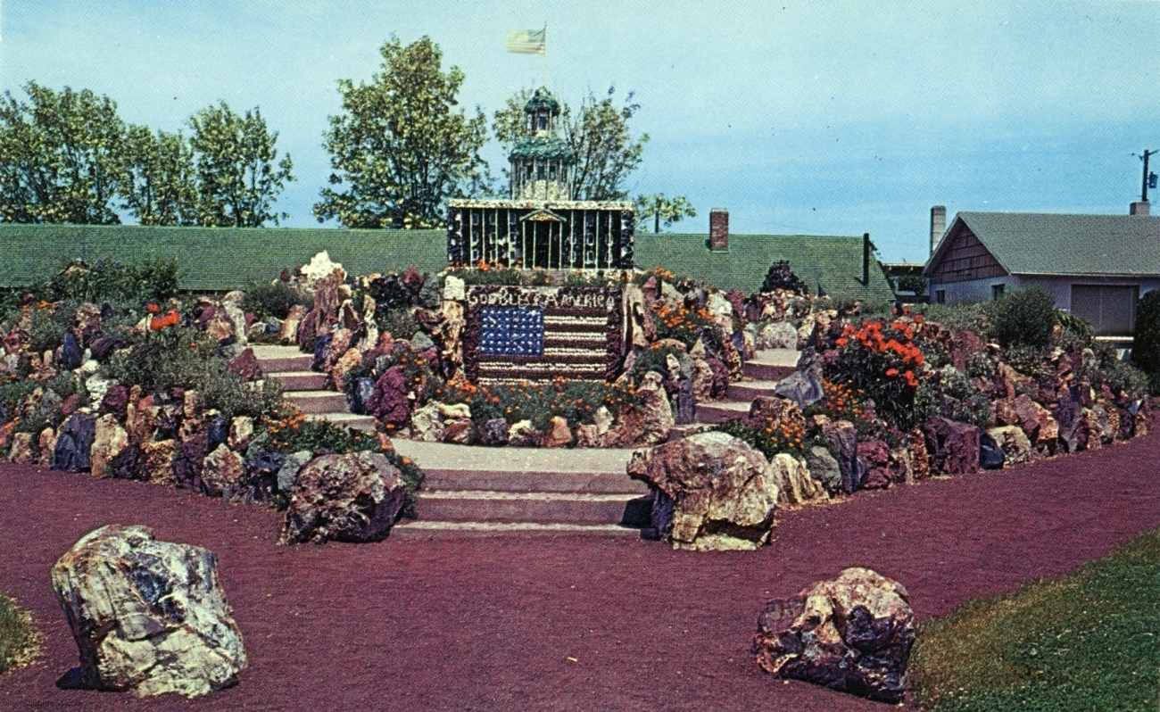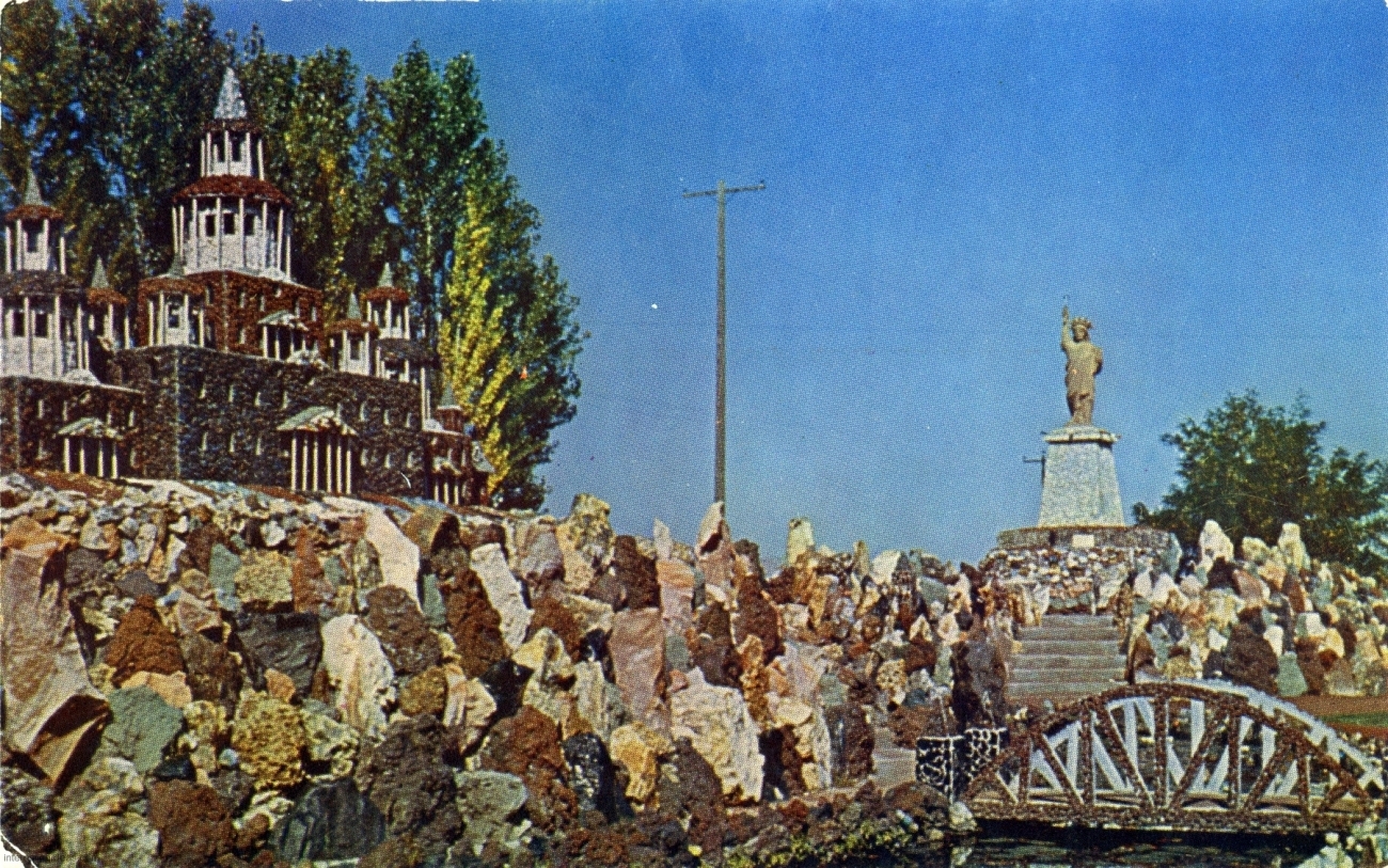 My friend Keith Sadler has amassed a substantial collection of vintage postcards promoting roadside art environments, grottos, rock gardens, attractions and oddities of all kinds. They include antique rarities, like the many Palais Idéal cards, lots of Real Postcard-style images, and a few relatively modern color cards.