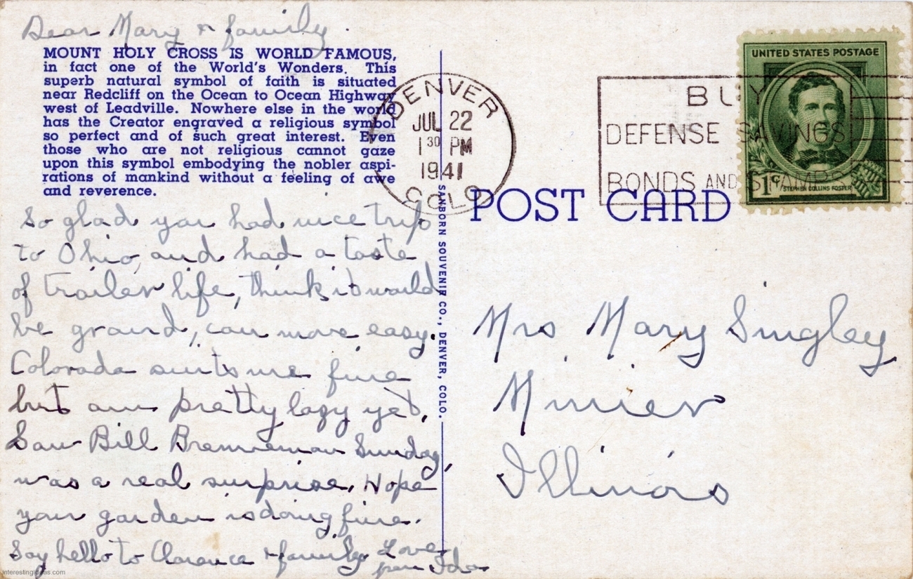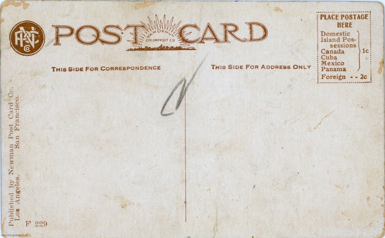 The galleries include the backs of cards when they contain even modestly relevant information. Many just reference the weather and travel plans. But some are more interesting, like the one referring to the “bum” responsible for a mud sculpture of the crucifixion, and many are useful in dating the postcard.