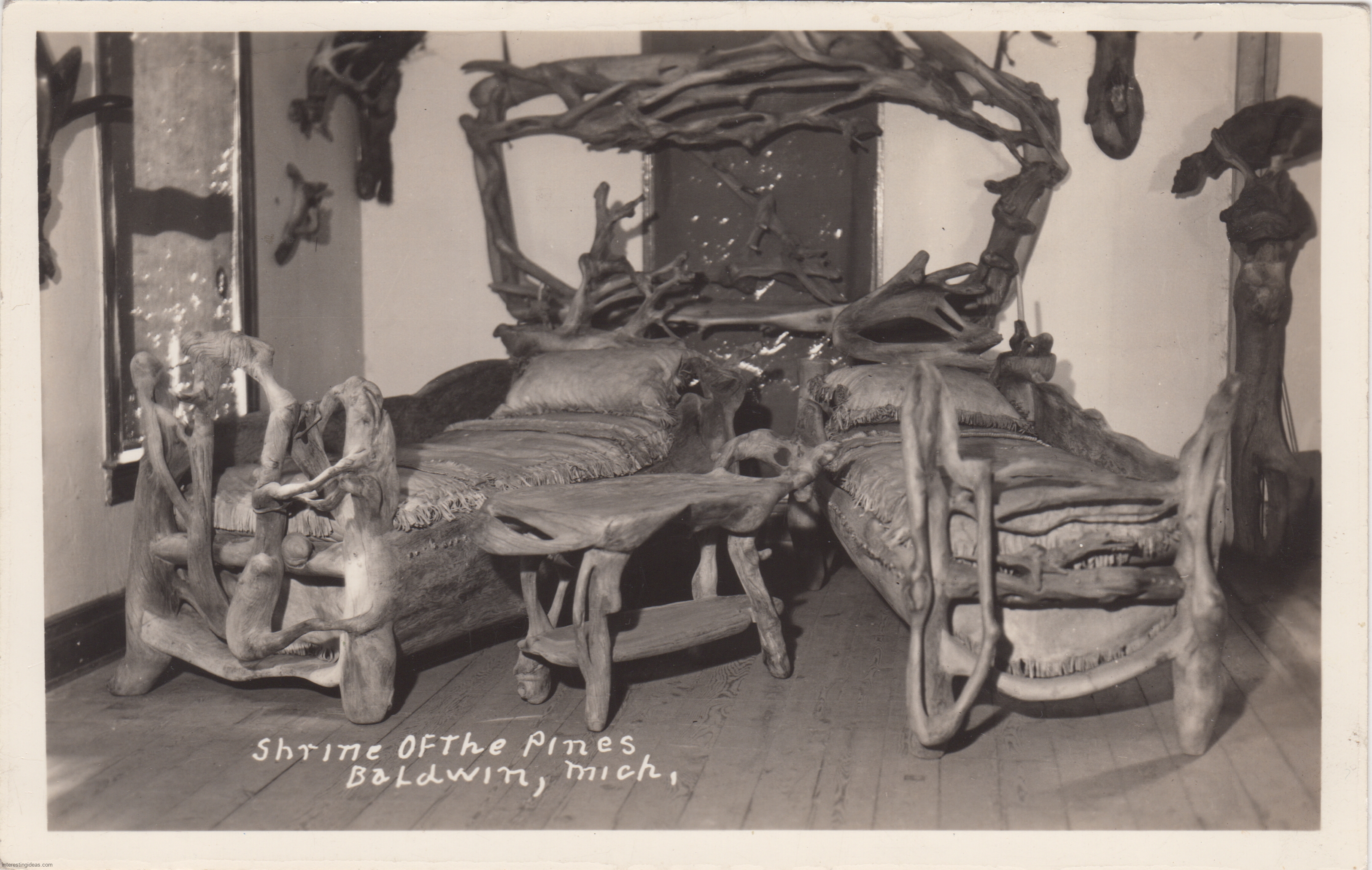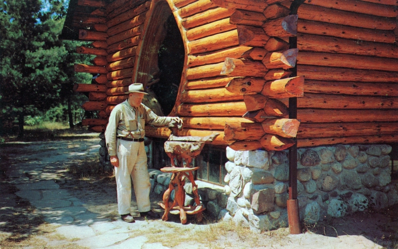 This page presents a digitized library of these postcards, as well as some related snapshots and brochures. There’s also a bonus gallery of postcards showing the Asylum for Feeble-Minded Children in Lincoln, Illinois, the one-time residence of Henry Darger. Plus my own collection of vintage images of Miami’s magnificent Bottle Cap Inn environment.